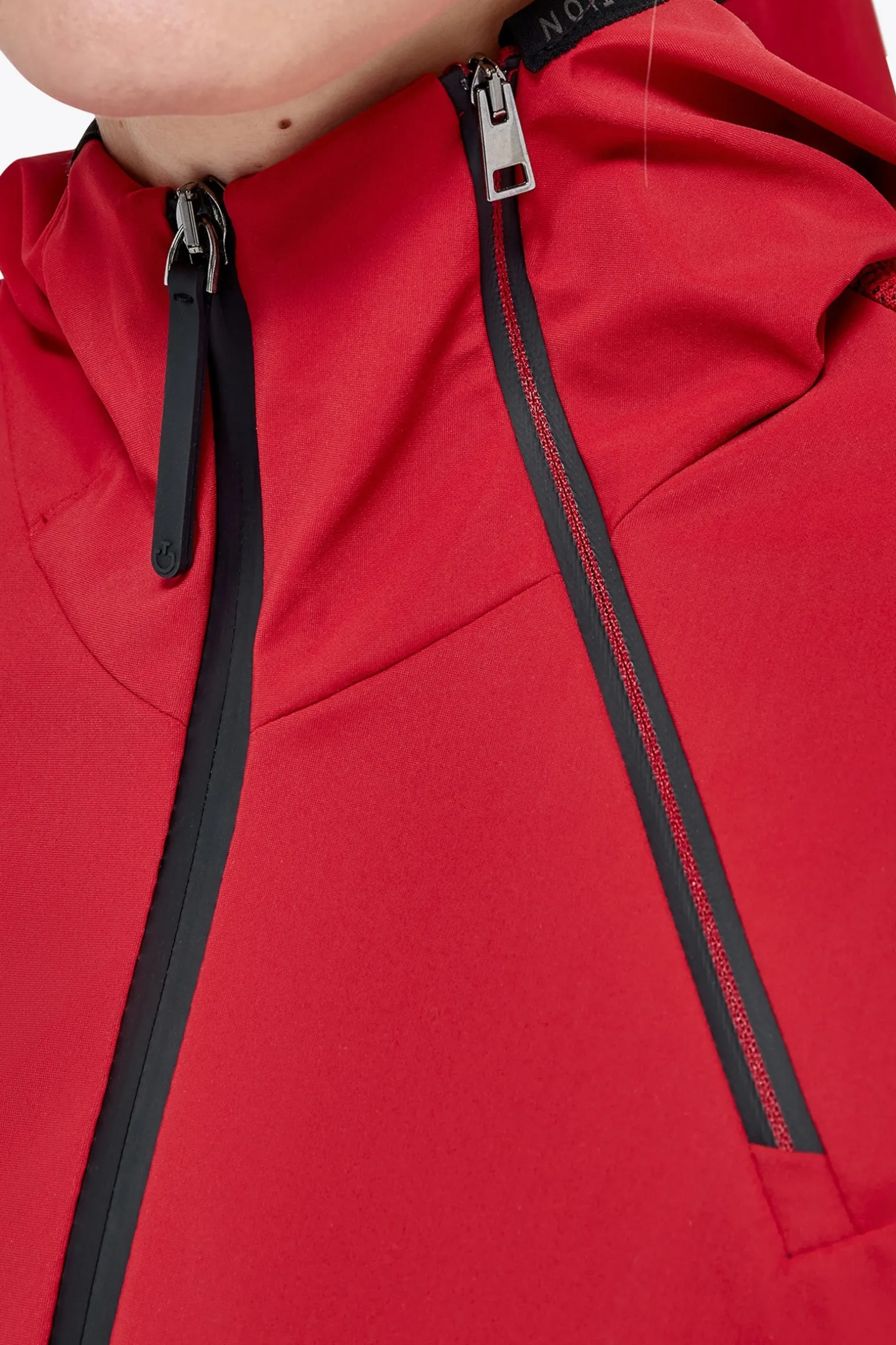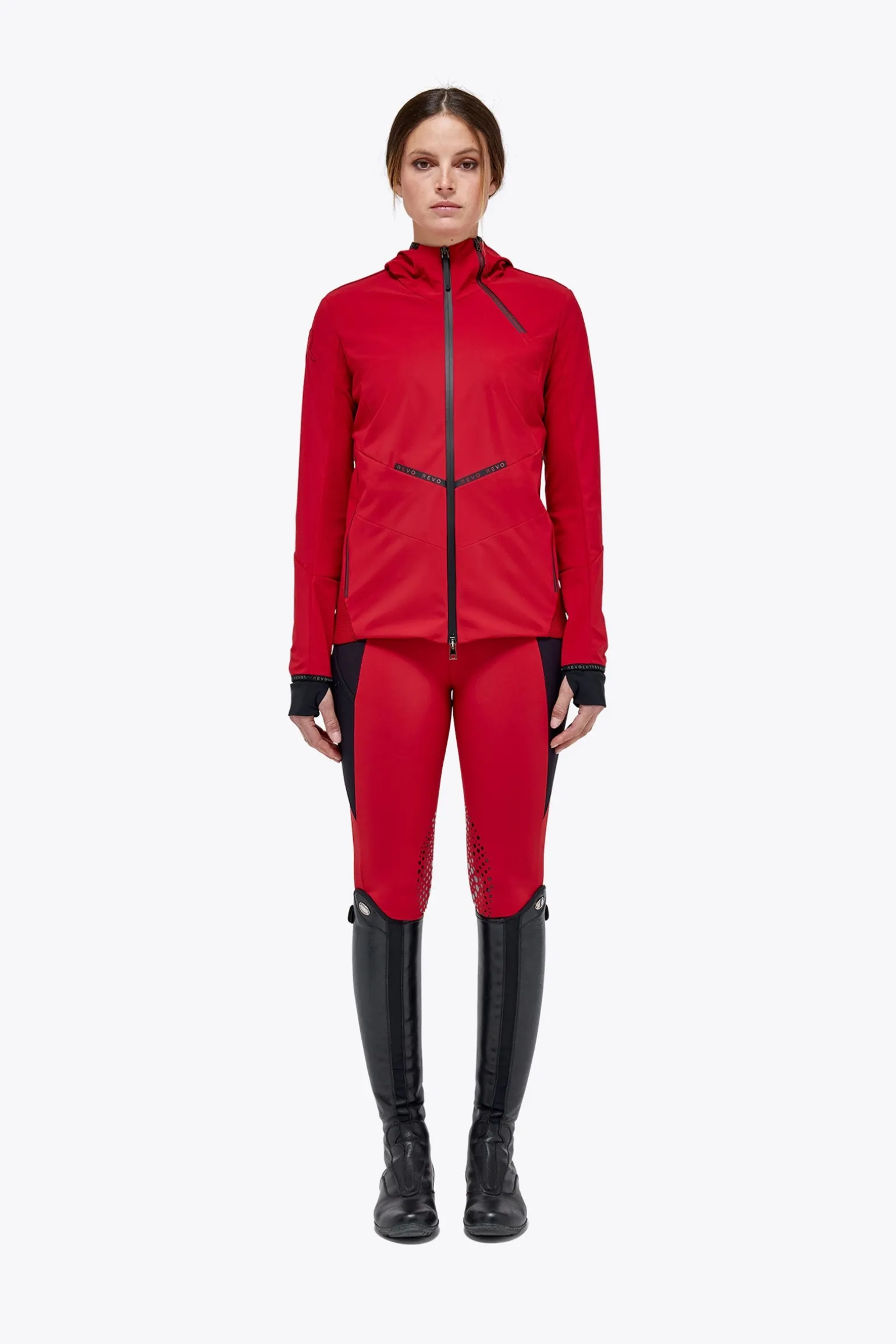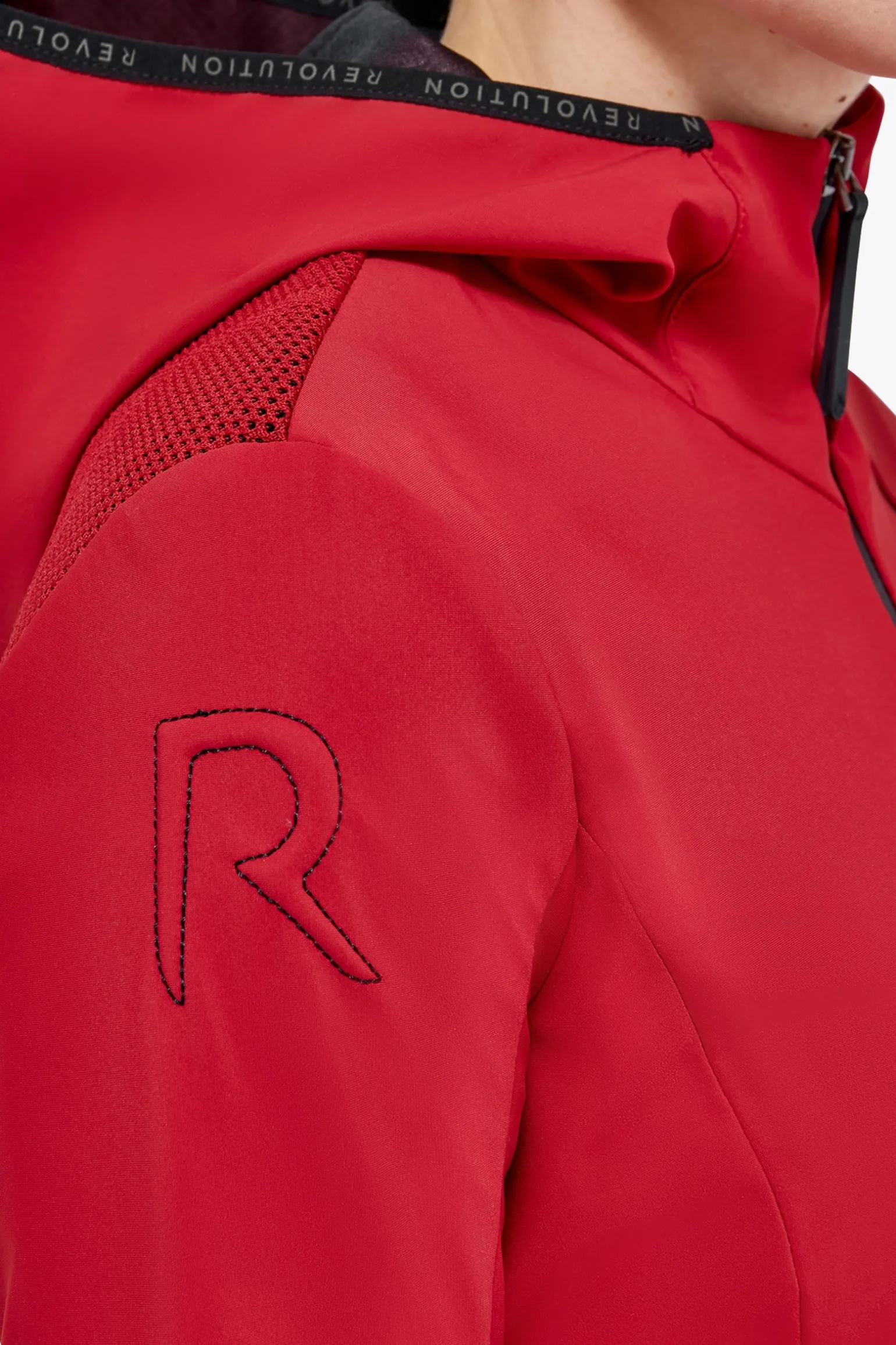 Eine technische, leistungsstarke Jacke, die für Outdoor-Aktivitäten und zum Reiten entwickelt wurde. Das Modell ist aus REVO Softshell gefertigt und verfügt über eine atmungsaktive, wasser- und winddichte Innenmembran mit einem technischen Strickrücken. Die langen Ärmel mit Daumenlöchern schützen die Hände, während der Kragen, die Taschen, die seitlichen Belüftungsöffnungen und der Verschluss mit wärmeversiegelten Reißverschlüssen für zusätzliche Isolierung ausgestattet sind. Die Logoeinfassung und der Schriftzug auf der Vorderseite sorgen für ein starkes grafisches Finish.