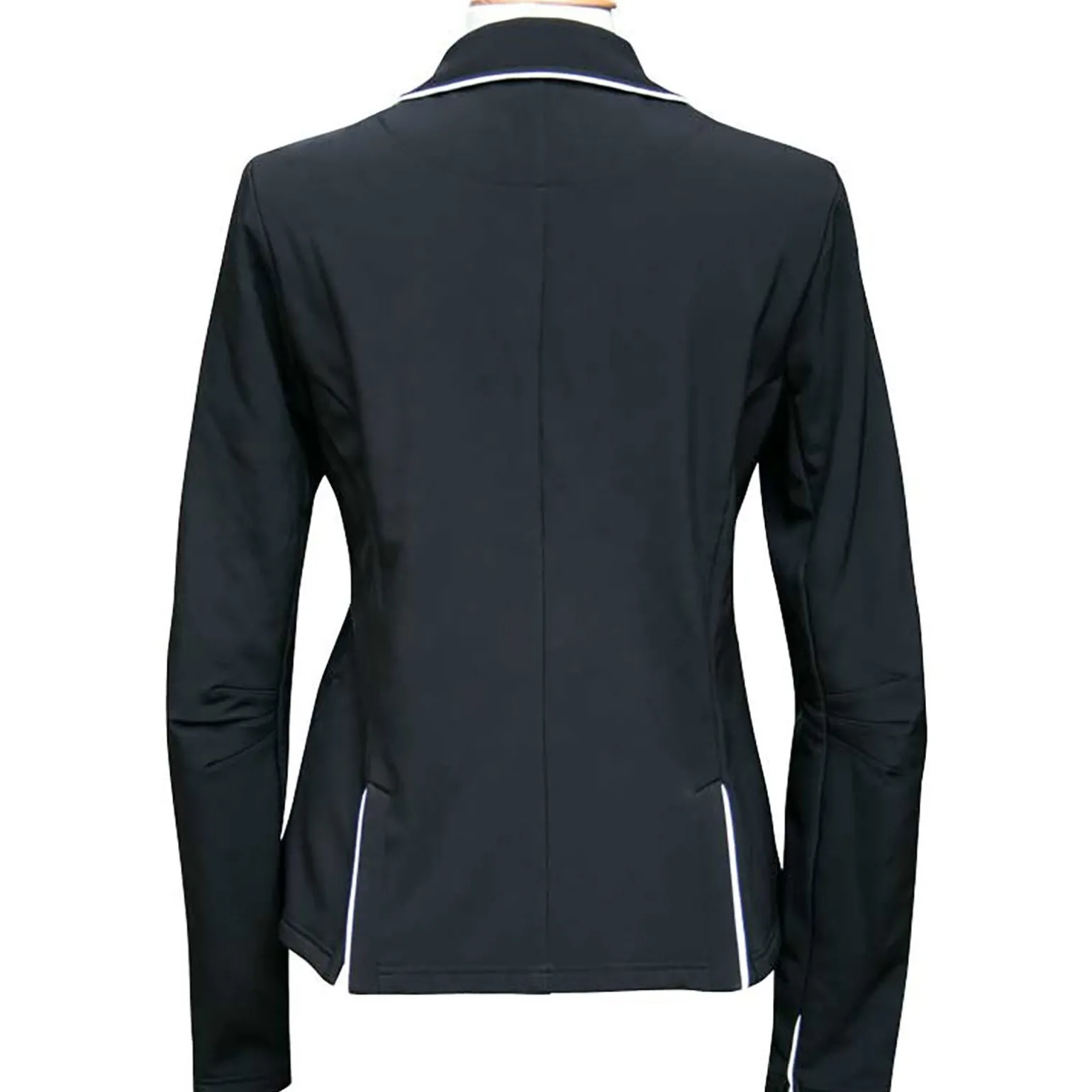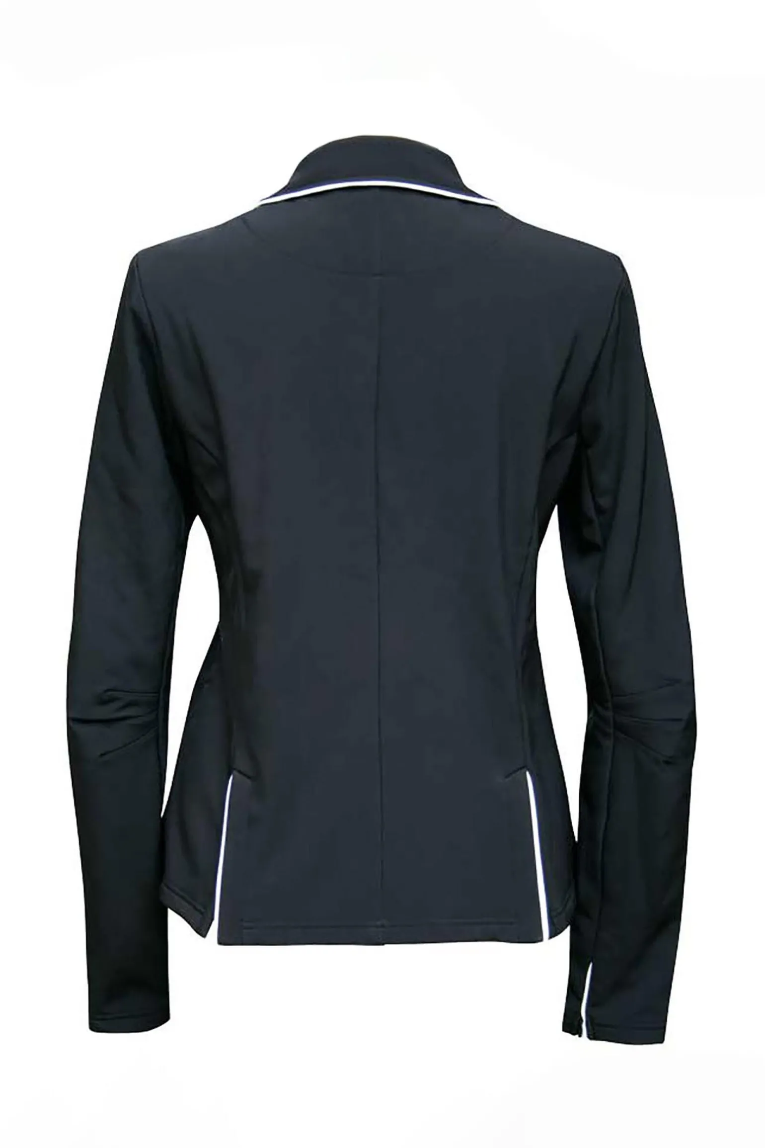 Sporty, competition jacket made from high quality, water-repellent, wind proof softshell fabric. Fitted model, two front flap pockets, contrast piping, two splits.