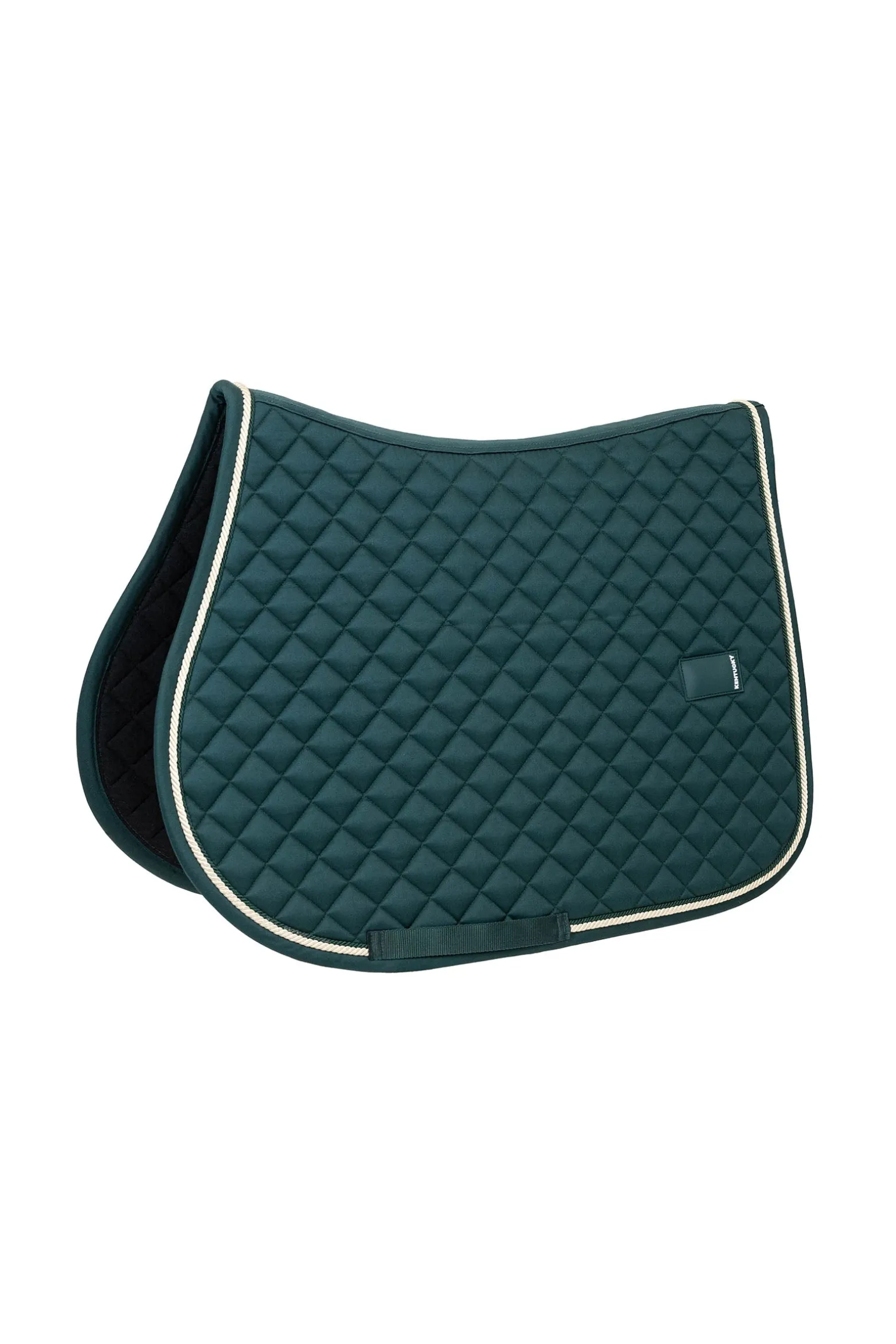 Sorge mit dieser Schabracke Diamant für einen eleganten Look und bewundernde Blicke. Diese Schabracke kombiniert elegantes Design mit höchstem Tragekomfort, den du sehen und spüren kannst. Die im klassischen Stil gehaltene Schabracke Diamant mit auffälliger Bordüre verleiht deinem Pferd einen Hauch von Exklusivität. Das edle Design sorgt für bewundernde Blicke – ob im Training oder auf dem Turnier. Die Schabracke besteht aus einem feuchtigkeitsabsorbierenden und schnelltrocknenden Baumwoll-Polyester-Gemisch. Mit ihr fühlt sich dein Pferd auch bei intensiven Trainingseinheiten wohl und kommt nicht unnötig ins Schwitzen. Innenliegend verfügt die Schabracke über eine atmungsaktive Polsterung, die einen effektiven Dämpfungseffekt zwischen Sattel und Rücken bietet. Das aufgenähte Kentucky-Logo, aus hochwertigem Gummi, verkörpert die Kentucky-Qualität bereits von Weitem. Dank der anatomischen Form passt sich die Schabracke perfekt an den Rücken deines Pferdes an und entlastet den Widerrist optimal. Kein Verrutschen, kein Drücken, kein Reiben – einfach ein sicherer Sitz, damit du selbstbewusst und kontrolliert reiten kannst, ohne dass dein Pferd beeinträchtigt wird.
