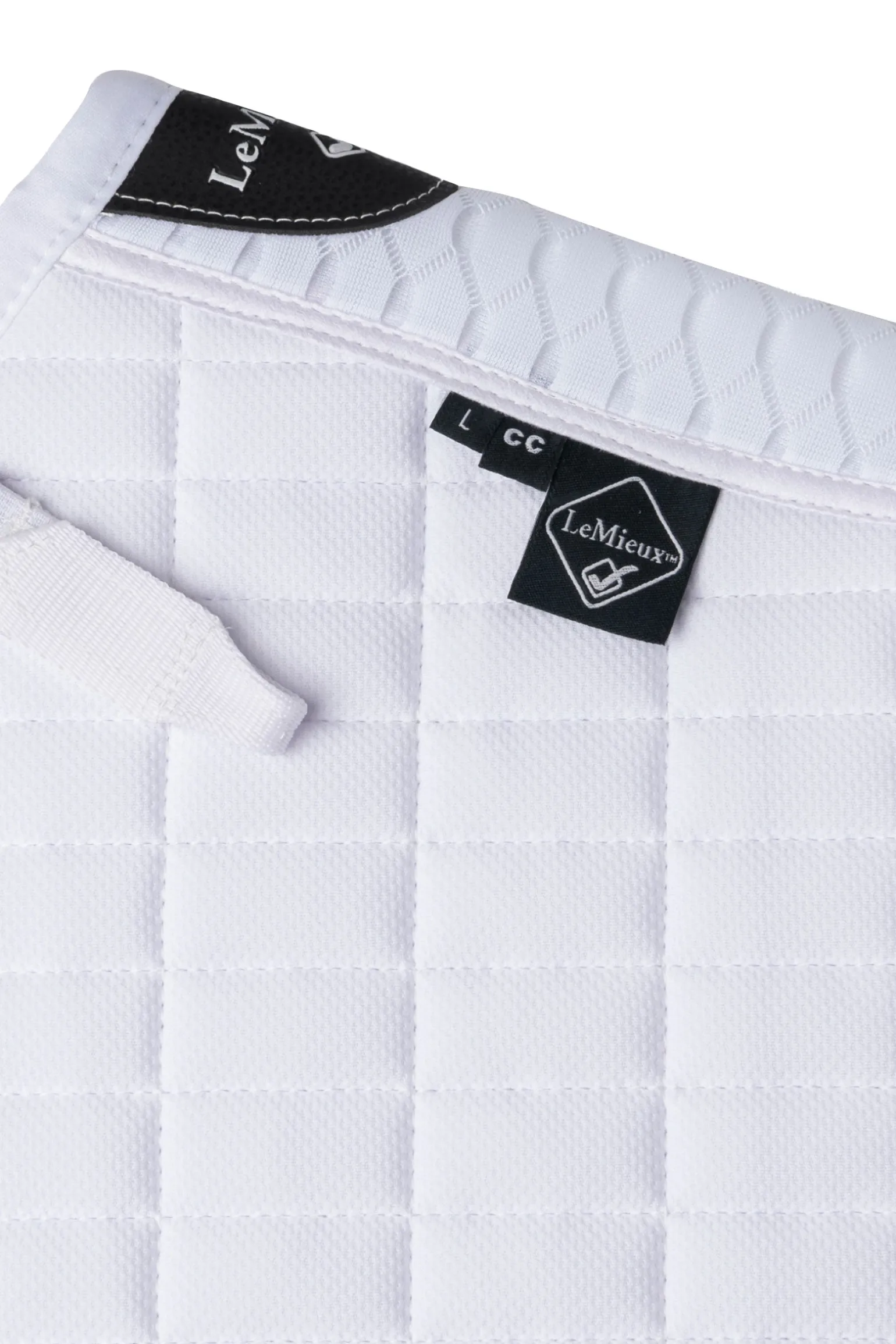 Die LeMieux Self-Cooling Saddle Pads werden mit dem innovativen ‚Feel Cool‘ Ice Material hergestellt, in dessen Gewebe ein kühlender Kristall eingearbeitet ist. Dies wird durch Feuchtigkeit aktiviert – je größer die Feuchtigkeit, desto größer ist die Kühlwirkung! Die Kristalle haben unglaubliche Wärmeaufnahme- und -übertragungseigenschaften, die nach und nach den Schweiß des Pferdes absorbieren und ableiten. Unter extremen Bedingungen wird nach der Ableitung ein umgekehrter, schneller Kühleffekt erzeugt. Der Einsatz aus Karbon-Netzgewebe reduziert den Druck auf Widerrist und Rücken und ermöglicht es, dass die Wärme aufsteigt und durch die Oberseite des Pads entweicht. Das Innenfutter besteht aus demselben selbstkühlenden Stoff wie die Oberseite, der weich und reibungsfrei ist und dafür sorgt, dass die gesamte Unterlage auf demselben Niveau atmet und Feuchtigkeit ableitet. Ein ideales Pad für den Einsatz in heißen und feuchten Bedingungen oder für Pferde, die bei der Arbeit generell stark schwitzen.