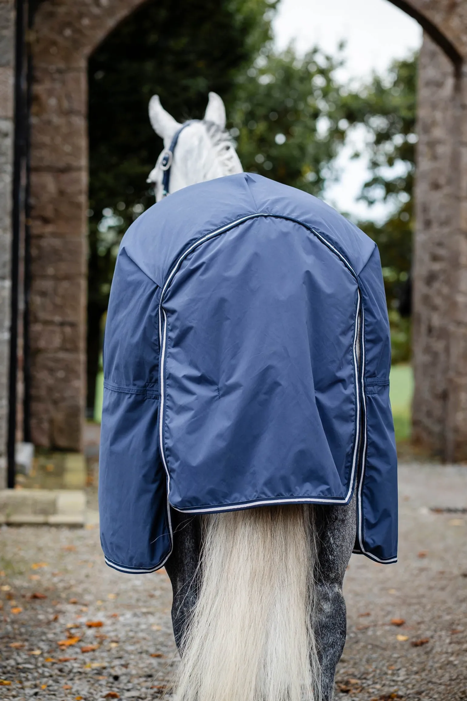 Features a fold-away neck, full belly flap, tail flap, and upper leg wraps for full-body coverage to keep your horse spotless. Straight front closure with a secure webbing cover. Dual extended leg arches with removable stretch panels to protect the tops of the legs from stains.