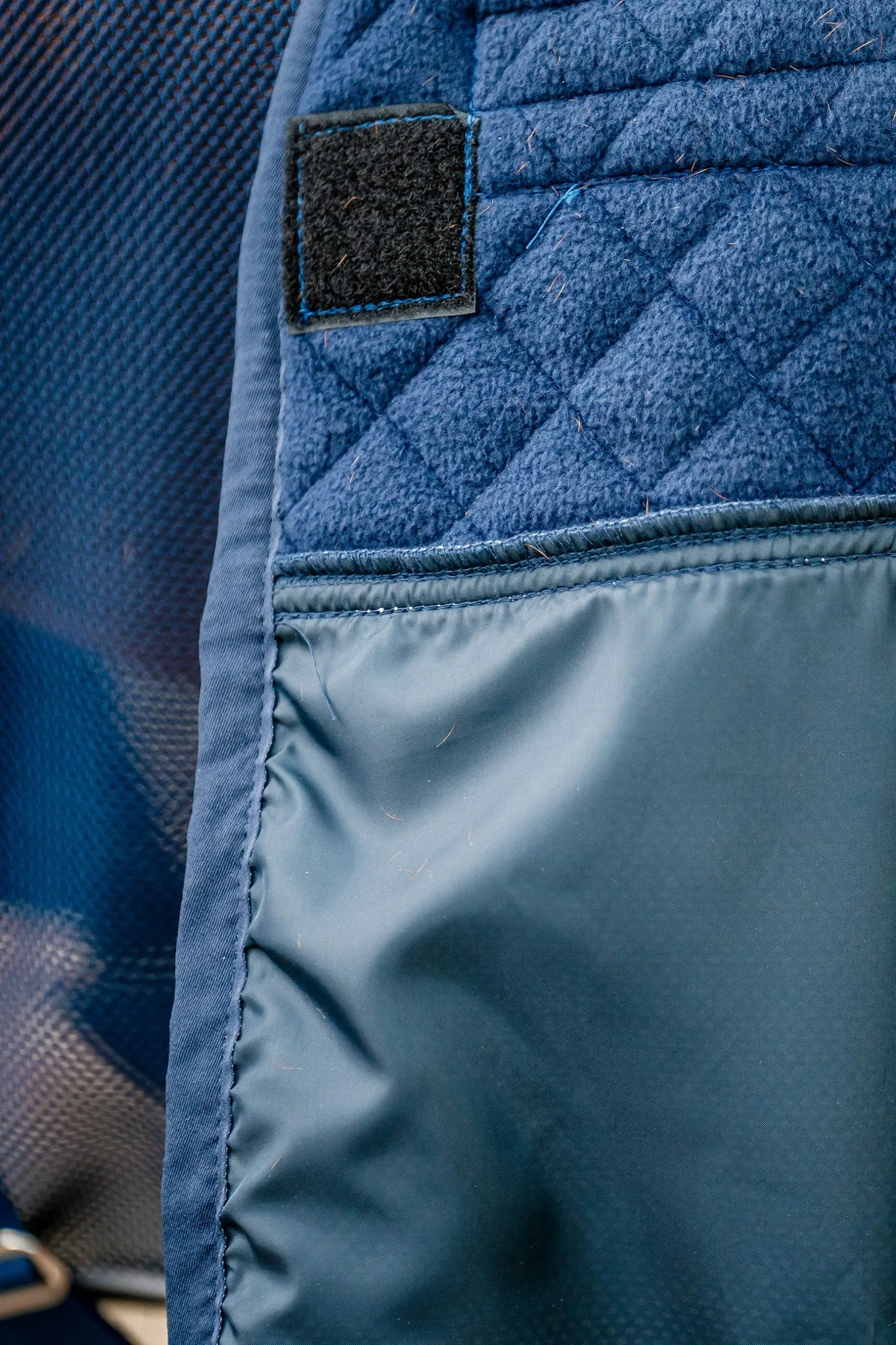 Diese hybride Decke kombiniert Funktionalität und Komfort mit einer konturierten Oberseite aus gestepptem Mikrofaservlies (Polar Fleece), die dein Pferd warm und geschützt hält. Die Seitenteile aus Polyester-Netz sorgen für maximale Luftzirkulation und Atmungsaktivität, während die 50 g gesteppte Oberseite wichtige Muskelgruppen schützt. Für einen sicheren Sitz ist sie mit einem geraden Brustverschluss, Kreuzgurten und doppelten Beinausschnitten ausgestattet. Die extra breite Schweifklappe bietet maximale Abdeckung und schützt die Schweifhaare vor Schäden. Reflektierende Paspeln und Streifen auf der Schweifklappe erhöhen die Sichtbarkeit, was diese Decke zu einer praktischen und stilvollen Wahl macht.