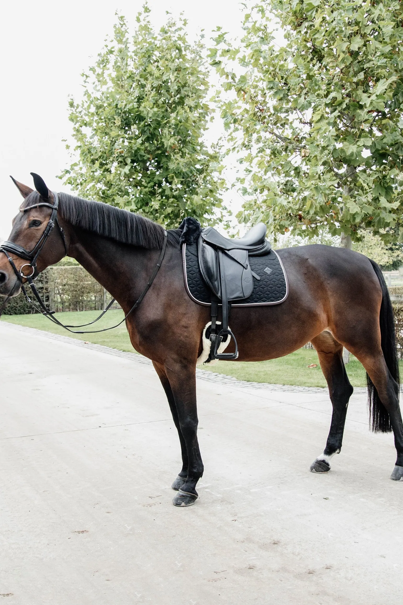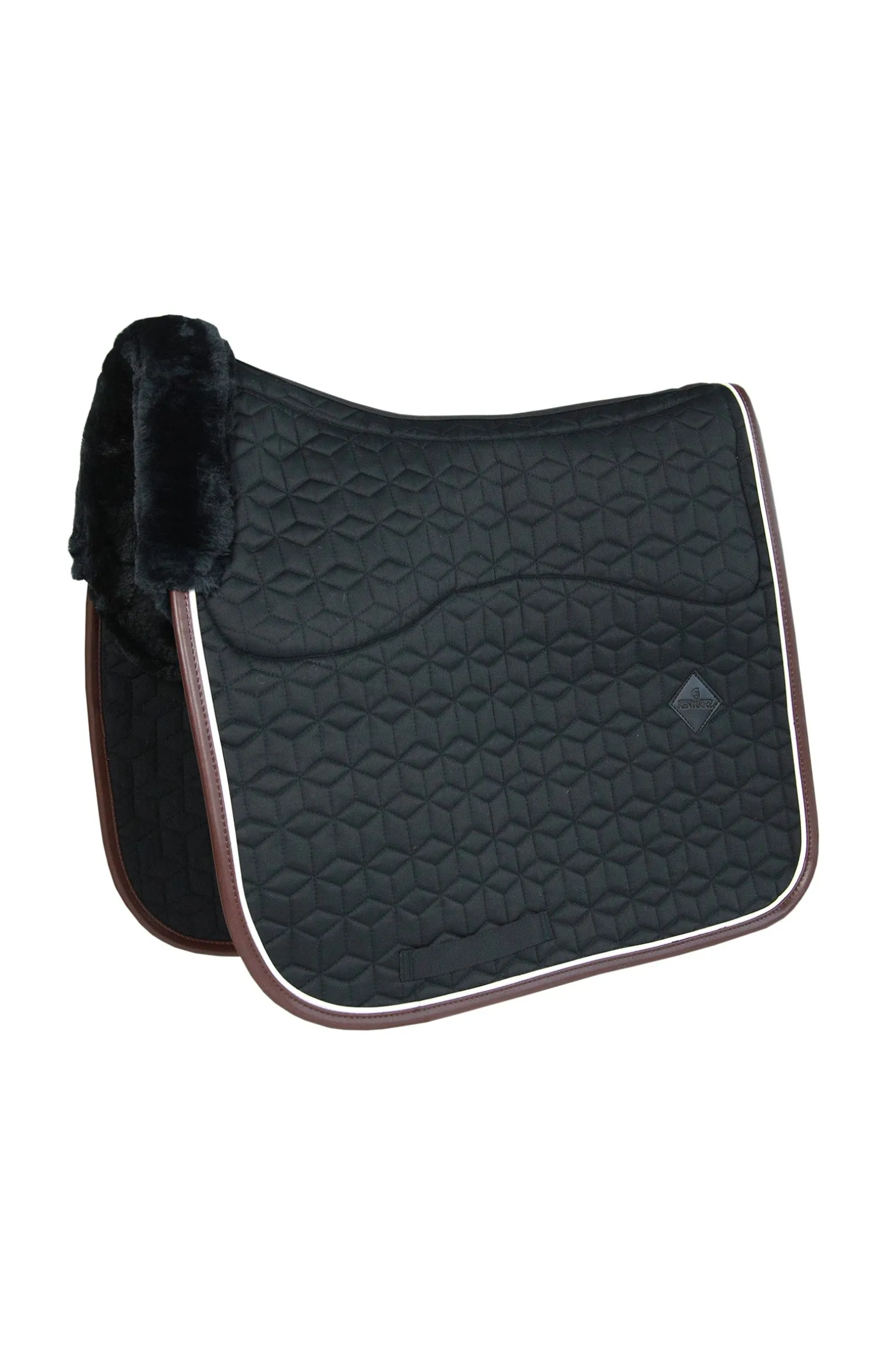 Die Schabracke hat keine nervigen Riemen an der Seite. Zum Befestigen der Schraken werden nur die Riemen für den Sattelgurt benötigt. Durch den künstlichen Lederrand und die weiße Biese wirkt die Schabracke besonders stillvoll und schick. Der einzigartige Look besticht durch dem gesteppten Sternmuster. Das dezente Logo aus Kunstleder befindet sich an einer zentralen, etwas höheren Stelle, sodass bei Bedarf immer Platz zum Besticken mit Ihrem eigenen Logo bleibt.