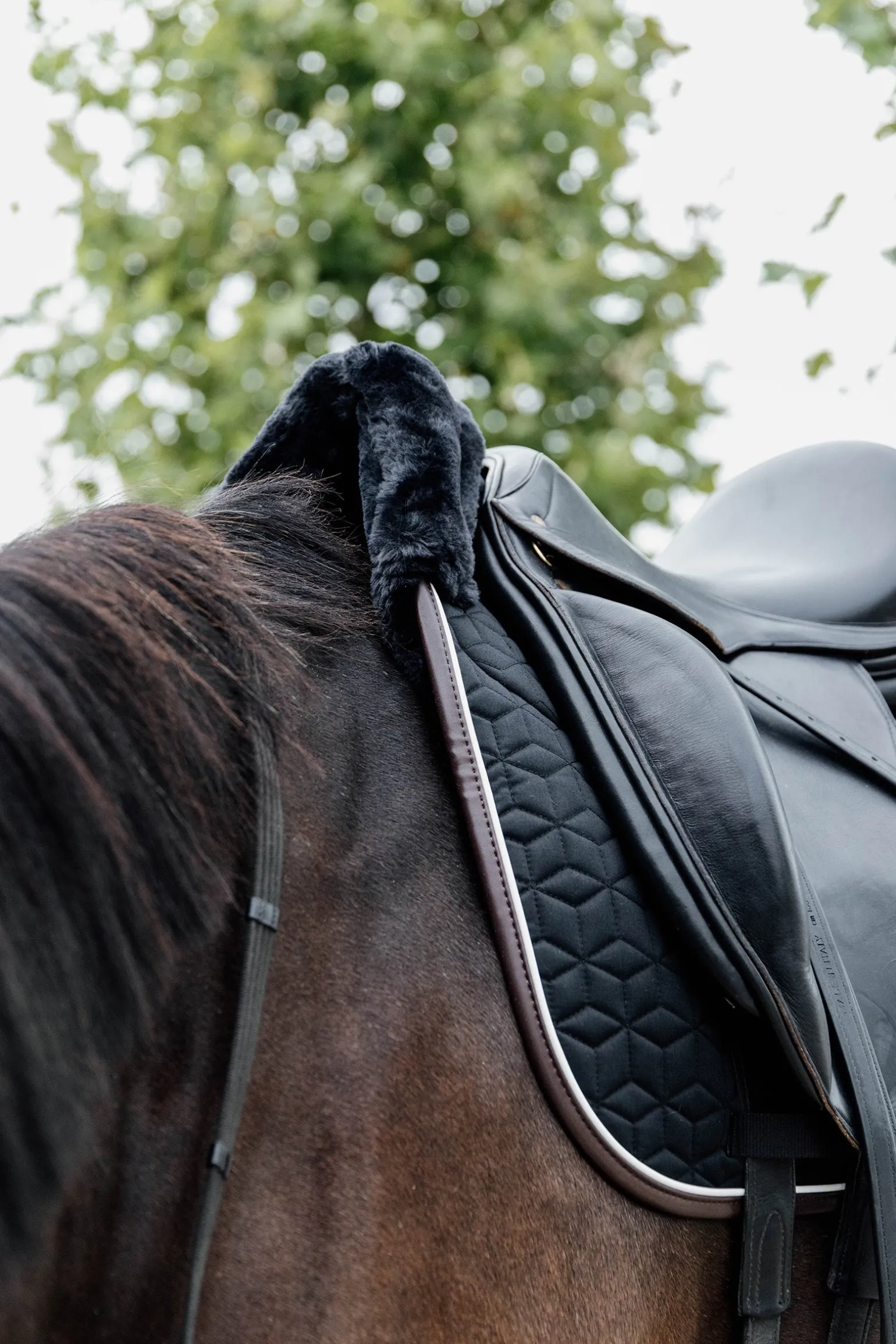 Die Schabracke Skin Friendly bietet bestmöglichsten Schutz zwischen dem Pferderücken und dem Sattel. Wegen dem künstlichen Schaffell an der Innenseite der Schabracke und am Widerrist bietet die Schabracke den besten Komfort für das Pferd. Die Schabracke absorbiert Stöße und schützt den Pferderücken vor Reibungen. Deswegen ist dieses Pad hervorragend geeignet für Pferde, die eine empfindliche Haut oder empfliches Fell haben. Trotz der Polsterung sitzt der Reiter sogar nah am Pferderücken, weil weitere Pads in der Regel nicht notwendig sind. Außerdem hat die Schabracke eine Fellaussparung im Bereich der Wirbelsäule und lässt dem Pferd genügend Platz zum Sattel.
