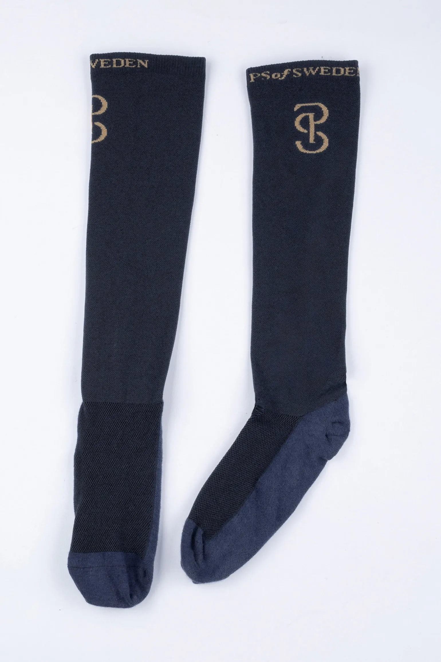 Knee high socks in cotton blend features knitted mesh on top of foot for good ventilation as well as a more neat feeling on toe and heel.