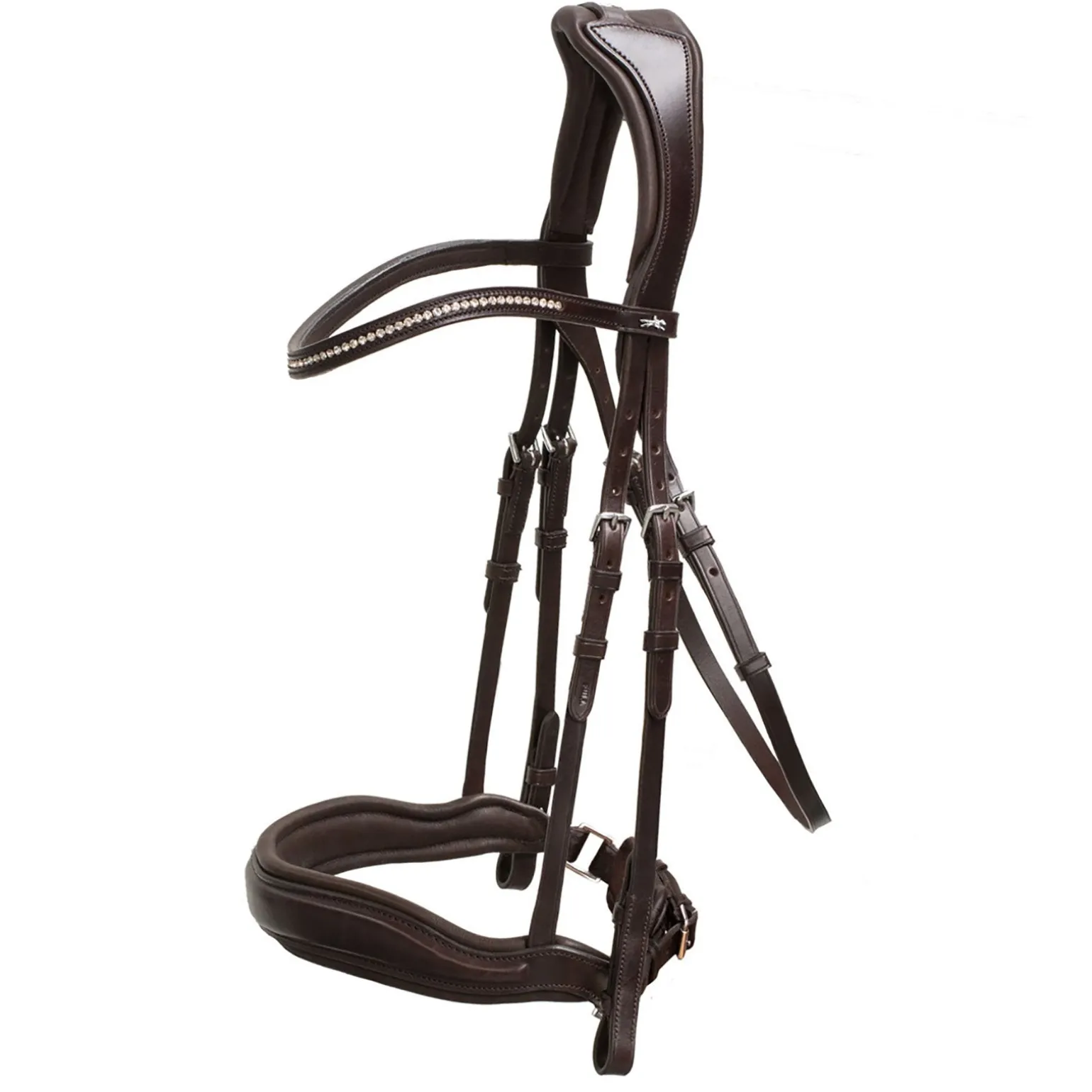 SLIMFORD vereint Funktion und sportliches Design: Die Trense mit einem anatomisch geformten Spezial-Reithalfter verfügt über ein einzigartiges Genickstück, welches speziell an die Anatomie des Pferdes angepasst wurde. Es ermöglicht dem Pferd ein uneingeschränktes Ohrenspiel während des Tragens. Durch die Druckminderung in den empfindlichen Zonen wie Jochbein und Genick wird der Komfort für das Pferd deutlich maximiert. Das vorgeformte Reithalfter besitzt keinen Sperrriemen. SLIMFORD wird ausgeliefert mit zwei verschiedenen Stirnriemen: Ein schlichtes Lederstirnband, sowie ein einreihiges Kristallstirnband können je nach Wunsch an die Trense angebracht werden.