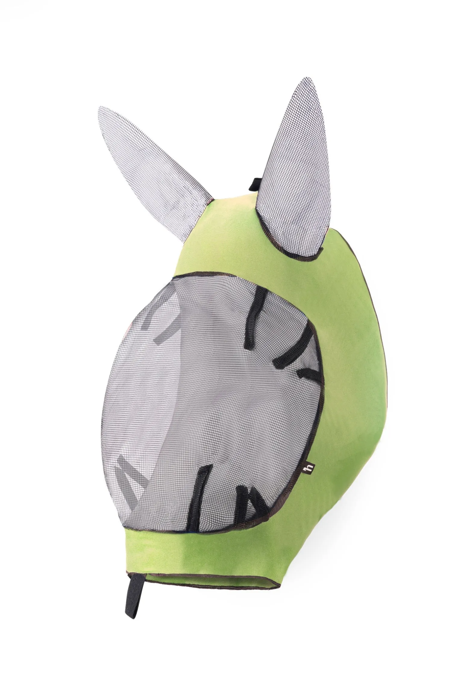 Nutze diese coole, schützende Fliegenhaube, wenn du dein Pferd auf die Koppel stellst. Die Ohrenhaube ist aus weichem, superelastischem Lycra gefertigt und bietet daher höchsten Tragekomfort. Die Ohren und der Augenmaskenbereich sind mit Mesh-Gewebe ummantelt, das schützt, ohne das Sehen und Hören zu beeinträchtigen. Die Maske ist so konzipiert, dass sie eng anliegt und Insekten fernhält.