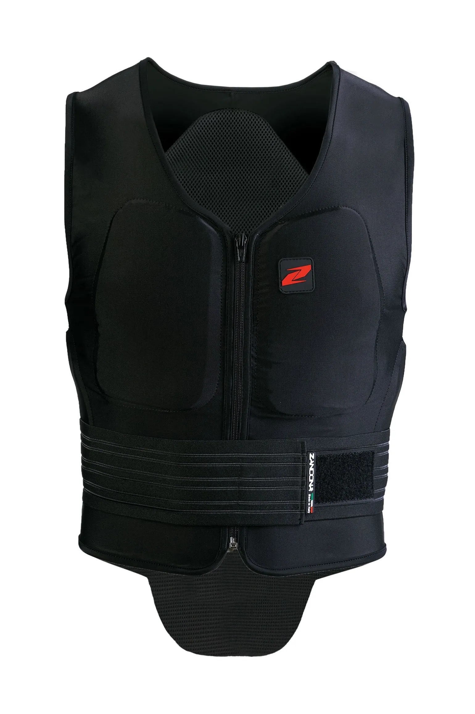 “SOFT VEST PRO” ist eine Weste, die mit einem Rückenprotektor von Niveau 2 (gemäß der Norm EN1621) ausgestattet ist, der die Wirbelsäule vor Stößen und Prellungen schützt.