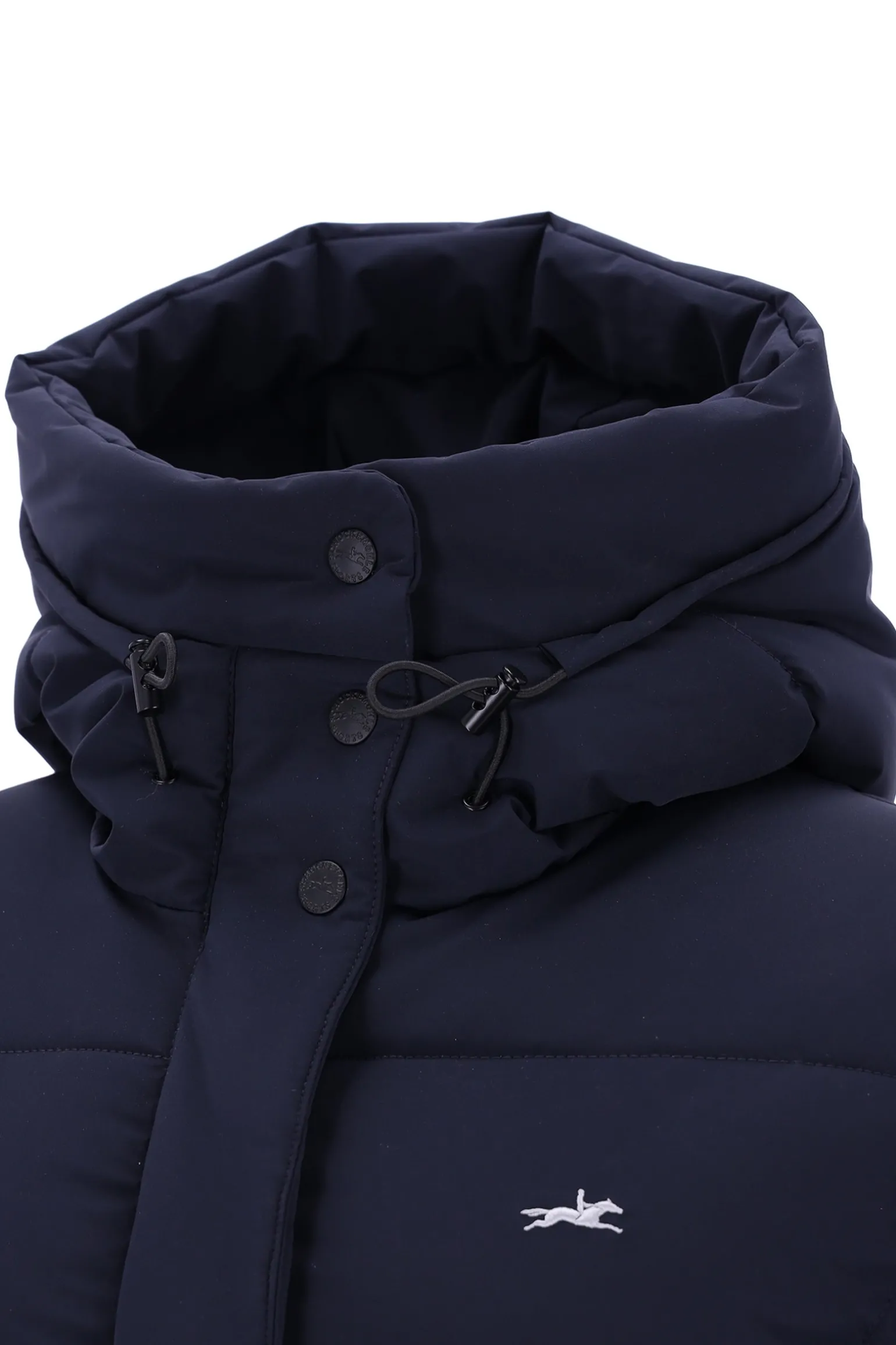Die modische lange Damen Steppjacke SPKai Style setzt Maßstäbe in Sachen Stil und Funktionalität. Sie ist mit einer hochwertigen Dupont Füllung ausgestattet, die für optimale Wärmeisolierung sorgt und gleichzeitig leicht und komfortabel ist. Die Jacke verfügt über doppelte Taschen – eine Reißverschlusstasche und eine Leistentasche mit Druckknopf – die ausreichend Stauraum bieten. Ein 2-Wege-Reißverschluss unter der vorderen Knopfleiste ermöglicht eine flexible Anpassung und Bewegungsfreiheit. Zusätzlich sind zwei versteckte Reißverschlüsse an den Seiten für weitere praktische Nutzungsmöglichkeiten integriert. Die Polyester-Elasthan-Bündchen am Ärmel bieten eine bequeme Passform und zusätzlichen Schutz vor Kälte. Ein Logo Badge am linken Ärmel und eine Pferde Stickerei im Brustbereich unterstreichen die Exklusivität der Jacke. Die Kapuze ist mit einer breiten verstellbaren Blende und einem feststellbaren Drucker ausgestattet, um Sie bei allen Wetterbedingungen optimal zu schützen.