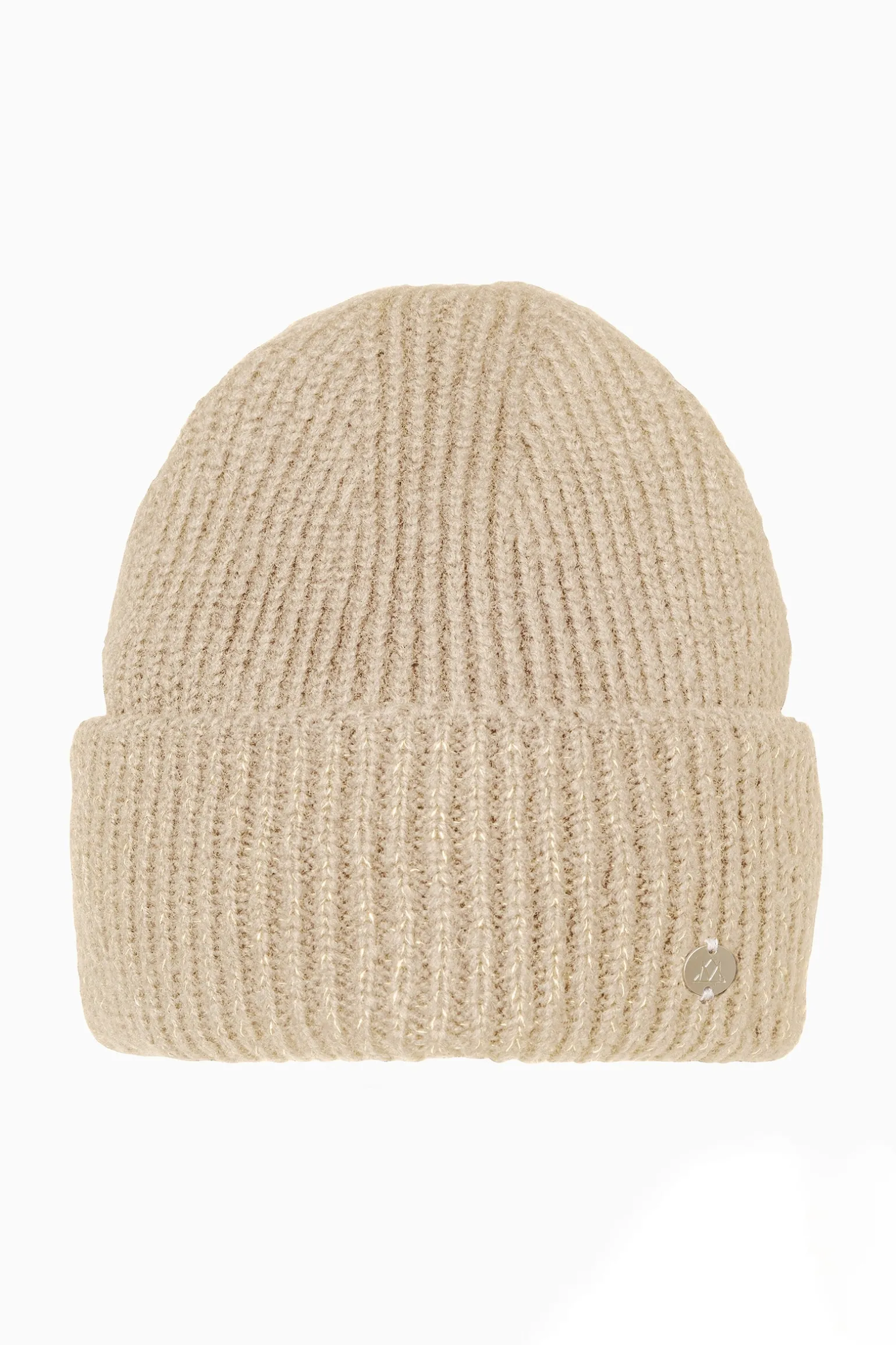 Gemütliche, doppelt gefaltete Strickmütze mit glitzerndem Lurexfaden und schickem MH-Logoabzeichen.