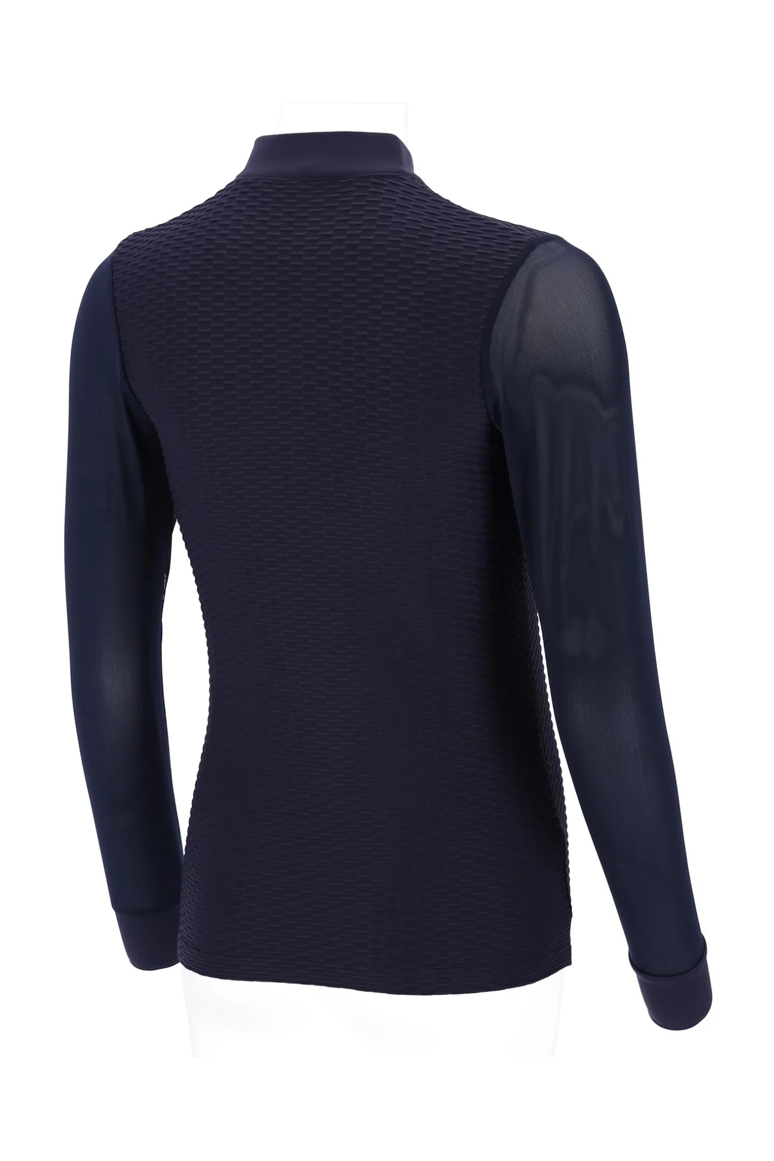 Das SPGianna Trainings- und Turniershirt vereint Funktionalität und stilvolles Design! Dieses funktionale Shirt bietet eine strukturierte Passform und hat 1/1 Ärmel mit Manschette sowie Ärmel aus transparentem Mesh, die für Belüftung und Bewegungsfreiheit sorgen. Ein praktischer Reißverschluss in der vorderen Mitte erleichtert das An- und Ausziehen und sorgt gleichzeitig für einen modernen Look. Das Highlight ist das Logo-Strass-Pferdchen auf dem Stehkragen, das dem Shirt eine elegante Note verleiht.