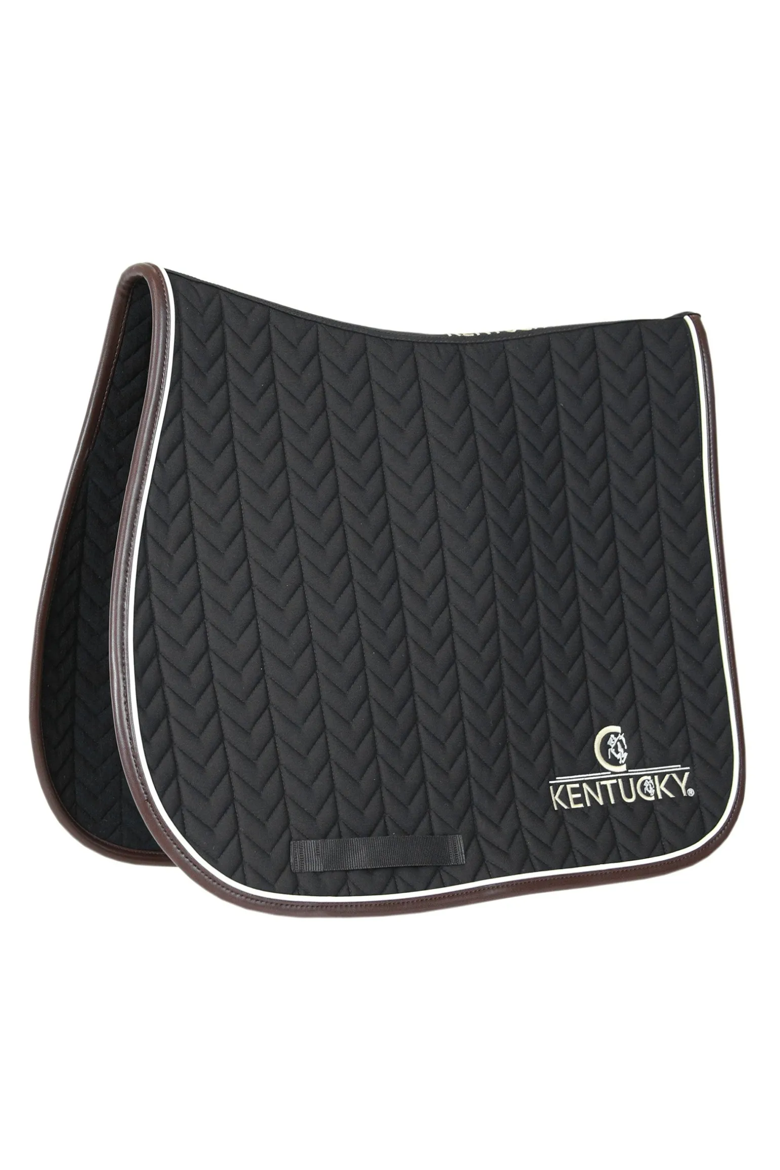 Unsere Schabracke Leather Fishbone ist für das Springen designed und bietet hervorragende Polsterung zwischen dem Rücken des Pferdes und dem Sattel und schützt gleichzeitig vor Verspannungen. Die Schabracke hat außerdem eine einzigartige Steppung aus Fischgräten. Die Schabracke hat keine lästigen Schlaufen zur Befestigung am Sattel, sondern nur einen Nylonriemen für den Gurt. Die Schabracke Leder Fishbone hat eine sehr edle Lederumfassung und das modische Kentucky-Logo.