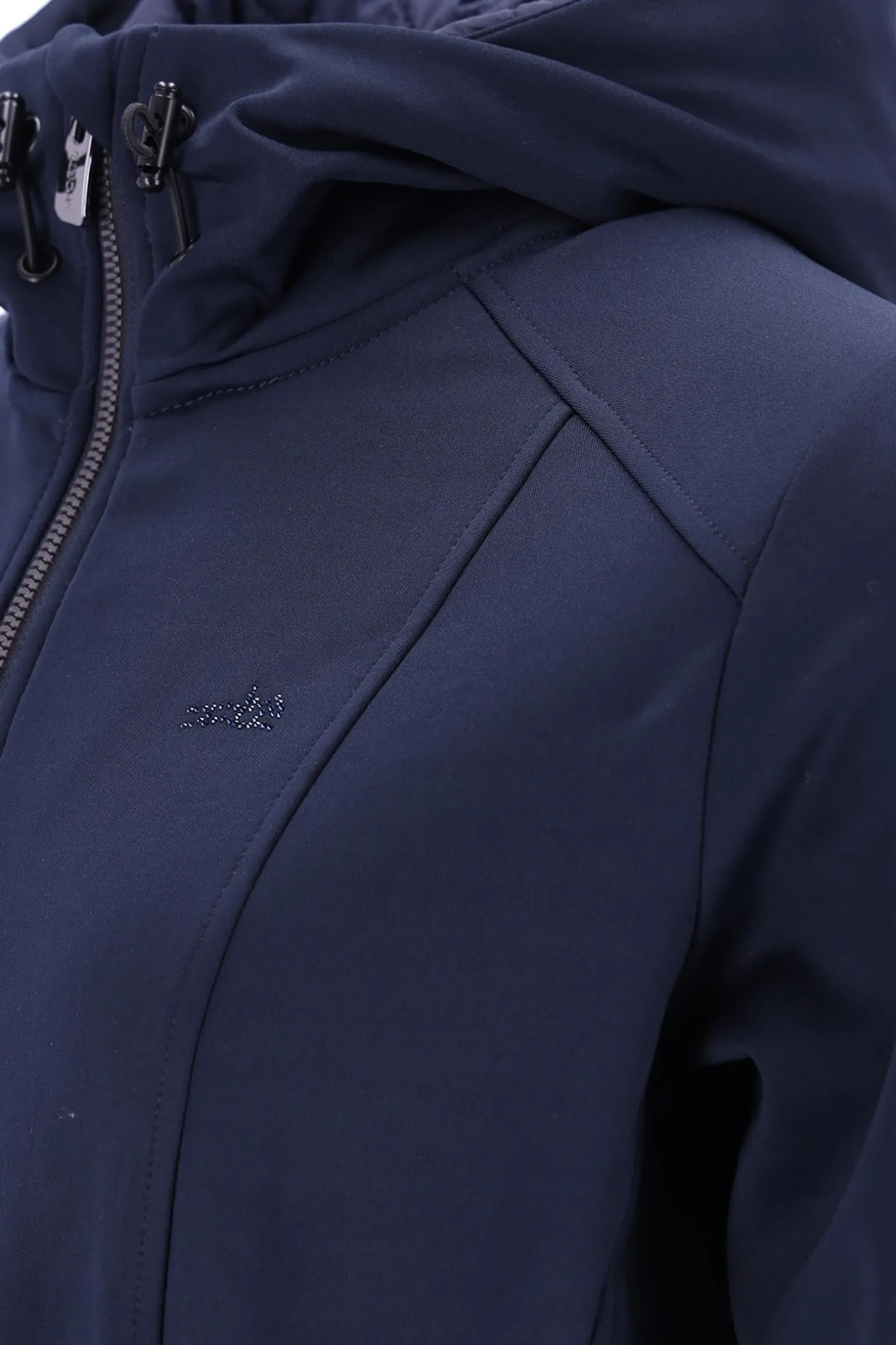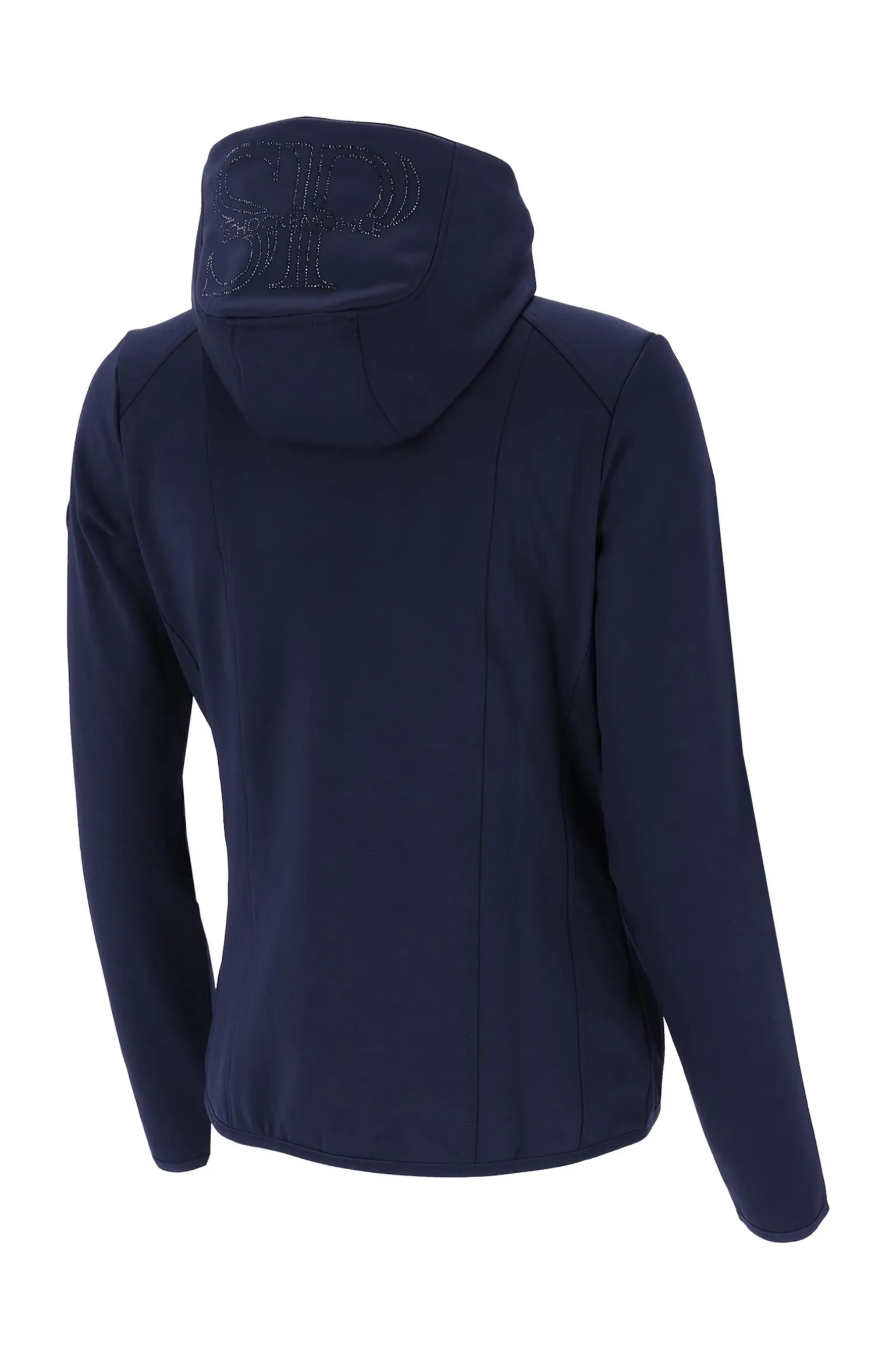 Die SPSuzan Damenjacke kombiniert Funktionalität mit einem Hauch von Glamour! Dank der schmeichelnden Teilungsnähte zaubert sie eine feminine Silhouette, während die zwei Reißverschlusstaschen praktischen Stauraum bieten. Ein besonderes Highlight ist das Strass-Logo neben der linken Tasche sowie auf der Kapuze, die der Jacke einen eleganten Glanz verleihen. Der elastische Abschluss an Ärmeln und Saum sorgt für einen bequemen Sitz, während das Strass-Pferde-Logo auf der Brust sportliche Eleganz ausstrahlt. Abgerundet wird das Design durch das Rubber Badge am linken Ärmel.