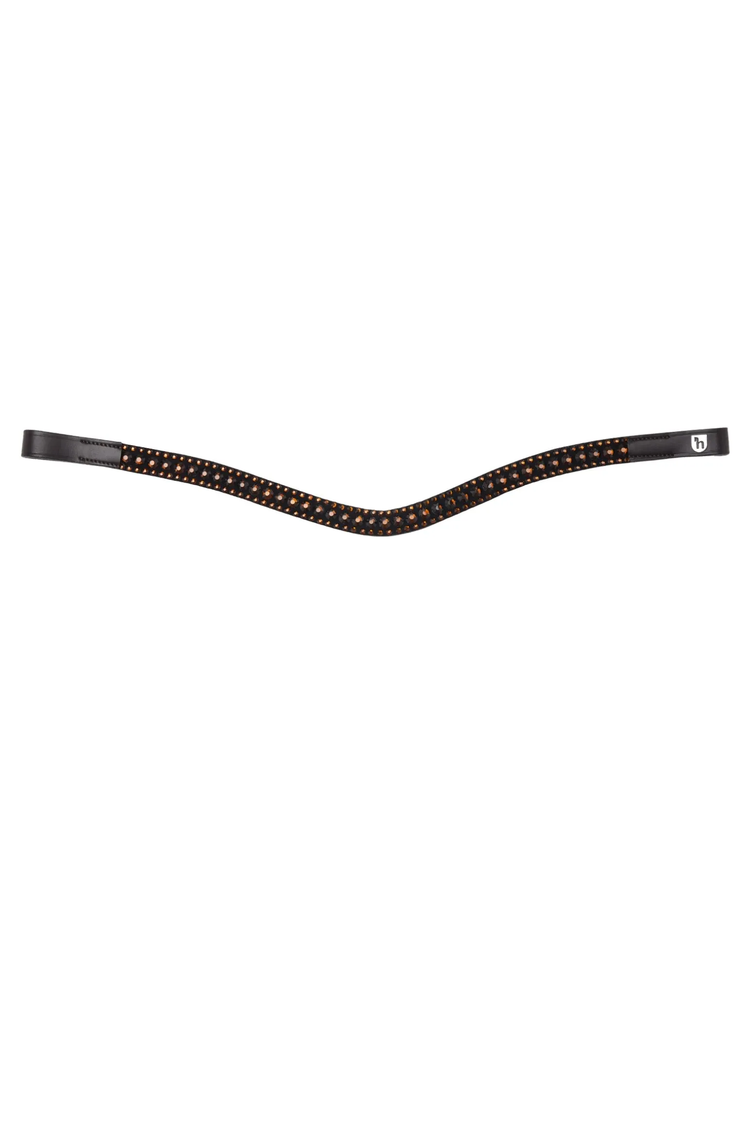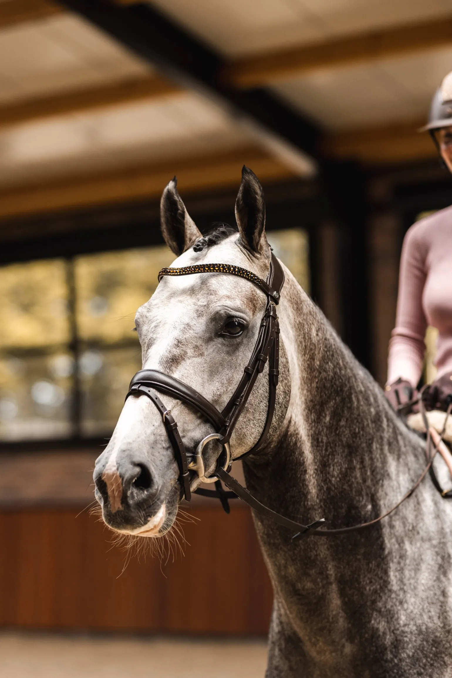 Der geformte Stirnriemen mit weicher Lederpolsterung und drei Reihen von Kristallen verleiht jeder Zäumung einen eleganten Touch.