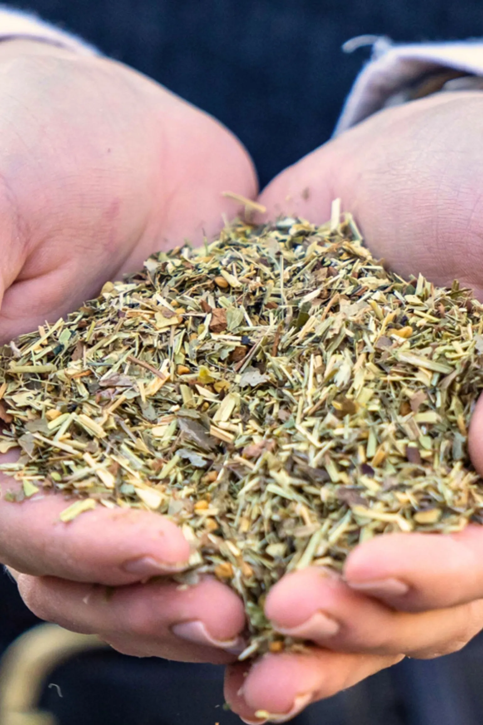 Zusammensetzung: 25 % Heidelbeerblätter geschnitten, 25 % Hirtentäschelkraut geschnitten, 20 % Bockshornsamen ganz, 20 % Brennnesselkraut geschnitten, 10 % Zimt geschnitten. Dopingrelevanz: 48 Stunden Karenzzeit. Lagerhinweis: Futtermittel kühl, trocken und vor direkter Sonneneinstrahlung geschützt lagern. Nach Anbruch zügig verbrauchen.