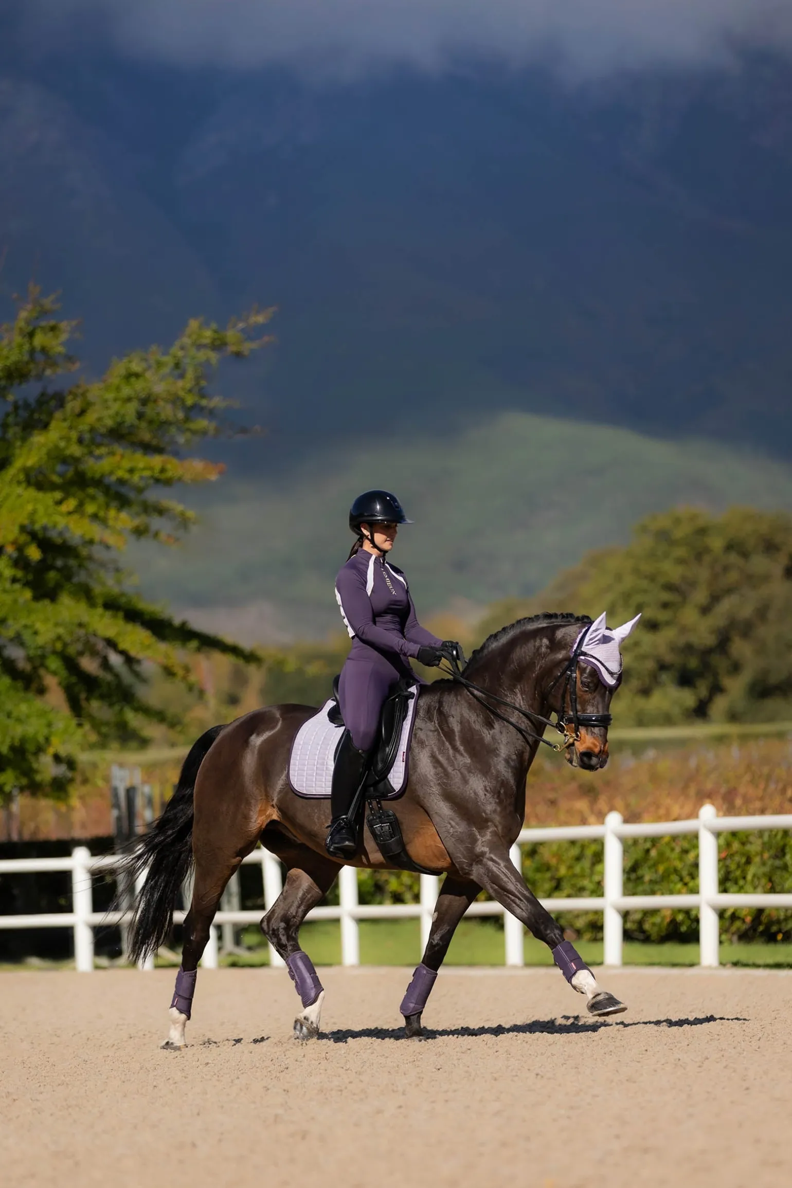 Die Schabracke besteht außen aus einer luxuriösen Wildlederartigen Oberfläche in einer großen Auswahl an Farben. Die innen liegende Bambusfütterung kontrolliert und absorbiert Feuchtigkeit unter dem Sattel. Die Schabracke ist wunderbar komfortabel und minimiert Reibung. Sie verfügt über einen klassischen Dressur-Schnitt mit hohem Widerrist, elastischen D-Ringen und Gurt-Schutz mit innen versteckten Schlaufen, der ein Rutschen verhindert. Kann mit den passenden Polo Bandagen und Fliegenhauben kombiniert werden.