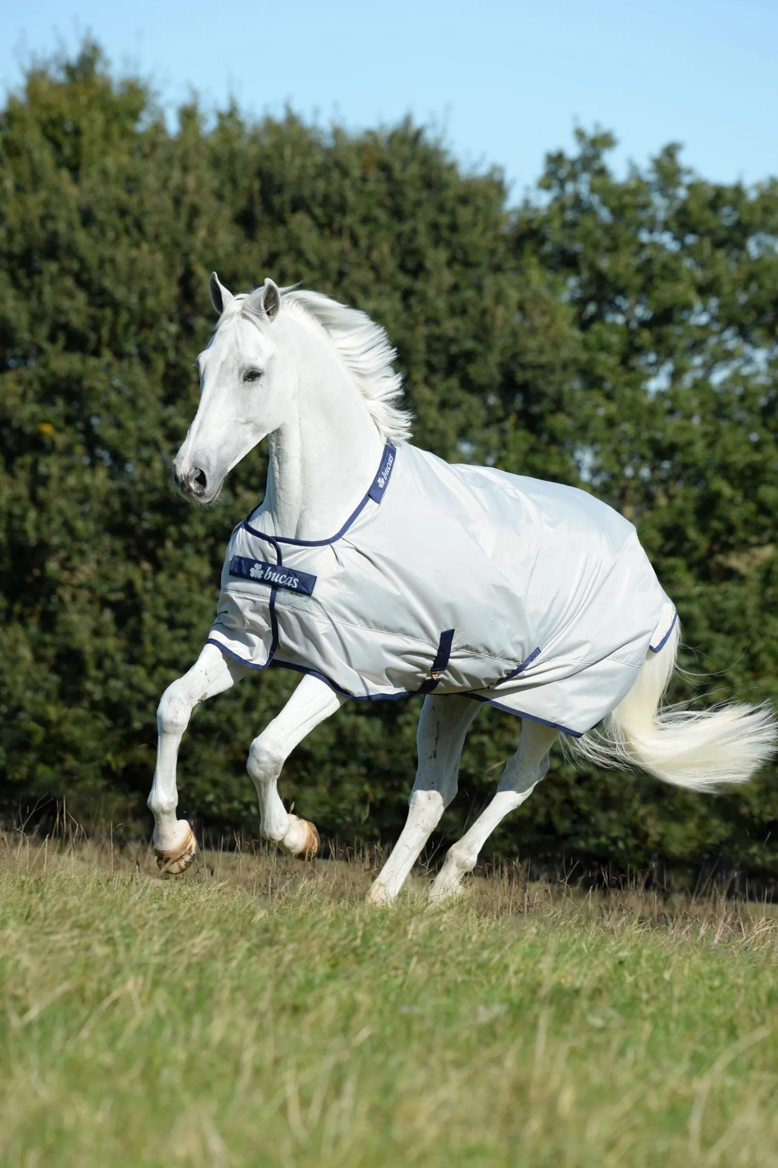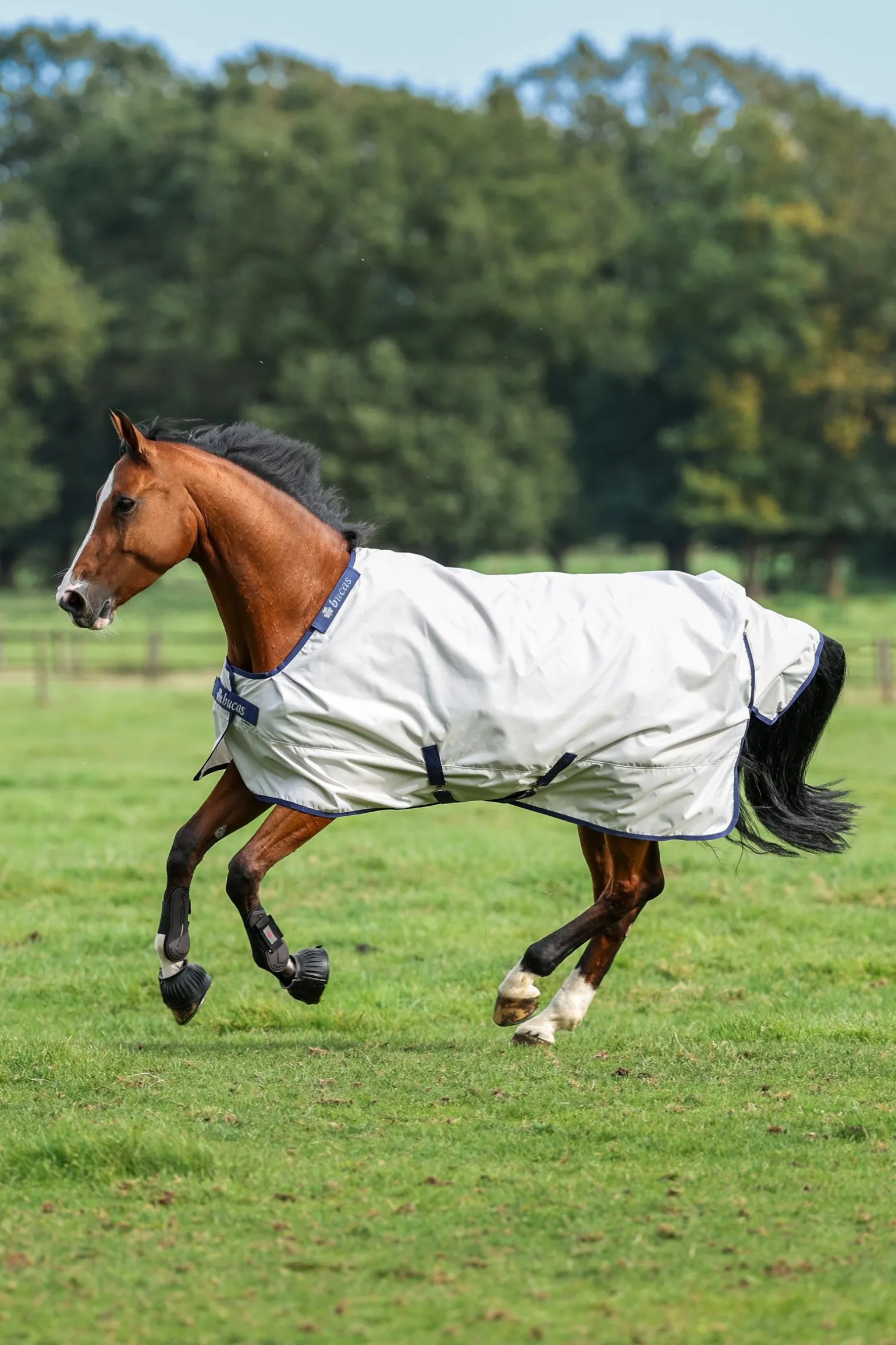 Die Sun Shower ist eine leichte Weidedecke, die zur perfekten Wahl wird, wenn alle anderen Decken zu schwer und warm sind. Sie wurde für sowohl Regen als auch Sonnenschein entwickelt. Die Sun Shower Weidedecke ist wasserdicht und atmungsaktiv und hat ein strapazierfähiges 840D Nylon-Außenmaterial. Die silberne Farbe der Decke ist ein zusätzlicher Vorteil, da sie Sonnenlicht reflektiert und verhindert, dass dein Pferd überhitzt. Die Decke ist mit einem speziell entwickelten großen Waffel-Mesh-Futter ausgekleidet, das die Luftzirkulation unter der Decke zwischen den Schichten unterstützt und dein Pferd an wärmeren Tagen kühler hält.