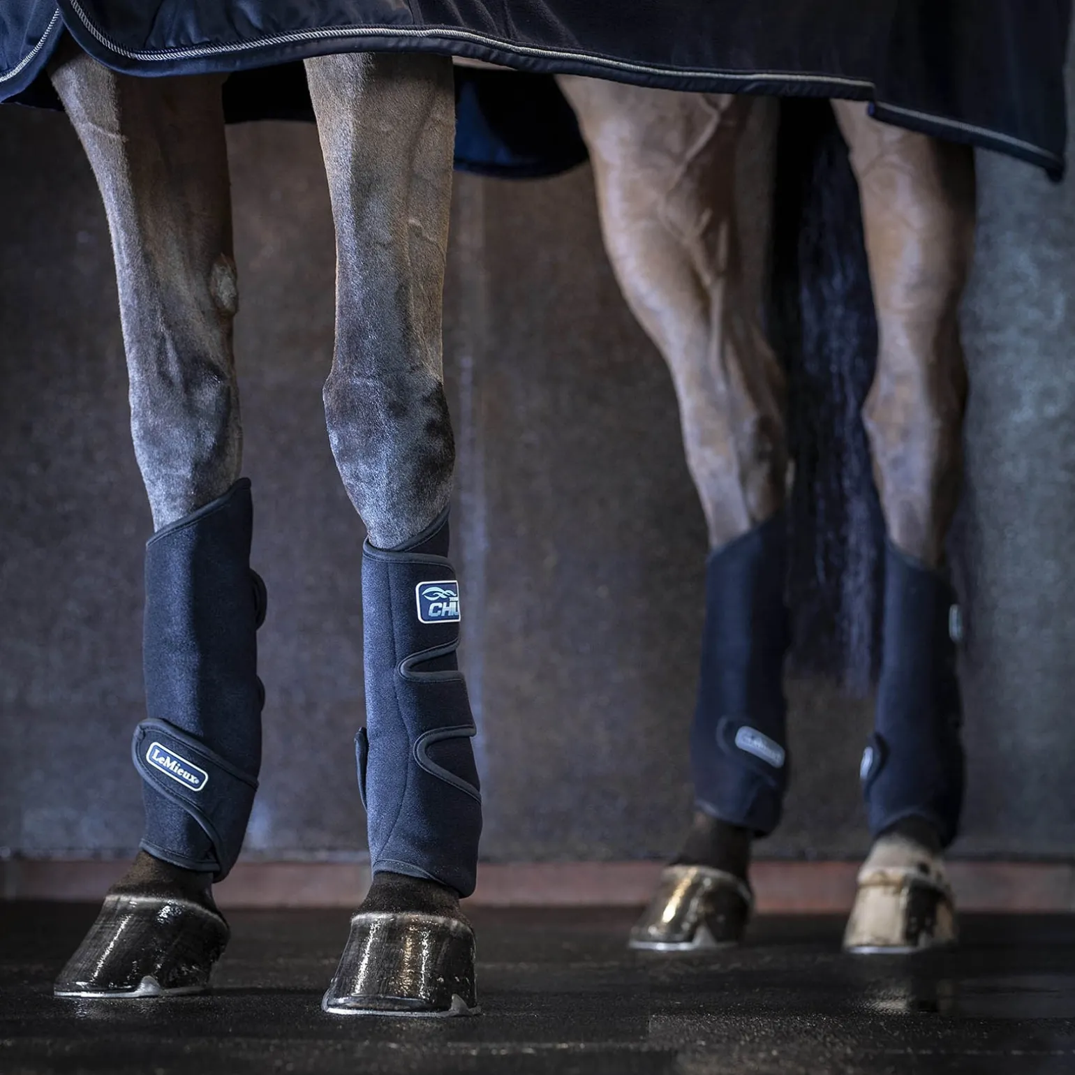 Regelmäßige Anwendung der Tendon Chill Kühlgamaschen für kurze Zeit (30-40min) nach intensivem Training zu präventiven Zwecken. Je früher die Temperatur der Sehnen nach der Arbeit gesenkt werden kann, desto besser. Dies gilt sowohl für hochintensive Dressur als auch für Galopp, Springen und Gelände.Kann an Vorder- oder Hinterbeinen getragen werden. Wird paarweise verkauft.