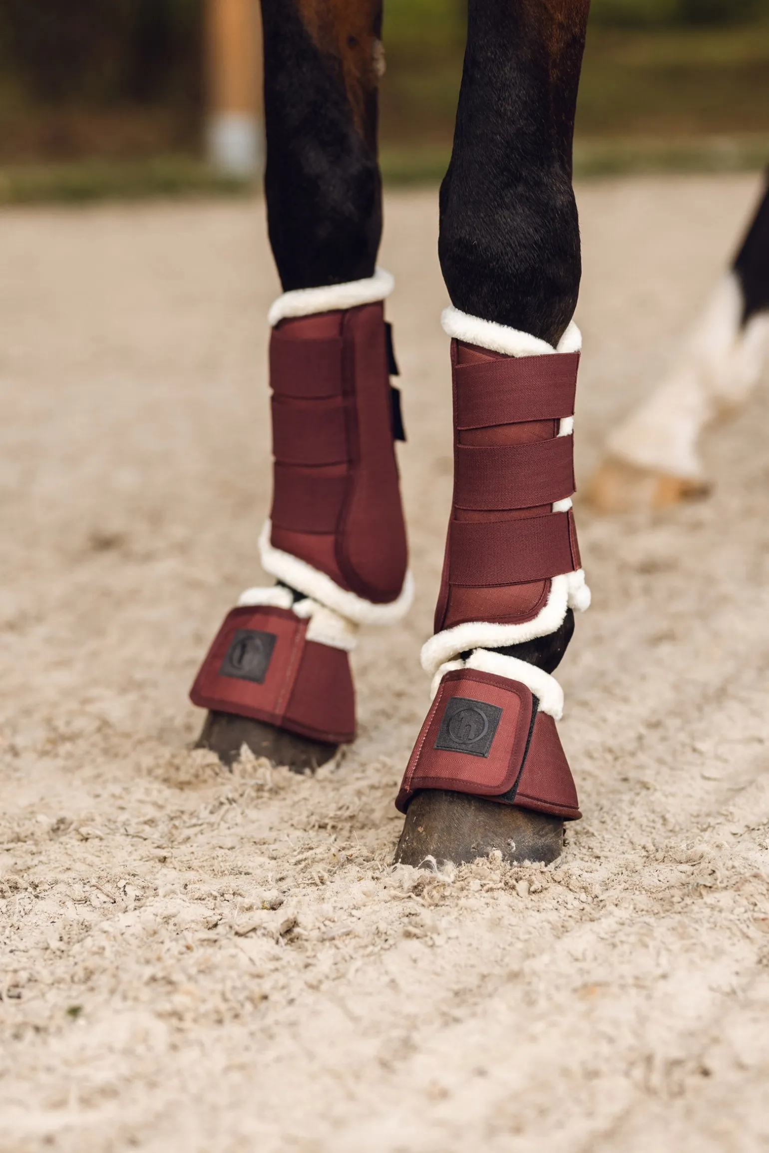 Strapazierfähige Hufglocken mit einem Außenmaterial aus ballistischem Nylon und Kunstfellrand zum Schutz des empfindlichen Fesselbereichs. Starker Klettverschluss. Passende Gamaschen sind erhältlich (#19278).