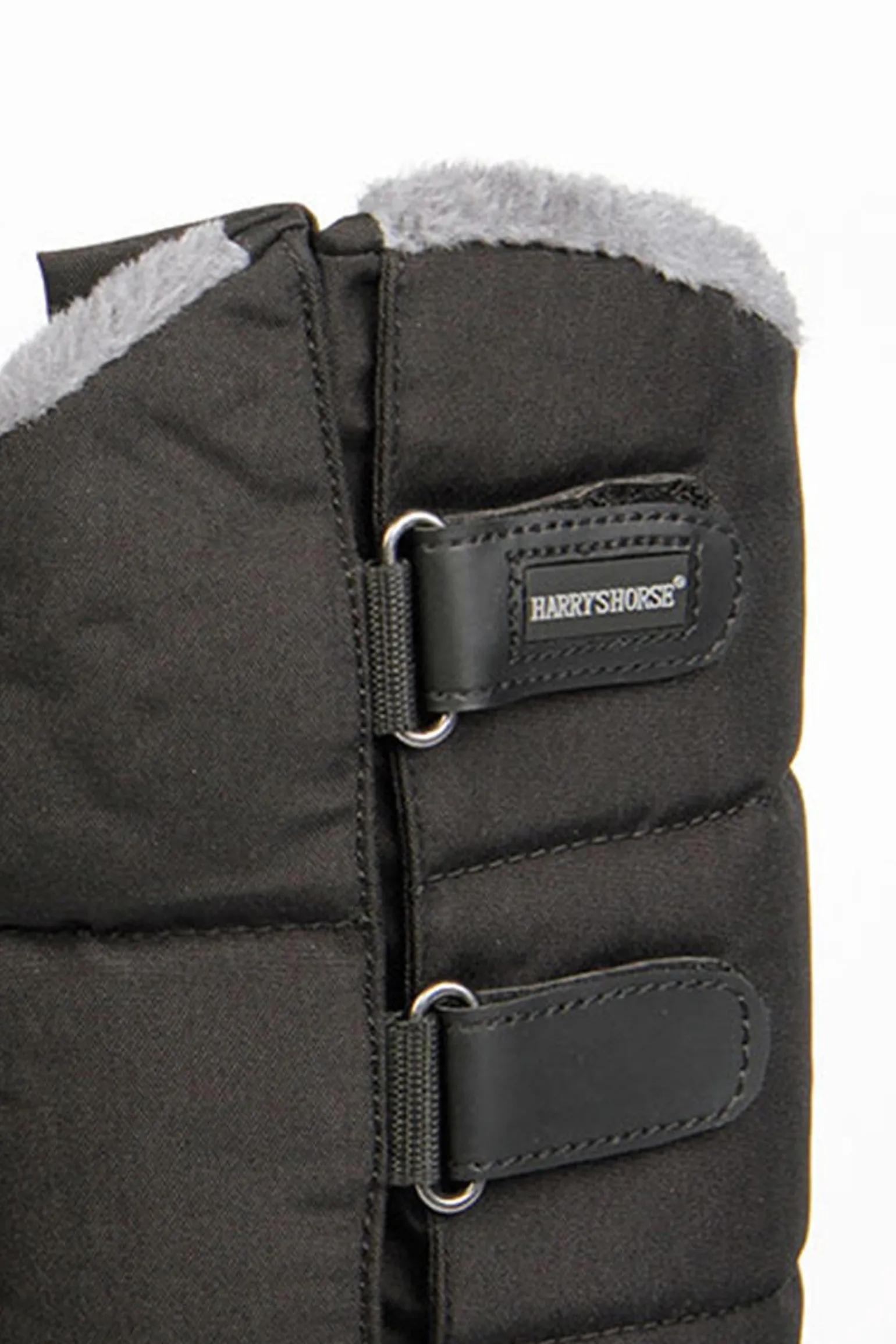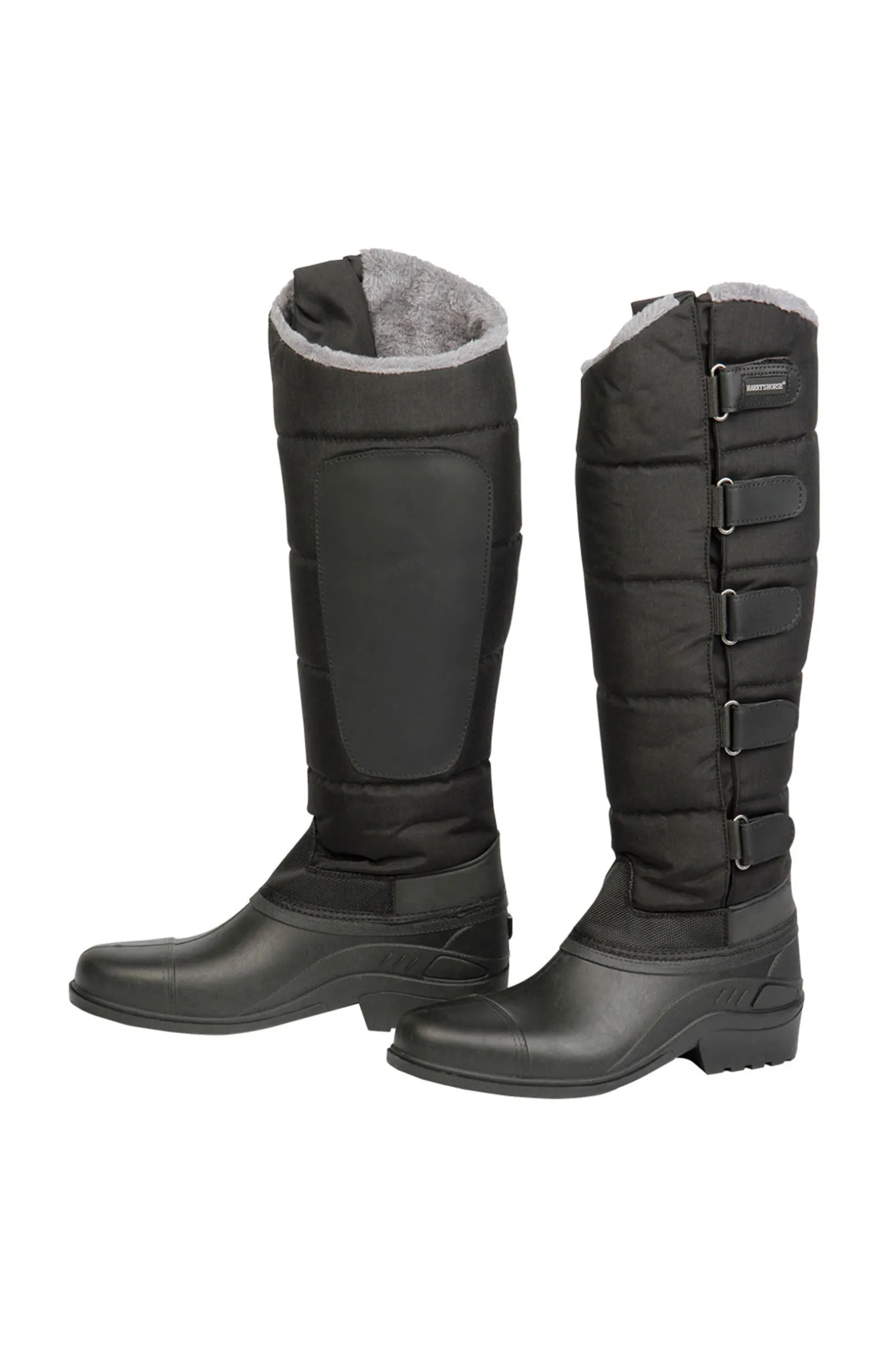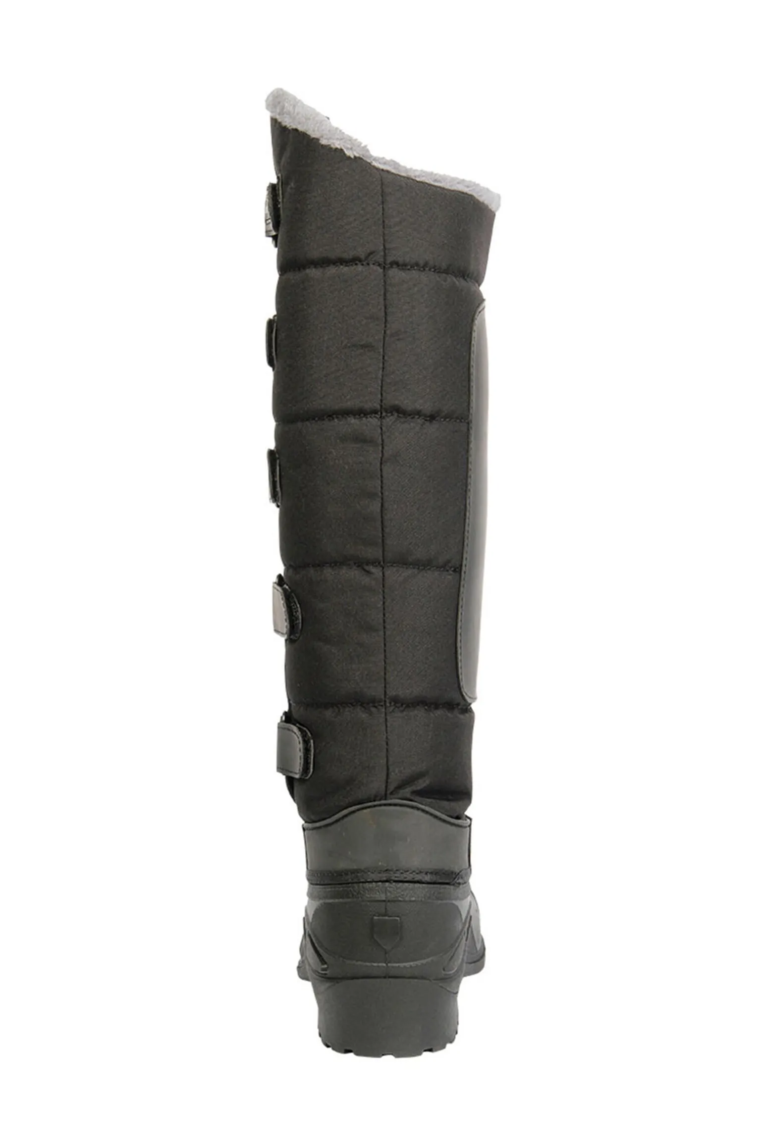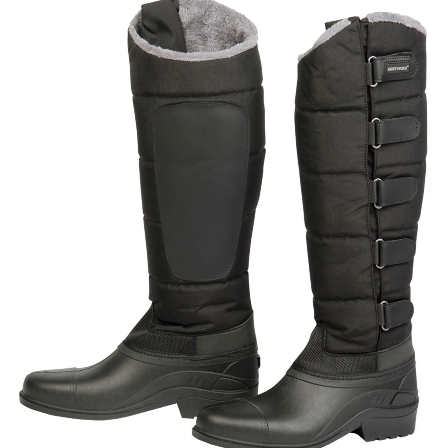 Thermostiefel mit wasserdichtem Fuß, Klettverschlüssen und einem warmen grauen Futter aus Kunstfell.
