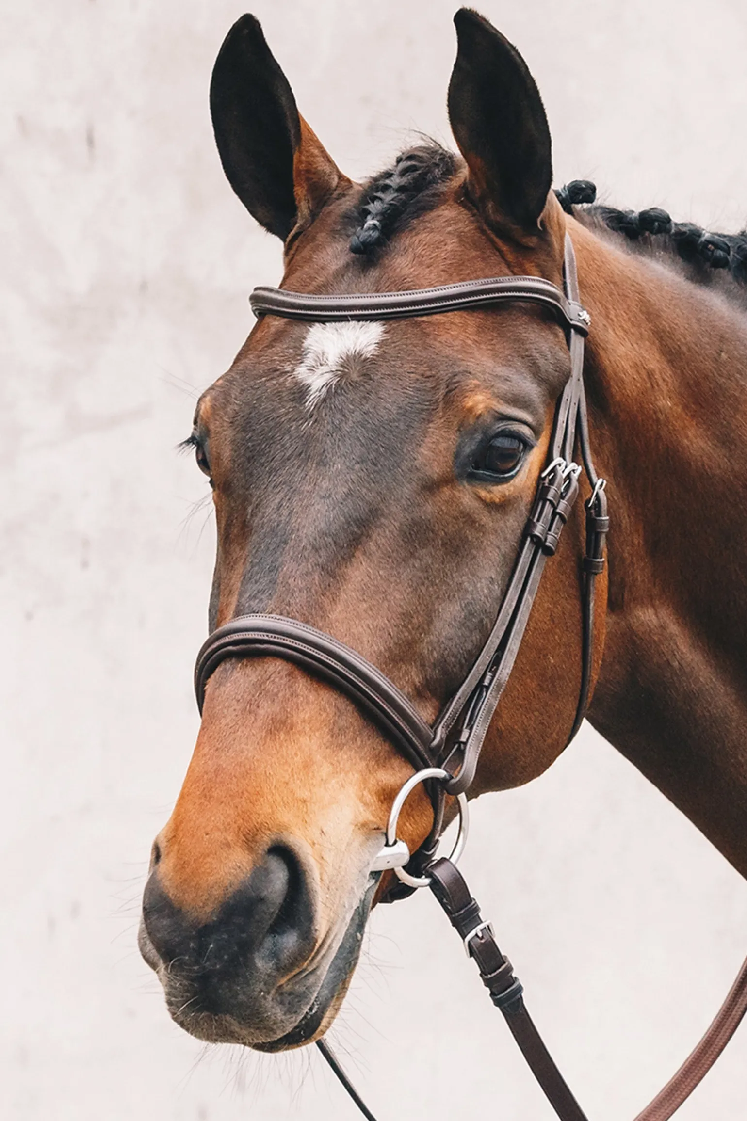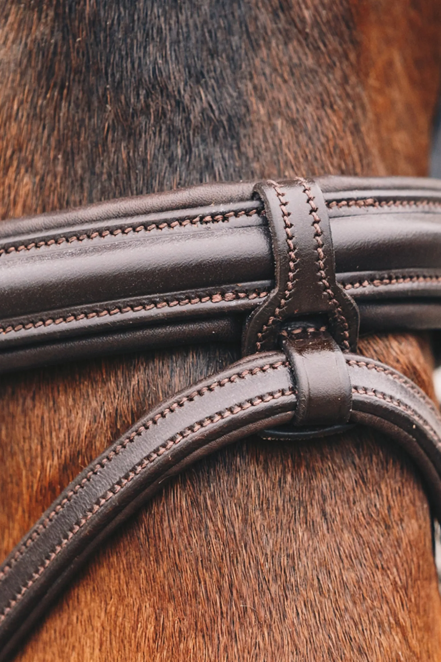 Vorgefertigtes Zaumzeug der Anatomic Line – Select & Mix – alle Vorteile bereits in einem Zaum vereint TOKYO SELECT verfügt über einen weich gepolsterten und anatomisch vorgeformten Nasenriemen. Ein besonderes Highlight ist der komplett abnehmbare Sperrriemen. Bei Bedarf kann der Sperrriemen einfach entfernt werden und nicht einmal die lästige Schlaufe bleibt übrig. Sperrriemen und Schlaufe sind ebenfalls sehr weich und speziell gepolstert. Das anatomisch vorgeformte, schmale Kopfstück hat einen einzigartigen Genickbereich, der speziell für die komplizierte Halsanatomie des Pferdes konzipiert wurde. Der markante Schnitt und die weiche Polsterung reduzieren den Druck im Nacken deutlich. TOKYO SELECT ist mit einem schlichten, geschwungenen Lederstirnriemen ausgestattet. Alle Teile sind auch einzeln in der Select & Mix – Kollektion verfügbar.
