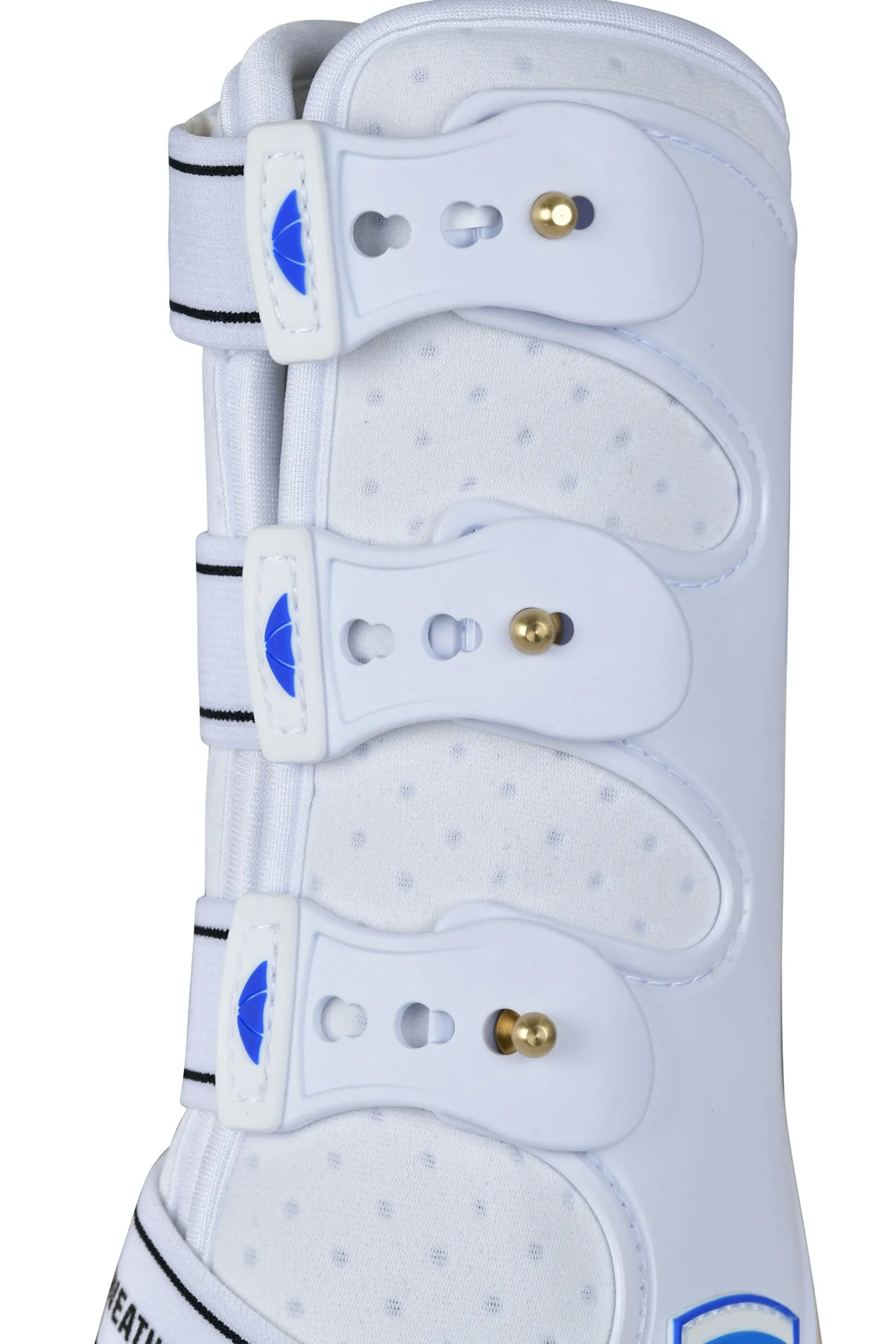 Diese Dressurgamaschen verfügen über eine atmungsaktive Neopren-Innenseite, die die Beine deines Pferdes während des Trainings kühl und komfortabel hält. Sie wurden für ultimativen Komfort entwickelt und sorgen dafür, dass dein Pferd sich wohlfühlt, während es gleichzeitig die notwendige Unterstützung erhält. Die Kombination aus Unterstützung für Karpal- und Sehnenbereich sowie der Schnellverschluss-Stiftverschluss sorgt für eine sichere und enge Passform. Perfekt für den Schutz und die Unterstützung der Beine deines Pferdes während intensiver Trainings.