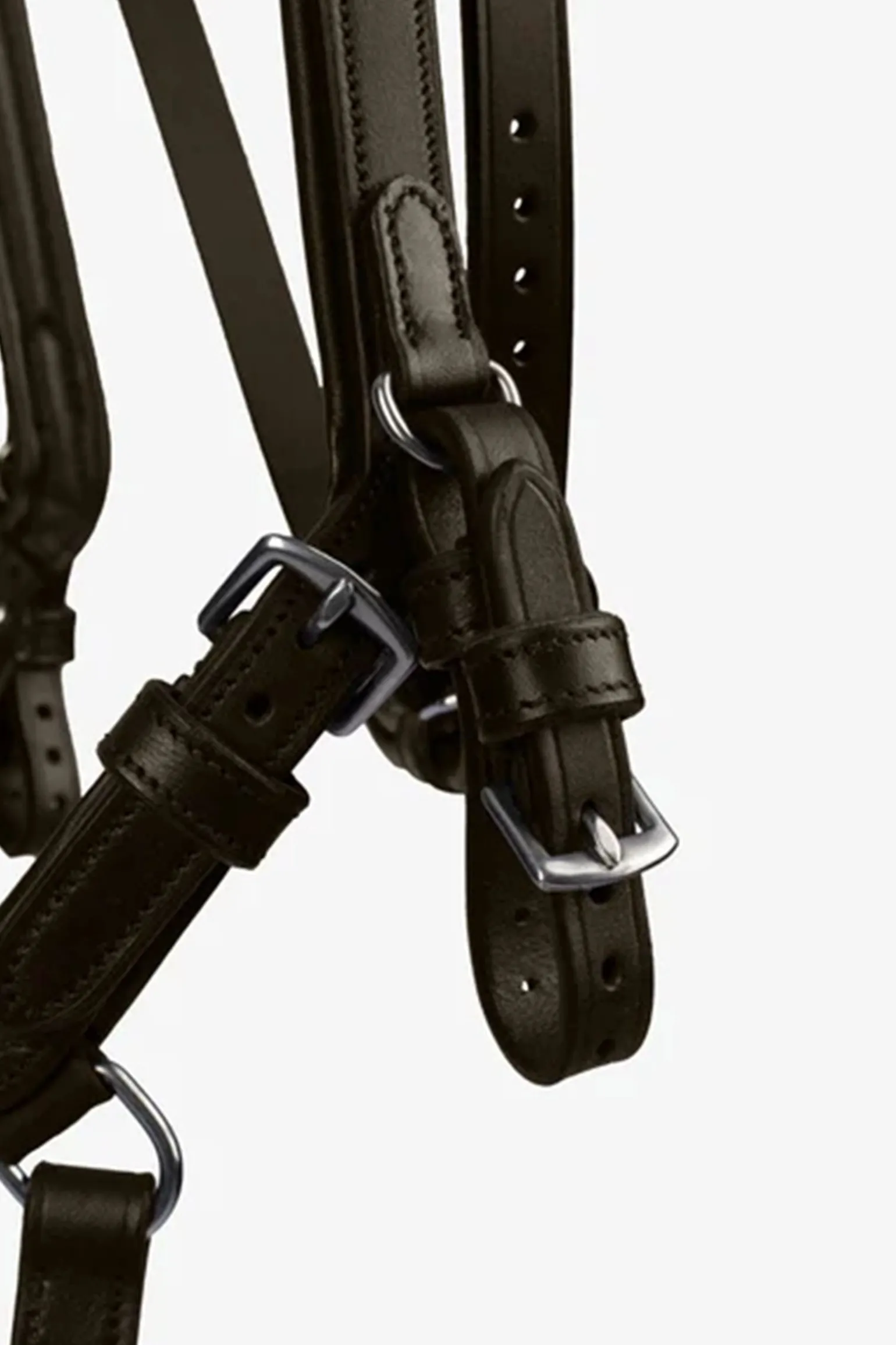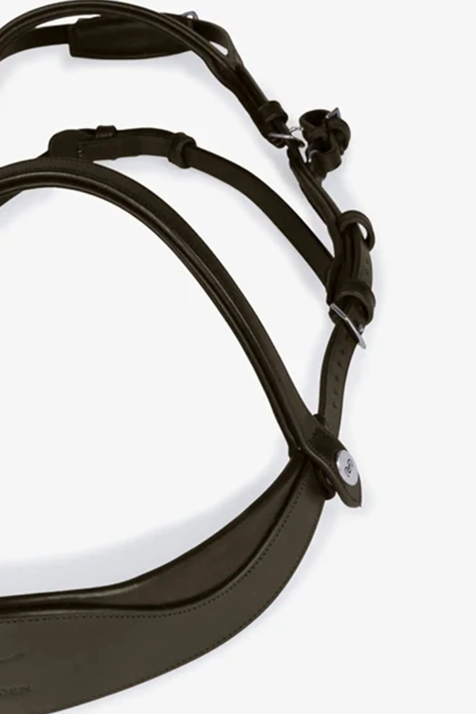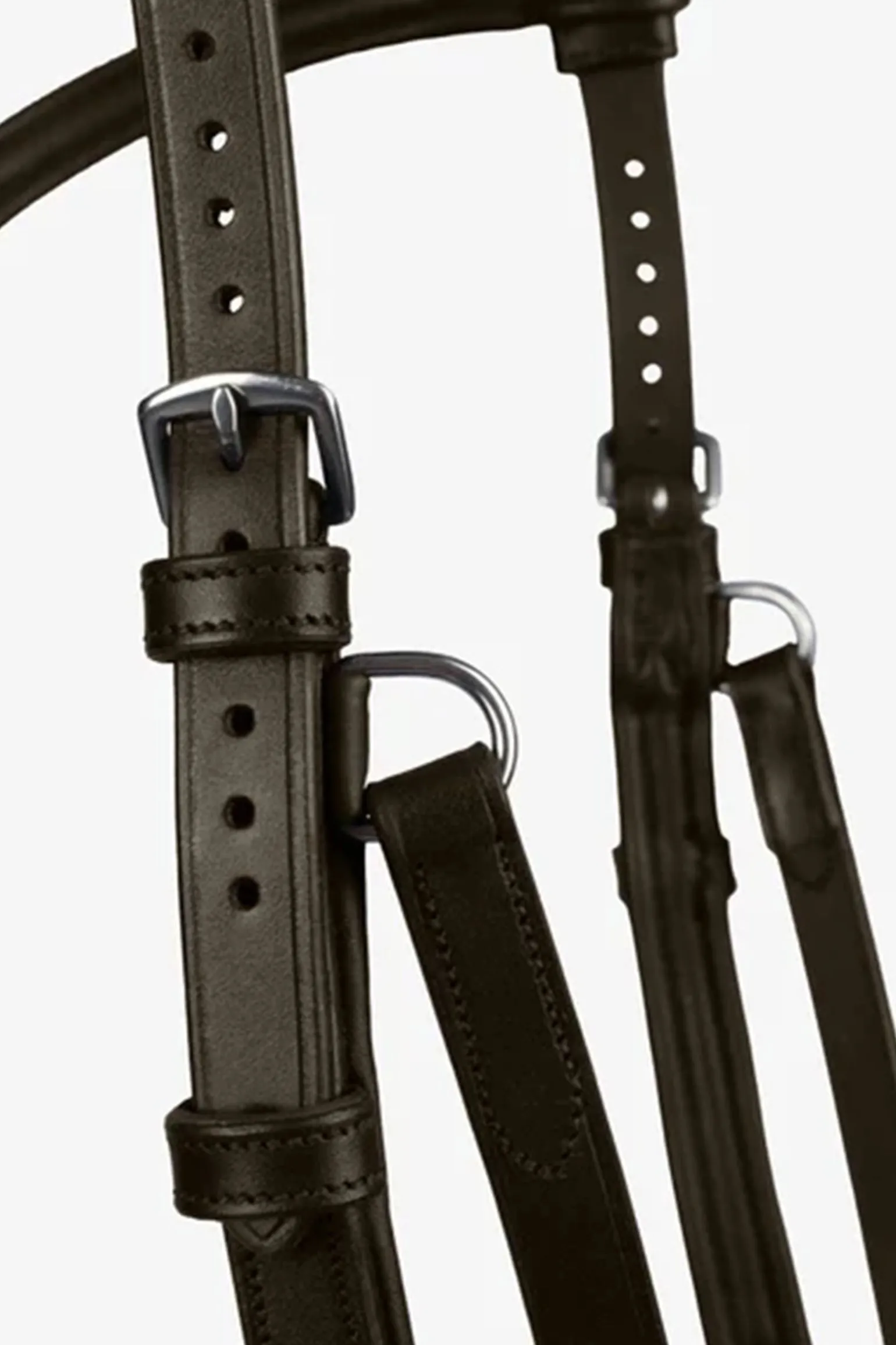 Für diese Trense hat PS of Sweden ein speziell entwickeltes Nasenband zur ultimativen Druckentlastung entwickelt. Das U-förmige Nasenband sorgt für eine optimale Passform mit weicher Polsterung. Schnallen an beiden Seiten ermöglichen eine präzise Anpassung ans Pferd. Die Platzierung des Nasenbands verhindert Druck auf die Wangenknochen und empfindliche Nervenenden wie den infraorbitalen Nerv. Dieses Design hält die Zähne ebenfalls frei von Druck, was besonders für Pferde mit Zahnproblemen vorteilhaft ist. Der höhere Riemen verhindert, dass die Trense nach vorne in Richtung der Augen des Pferdes rutscht und Reizungen verursacht. Die gepolsterte Sperrriemenschnalle, die in beide Richtungen verstellbar ist, sorgt dafür, dass sie an Ort und Stelle bleibt, ohne zu kneifen. Die King Edward Trense führte ein revolutionäres Genickstück ein. Der Luftkanal über dem Genick und dem höchsten Teil des Halses bietet maximale Freiheit für empfindliche Nervenbahnen, Muskelansätze und Bänder. Weiches Leder bedeckt den Luftkanal, was die Reinigung erleichtert, und zwei kleinere Kissen oben sorgen für eine optimale Platzierung. Gepolsterte Kanten, die sich von der Lederbasis erstrecken, halten das Genickstück an Ort und Stelle, um Druck und Reibung zu vermeiden. Der flexible Schaumstoff im Inneren passt sich der Form des Pferdes an und sorgt für maximalen Komfort. Das Kopfstück ist mit Stoppern ausgestattet, die sicherstellen, dass das Stirnband an Ort und Stelle bleibt. Diese Trense verfügt über eine neue Version von Backenstücken, die unabhängig gespannt und mit mehreren Löchern verstellbar sind, um verschiedene Gebisse aufzunehmen. Das Stirnband ist innen weich gepolstert, um Komfort zu bieten und Reibung zu vermeiden. Das U-förmige Design verhindert Druck auf die Stirn und Augenhöhlen des Pferdes. Gummi auf der Innenseite sorgt dafür, dass es auch unter harten Bedingungen an Ort und Stelle bleibt. Hinweis: Dieses Stirnband verfügt nicht über das Click-It™-System. Alle Schlaufen haben innen Gummi, was sicherstellt, dass sie auch bei den härtesten Herausforderungen sicher an Ort und Stelle bleiben. Die Trense ist für den Wettkampf in allen Disziplinen und innerhalb der FEI zugelassen. Denke daran, einen Kehlriemen zu kaufen und ihn während Dressurwettbewerben an deinem Stirnband zu befestigen.
