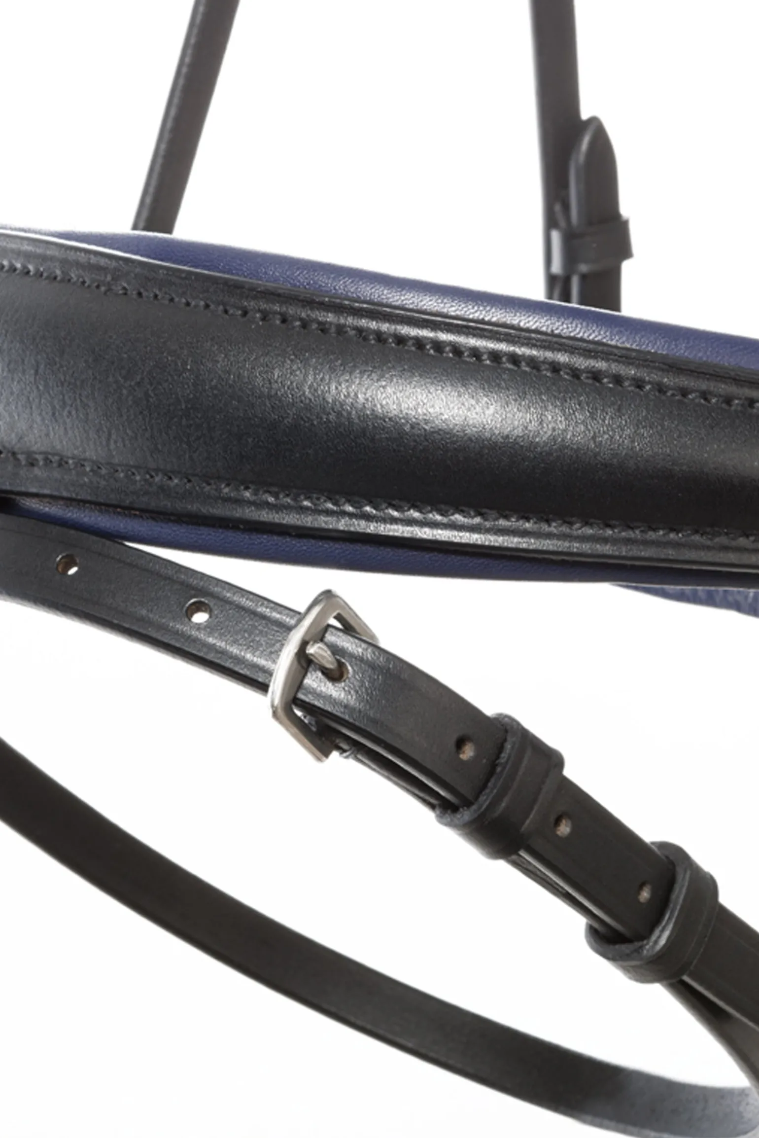 Die modische Trense „Ocean“ KavalSH4 mit dunkelblau unterlegtem Nasenriemen und funkelnden blauen Strasssteinen auf dem Stirnriemen besteht aus hochwertigem Leder und ist beidseitig verstellbar für eine optimale Passform. Das Genickstück ist anatomisch geformt und extra breit für mehr Ohrenfreiheit. Der Nasenriemen ist weich gepolstert und anatomisch geschnitten. Gummierte Zügel mit Stoppern (16 mm). Passende Sporenriemen. KavalSH4 – abnehmbarer Sperrriemen ohne sichtbare Befestigung. Trensen mit der Bezeichnung „KavalSH4“ sind Trensen, bei denen der Sperrriemen entfernt werden kann. Das Besondere daran ist, dass die Befestigung des Sperrriemens nicht sichtbar ist, wie bei herkömmlichen Trensen mit abnehmbarem Sperrriemen.