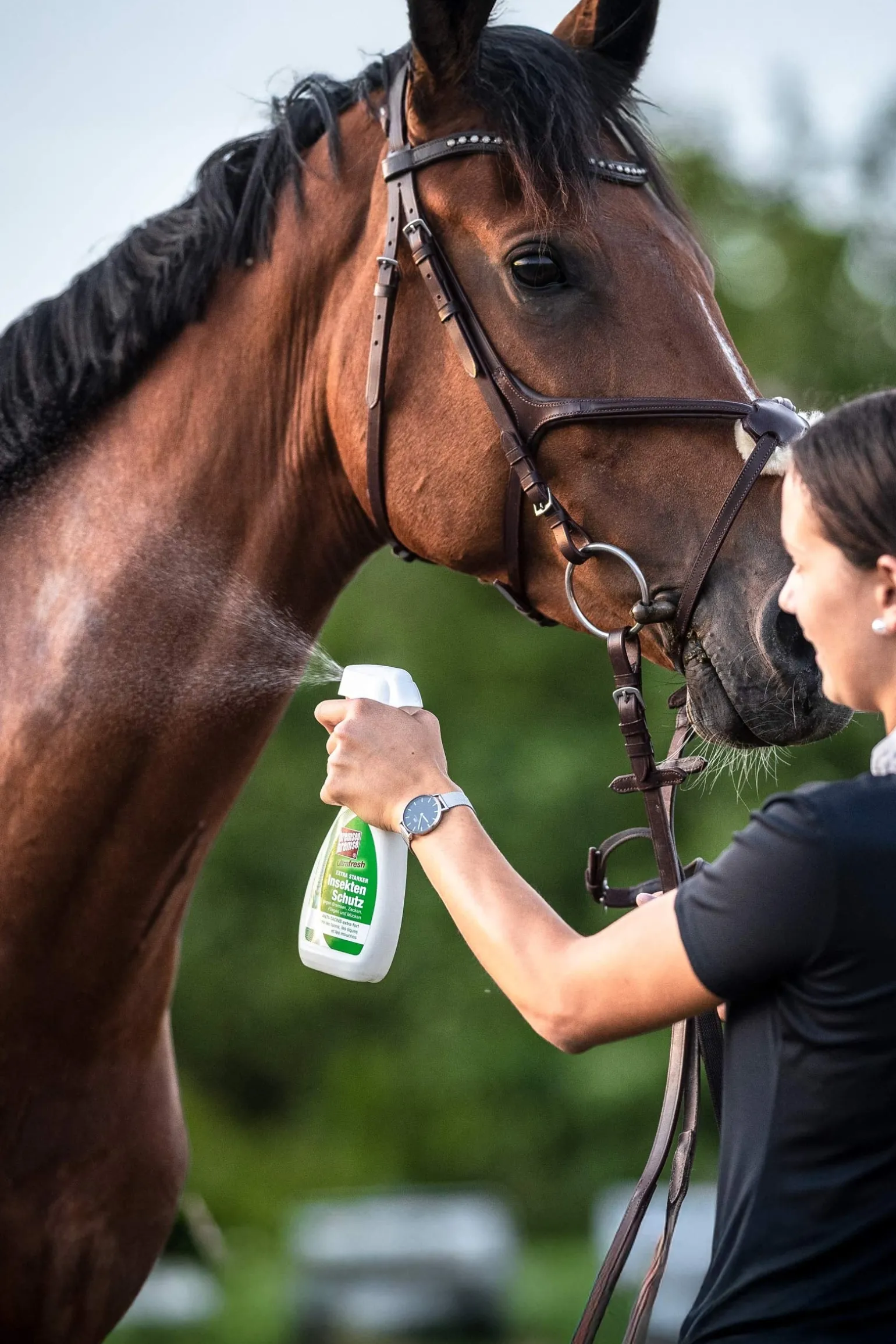 Die BREMSENBREMSE® ultrafresh wehrt zuverlässig und langanhaltend lästige Insekten ab (Bremsen, Zecken, Kriebelmücken, Fliegen u.a.). Ätherische Öle verleihen einen frischen, zitronigen Duft. Extra starke Abwehrwirkung durch das seit 40 Jahren bewährte Breitband-Insekt-Repellent IR3535®, sowie dem Wirkstoff aus den Blättern des Eukalyptus Citriodora. BREMSENBREMSE® ultrafresh ist alkoholfrei, färbt nicht ab und kann selbstverständlich im Wettkampf eingesetzt werden. Mit Panthenol, Sesamöl, Avocadoöl und Walnussöl.