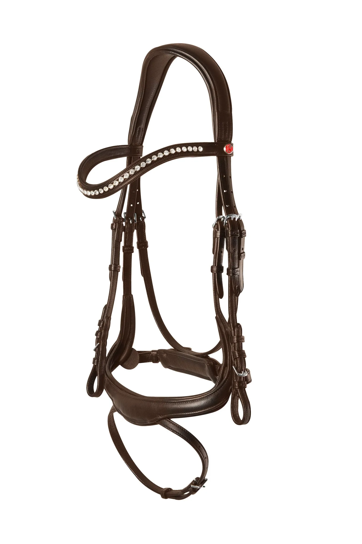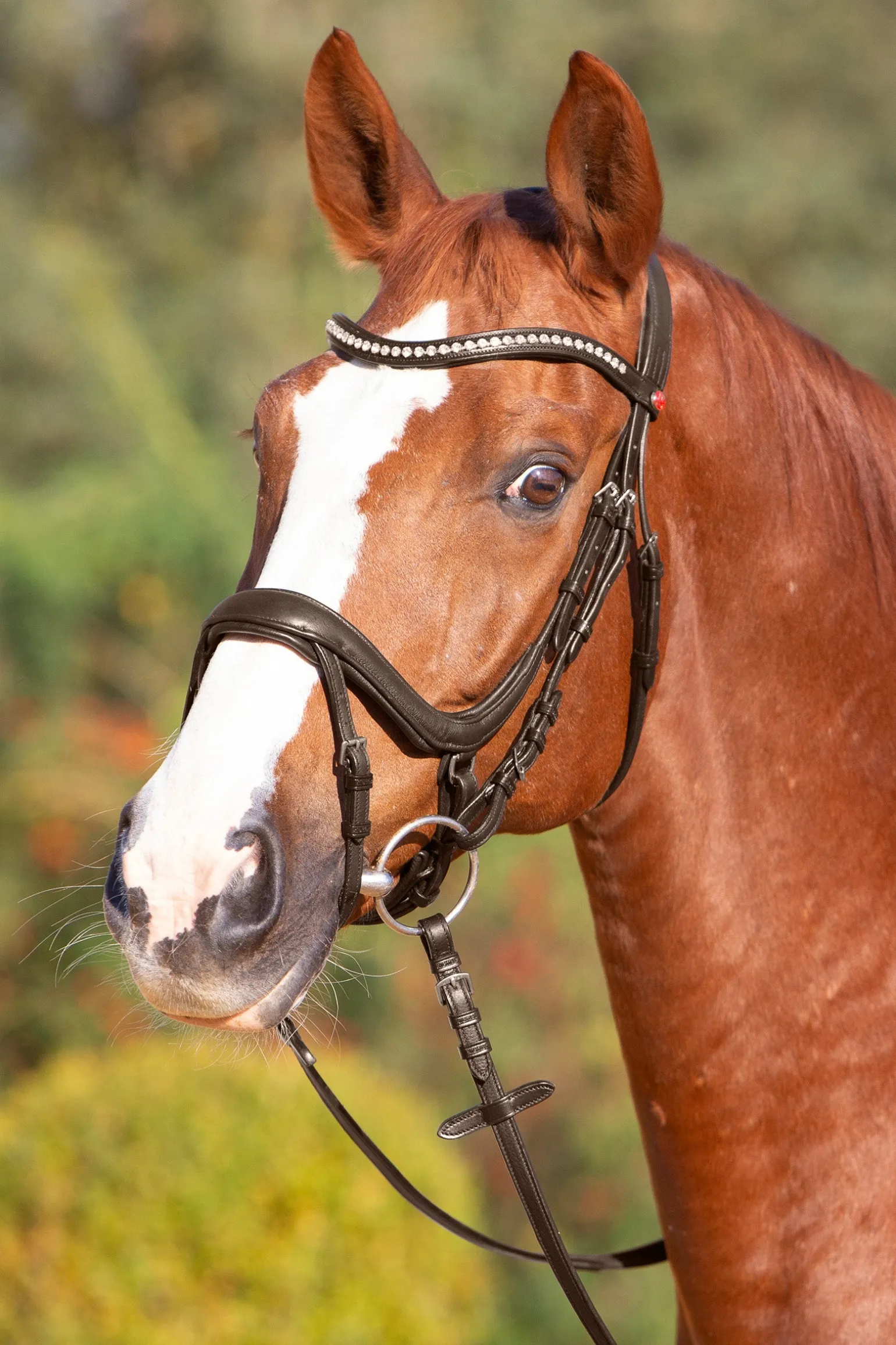 Der neue Trensenzaum Kieffer Ultrasoft® Amy mit schwedischem Reithalfter berücksichtigt in erster Linie höchsten Komfort für den sensiblen Pferdekopf in seiner Gesamtheit mit all seinen empfindlichen Nervenbahnen. Für eine schonende Druckverteilung im Genick sorgt das anatomisch geformte Kopfstück mit breiter Auflagefläche, Ohrenausschnitt und extraweicher Polsterung. Das ebenfalls superweich gepolsterte, anatomisch geformte Reithalfter mit seinem abgerundeten Schnitt kommt perfekt auf dem Pferdekopf zum Liegen und spart die empfindlichen Nervenbahnen aus. Der integrierte Sperrriemen lässt sich bei Bedarf spurlos entfernen. Das mit weißen Kristallen besetzte, geschwungene Stirnband verleiht diesem Zaum zusätzlich einen eleganten Look.