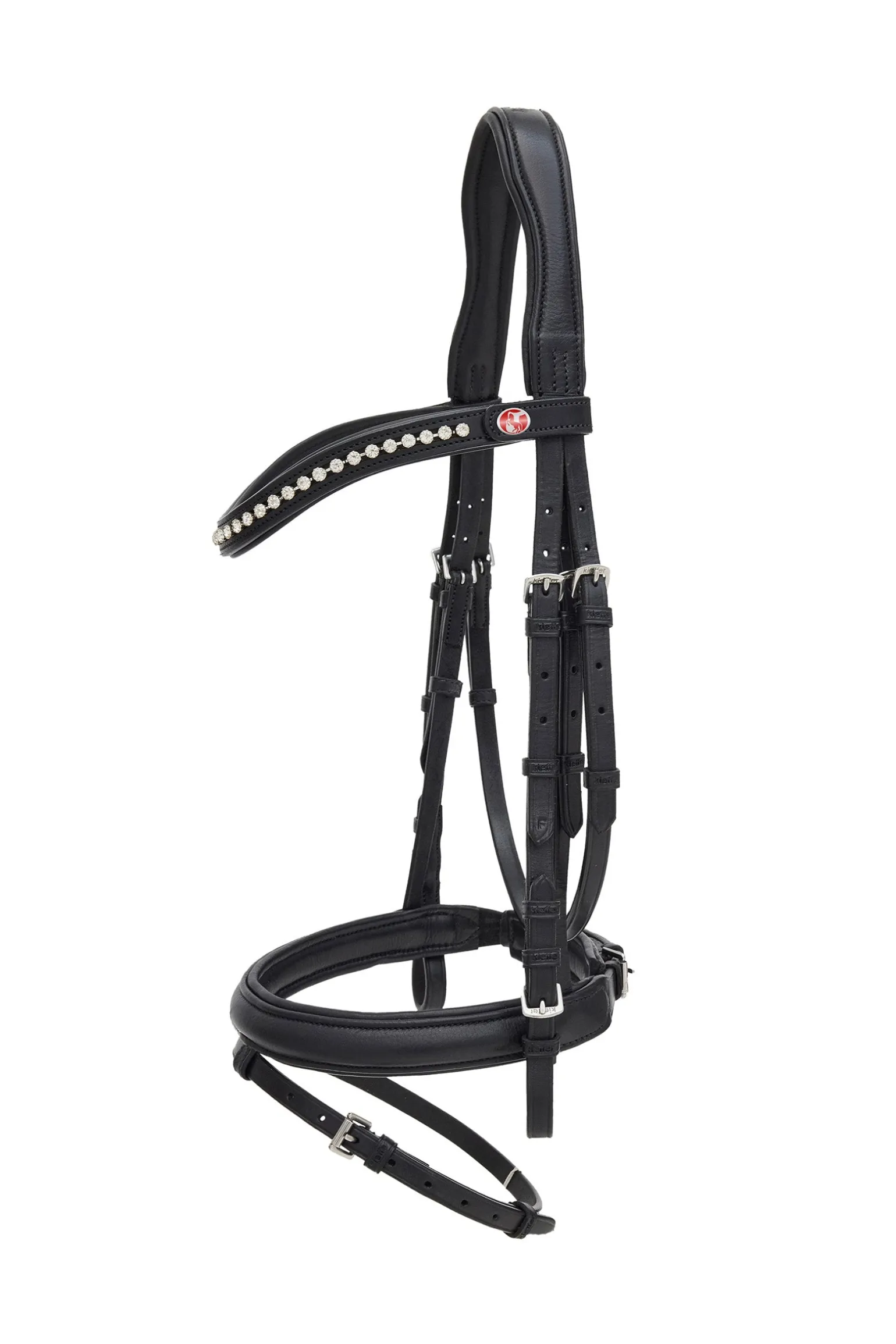 Trensenzaum Kieffer Ultrasoft® FlexiStyle ist ein klassischer, englisch kombinierter Trensenzaum aus butterweichem Qualitätsleder. Das beidseitig verschnallbare Professional-Kopfstück mit Ohrenausschnitt und das Nasenband sind bei diesem Zaum extraweich gepolstert. Die Besonderheit von Kieffer Ultrasoft® FlexiStyle: Dieser Zaum ist mit einem geschwungenen Kieffer FlexiLoop® Stirnband mit weißen Kristallen ausgestattet. Der clevere Schnellwechselverschluss mit seitlich angebrachten Druckknöpfen erleichtert den Wechsel des Stirnbands enorm und macht die Kreation eines neuen Looks in weniger als einer Minute möglich! Die aktuelle Kieffer FlexiLoop® Stirnband-Kollektion ist in verschiedenen Farbtönen und Kristallgrößen erhältlich.