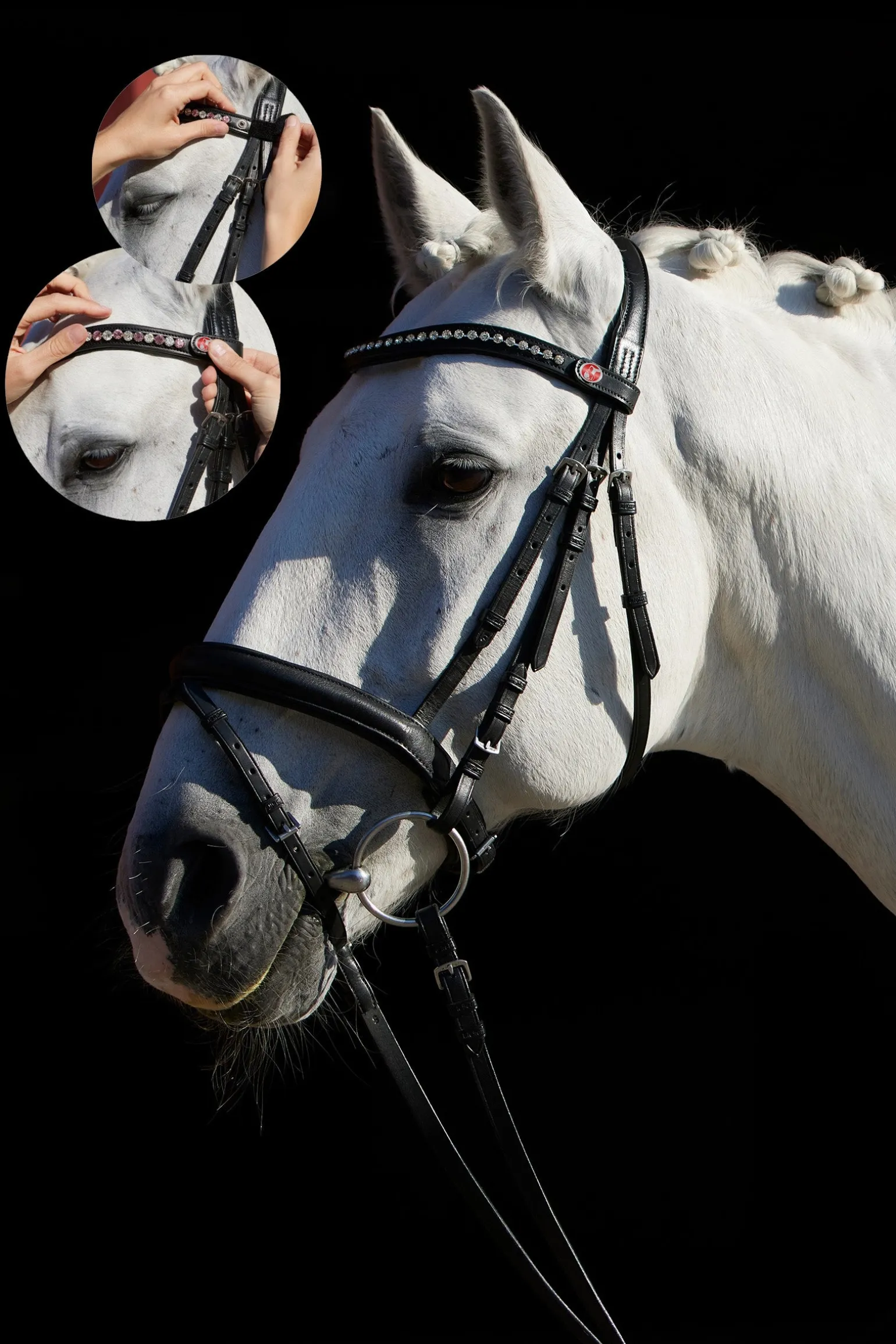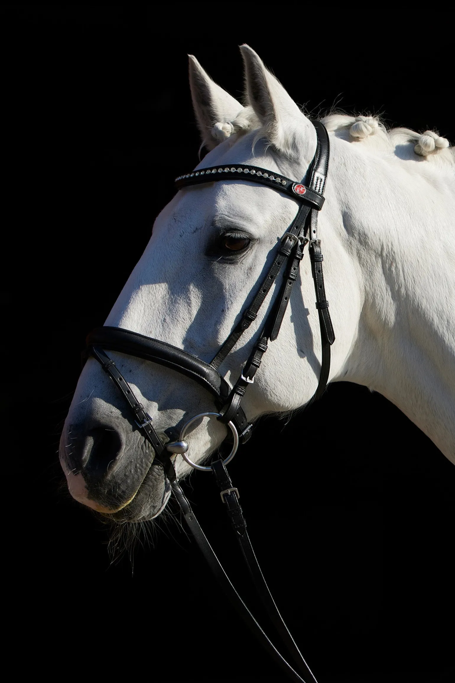 Trense aus besonders weichen Leder mit Stirnbändern zum wechseln.