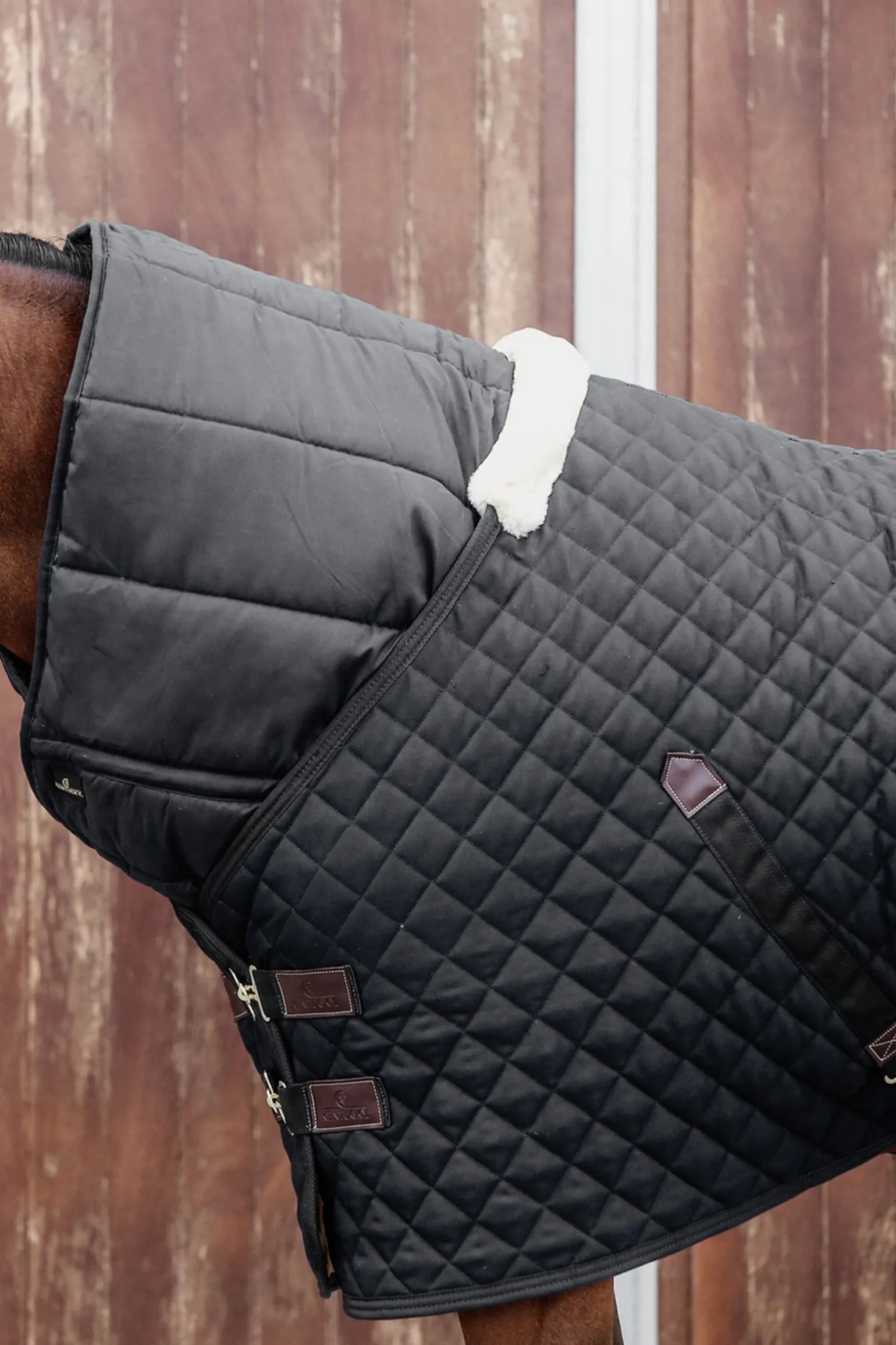 Die Unterdecke mit einer Füllmenge von 300 g ist die praktische Lösung, wenn es draußen kalt wird und das Pferd eine weitere Schicht zum Warmhalten benötigt.Gleichzeitig gibt es keine Verwirrung mehr durch eine Vielzahl von Bauchgurten und keine Druckstellen durch viele Verschlüsse vor der Brust. Die Unterdecke hat nur Nylon-Riemen, um einen elastischen Deckengurt an Ort und Stelle zu halten. Der Stoff der Decke ist aus Mikro-Polyester und bietet enormen Komfort. Das verlängerte Halsstück kann nach hinten gefaltet werden, was maximalen Komfort vermittelt. Wenn das Verlängerungsstück nicht gefaltet ist, kann es seinem eigentlichen Zweck nachkommen und den Hals wärmen. Da zwischen Decke und Mähne kein Druck entsteht, kommt es auch nicht zu Scheuern. Das Gewebe der Unterdecke ist identisch zum Gewebe Kentucky Horsewares populären Bandagen-Unterlagen, weshalb keine Notwendigkeit besteht, den Widerrist oder die Brust mit eigenen Unterlagen zu schützen. Die Decke ist maschinenwaschbar bei 30° C.