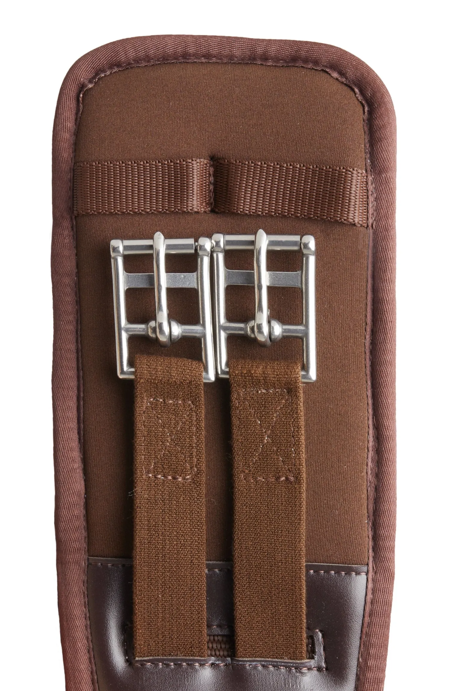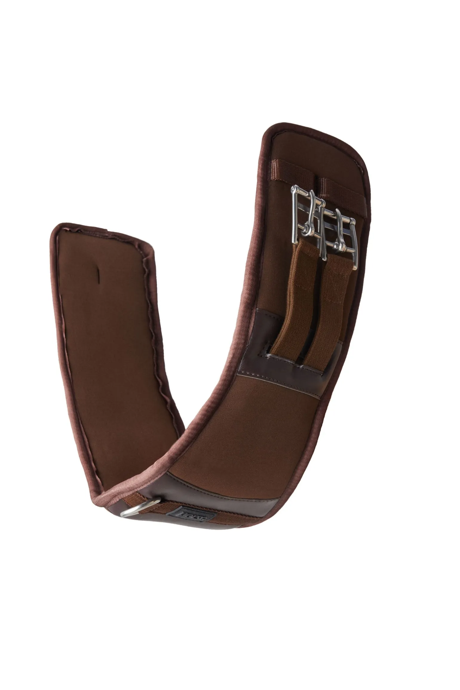 Weicher, geformter Neopren-Dressursattelgurt mit Elastik an beiden Enden. Für mehr Komfort reicht das Neopren weit über die Rollschnallen hinaus, um Scheuer- und Druckstellen zu vermeiden. Der breitere Mittelteil sorgt für eine gute Druckverteilung, während das reduzierte Material an den Ellenbogen Bewegungsfreiheit bietet. Der Sattelgurt verfügt über Rollschnallen für einfaches Gurten und einen D-Ring in der Mitte für die einfache Befestigung von Hilfszügeln. Gurtschlaufen halten die Gurtstrupfen an ihrem Platz. Gummi-Logo-Abzeichen.