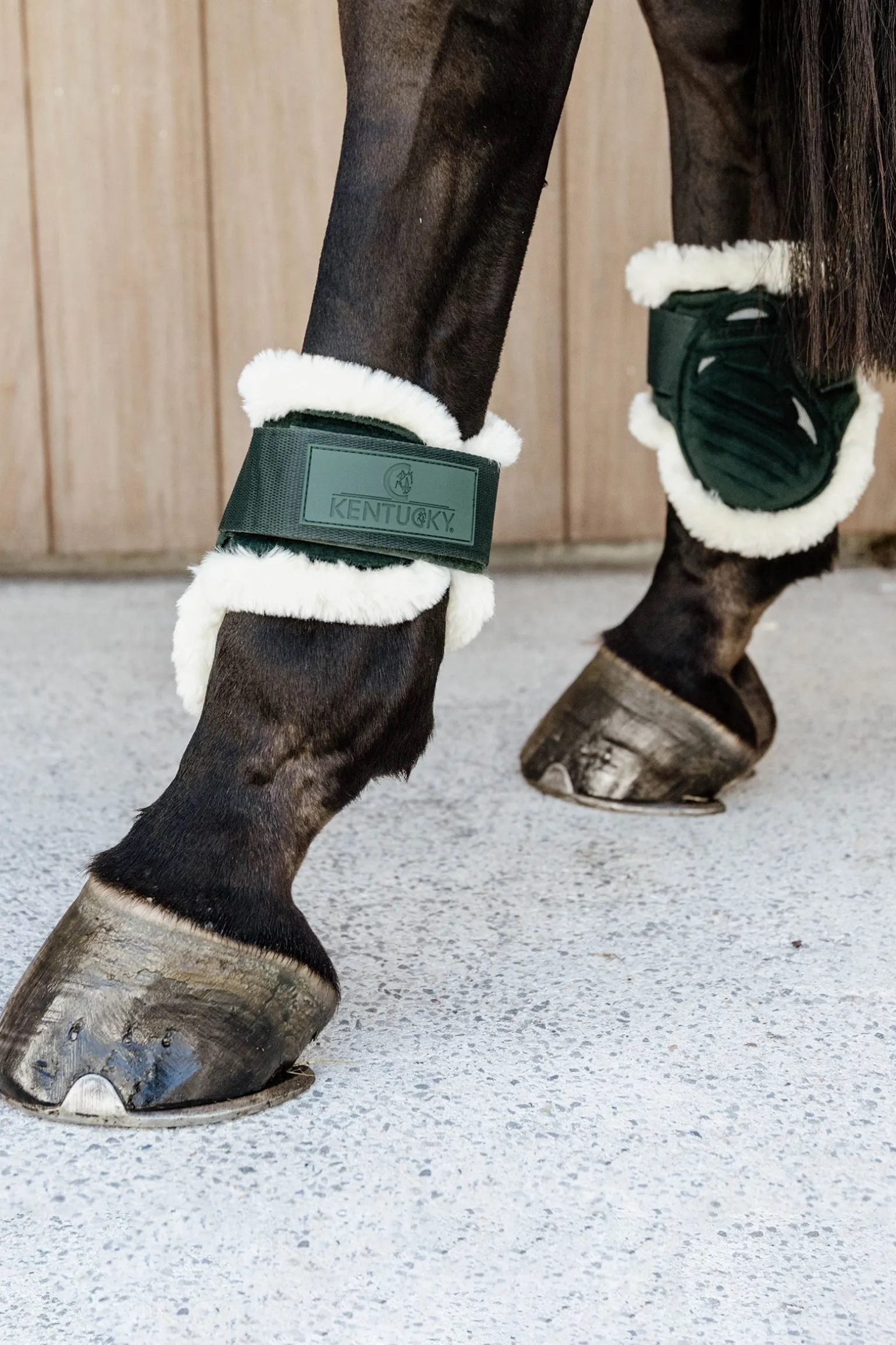 Die Streichkappen für Jungpferde mit veganem Lammfell – Velvet begeistern mit dem äußerst atmungsaktivem veganem Lammfell, das seit vielen Jahren auch für Kentuckys berühmtes Transporthalfter die Turnierdecke und für Sattelgurte