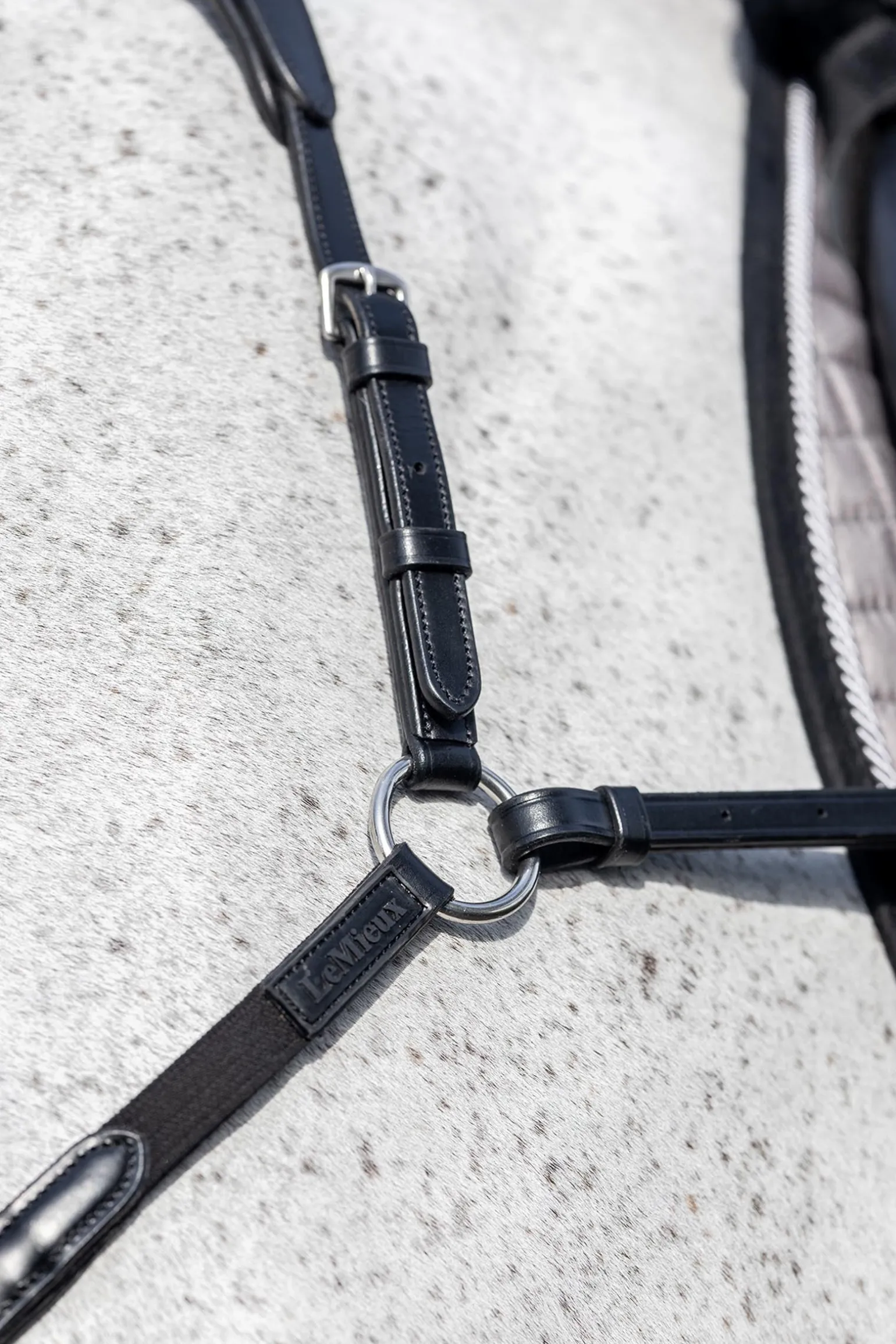 Das LeMieux Vorderzeug mit Martingalbefestigung ist die ideale Lösung für deine Sattelkammer mit einem schicken Aussehen und praktischer Funktionalität. Ein verstellbares Element sitzt mit einem weichen Lederpolster am Widerrist und wird an den elastischen Halsschlaufen befestigt. Die Polsterung hinter dem Verbindungsstück auf der Brust trägt zum Komfort für das Pferd bei und verfügt über eine abnehmbare Martingalgabel mit praktischen Clips, langlebigen Metallbefestigungen und einfach zu bedienenden Schnallenverschlüssen. Die speziell entworfenen Martingalringe lassen sich ganz einfach an den Zügeln befestigen und wieder abnehmen, ohne dass du diese öffnen musst. Das Leder von LeMieux ist aus wunderschönem, weichem europäischem Leder gefertigt und wurde so konzipiert, dass es den Druck besser verteilt und den Komfort maximiert.