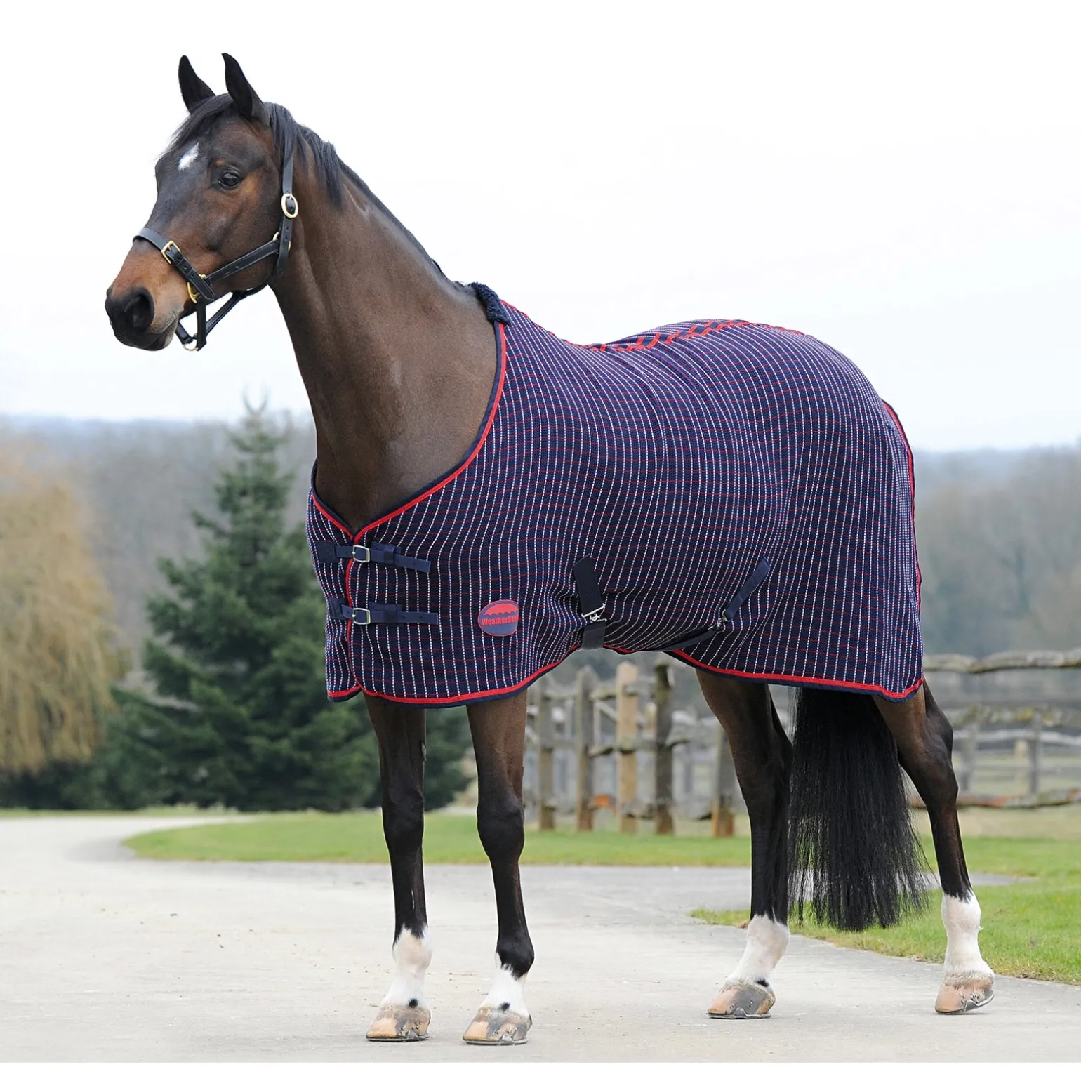 Vielseitige WeatherBeeta Waffel Abschwitzdecke Standard Neck, ideal für den Transport, als Abschwitzdecke und als Unterdecke. Waffel Gewebe sorgt für extreme Atmungsaktivität und transportiert Feuchtigkeit ab, um das Pferd stets komfortabel und trocken zu halten. Doppelt gelegter Brustbereich um Dehnung und Reibung zu verhindern und mit niedriger Kreuzbegurtung, verstellbarer, doppelter Frontverschluss und Schweifkordel. Standard Hals.