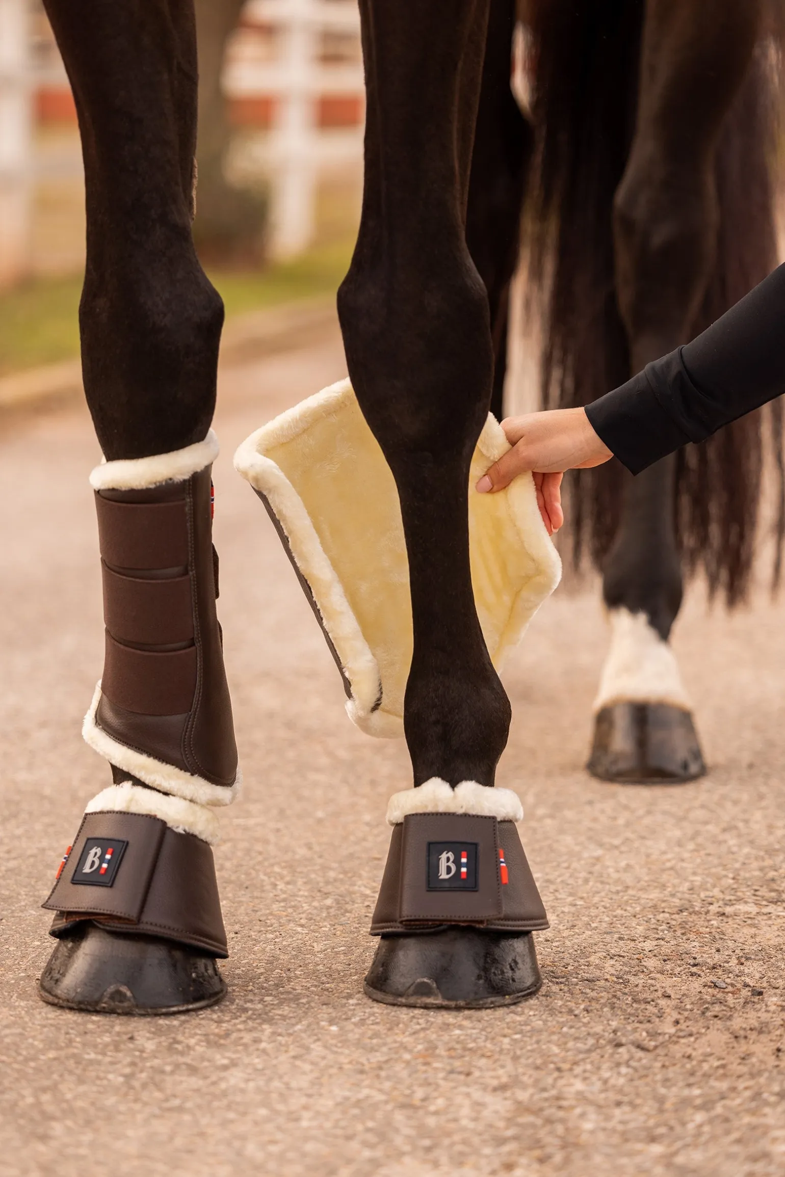 Unsere B Vertigo Wellington Gamaschen sind aus strapazierfähigem Kunstleder gefertigt und mit weichem Kunstfell gefüttert. Klettverschlüsse und Gummizüge sorgen für einen sicheren Sitz am Pferdebein. Der klassische Look lässt sich leicht in deine bisherige Ausrüstung integrieren. Kombiniere diese Gamaschen mit dem Rest unseres B Vertigo Wellington-Sortiments, um ein komplettes Outfit zu erhalten!