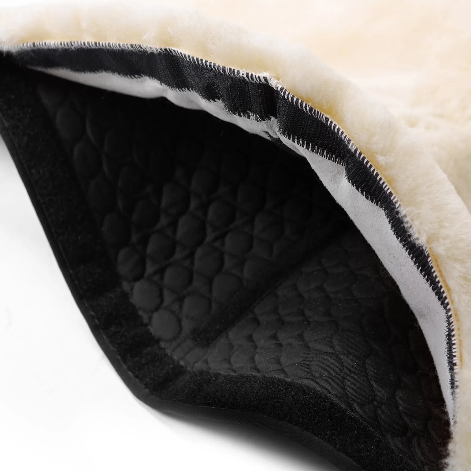 Auf der Unterseite komplett mit Lammfell gearbeitet. Die Oberseite besteht aus Christs Spezial Satteldeckenstoff. Eingearbeitete Taschen ermöglichen das Einschieben von Spezial Verbundschaumeinlagen, die wir ebenfalls anbieten. Dies ermöglicht ein individuelles Aufpolstern je nach Sattellage. Der Nylonschutz verhindert ein Aufscheuern im Bereich der Sattelgurtung.