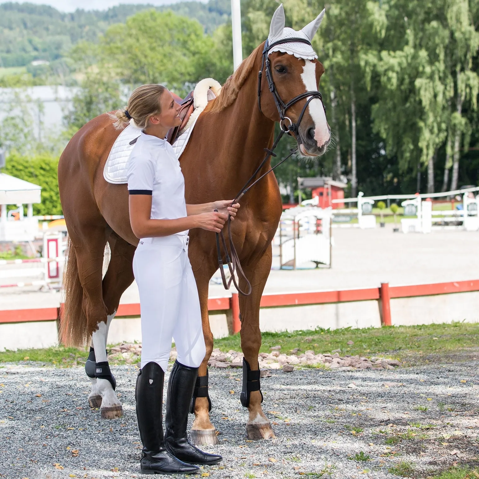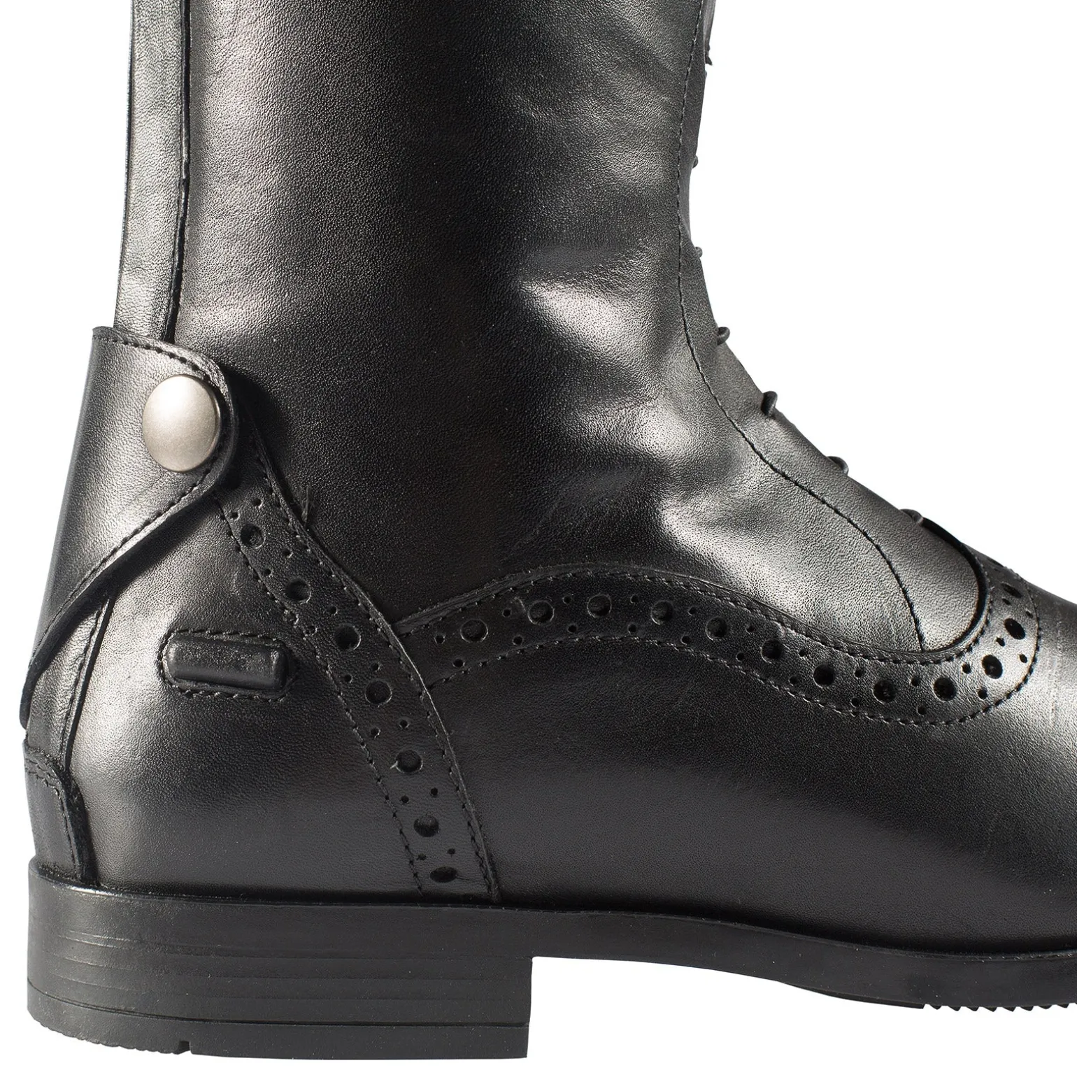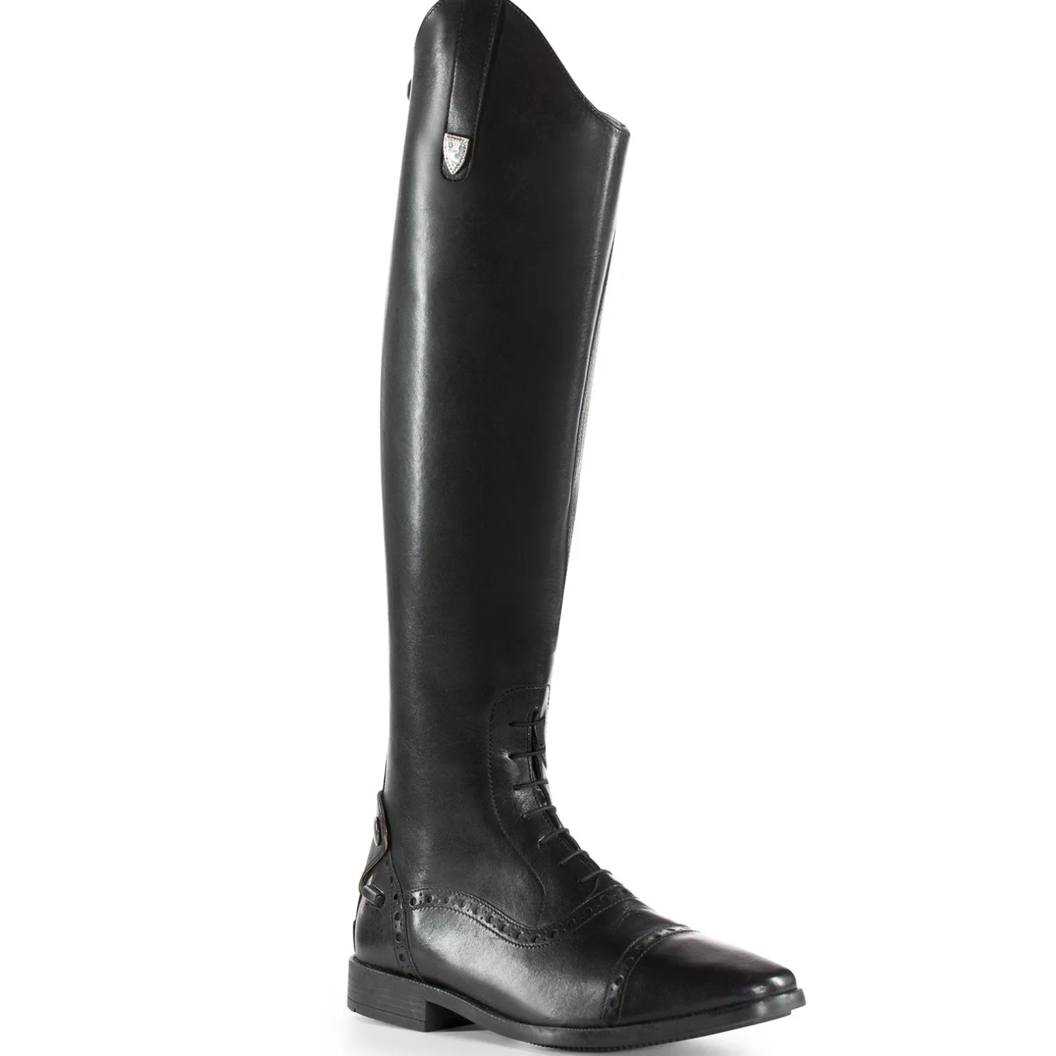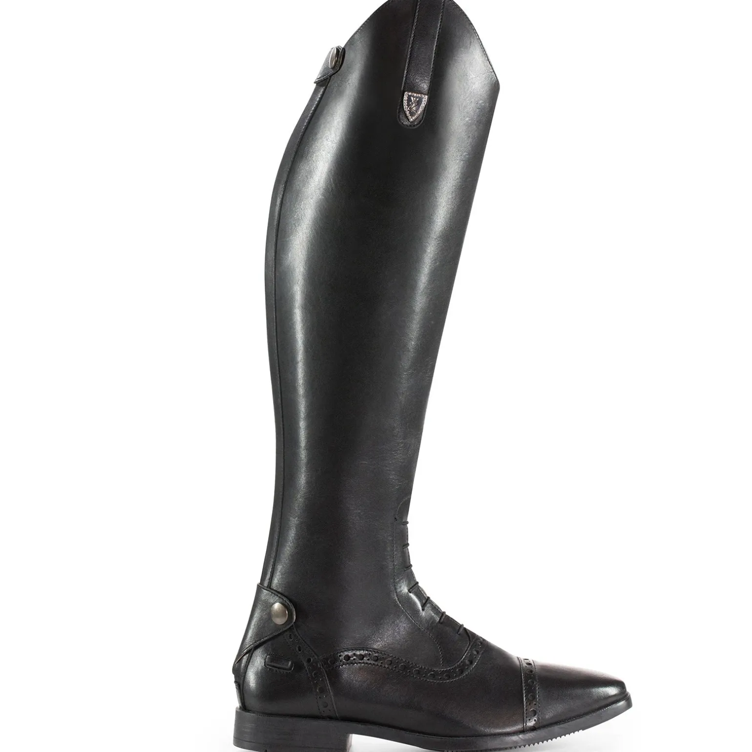 Hohe Stiefel sind ein Muss für das Turnier, wenn Halb-Chaps und Stiefeletten nicht angebracht sind. Diese wunderschönen Stiefel aus brasilianischem Leder haben hinten einen Reißverschluss und einen Elastikeinsatz. Eine Gummisohle und verschiedene Größen und Weiten bieten Komfort. Der Fuß hat gestanzte Details, elastische Schnürsenkel und eine schöne Sporenhalterung. Das Futter ist Wildleder für mehr Komfort. Z Emblem oben am Schaft mit einem kleinen Metallknopf und Kristallen. Ein Lederriemen mit Druckknopf am oberen Ende des Reißverschlusses, um diesen sicher zu verschließen.