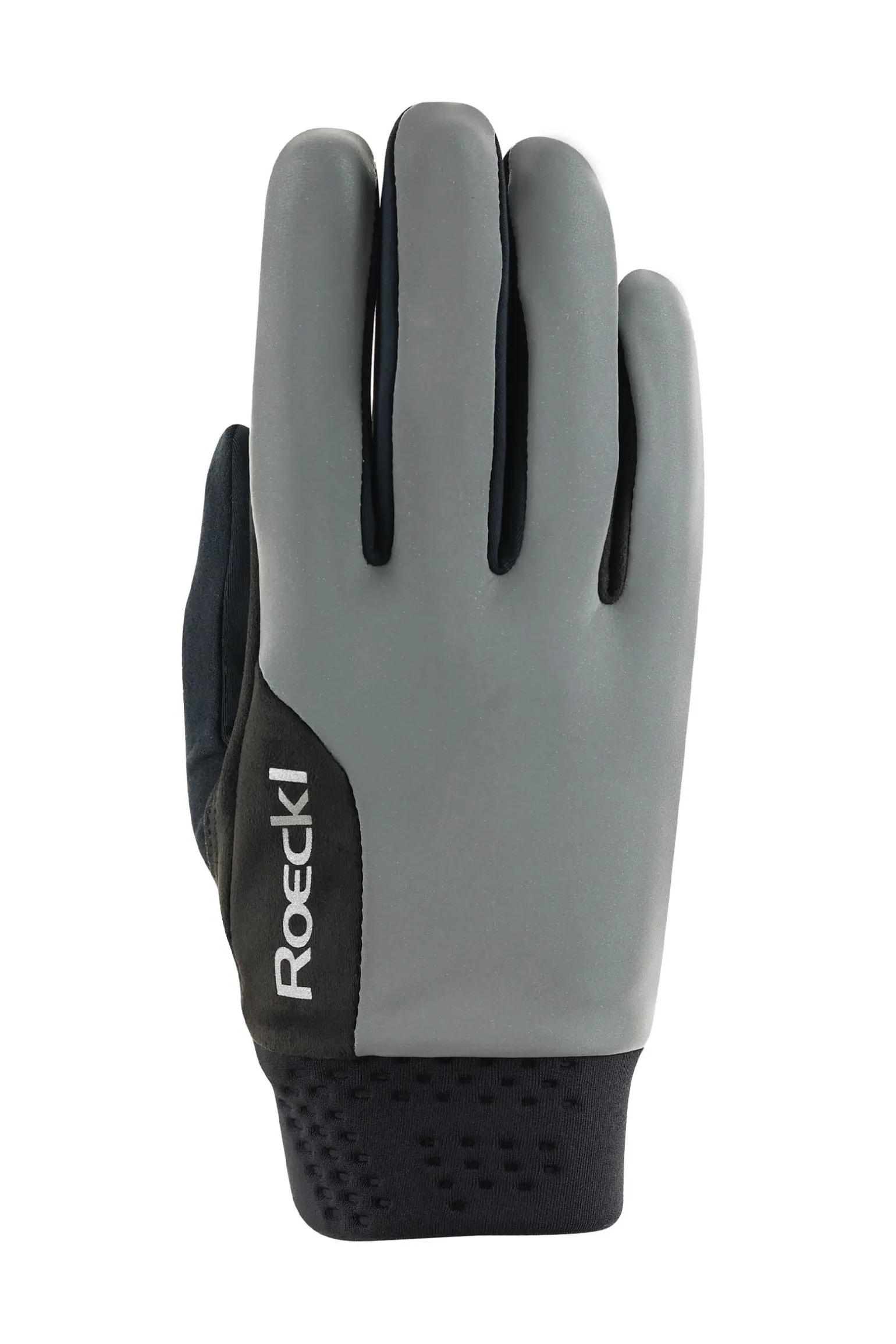 Snug fit, high elasticity, convenient closure – meet the MEURA WINTER. The backhand of this warm winter glove consists of elastic two-way spandex textile offering superior flexibility and freedom of movement for your hands and fingers on horseback or when working in the stable. A secure and reliable grip on the reins for precise and sensitive communication with the horse is ensured by the palm made from ECO.SENSE®, which provides a great grip throughout. This soft, tactile yet highly durable synthetic suede material looks and feels like real suede but is actually made from 60% recycled polyester, 32% conventional polyester, and 8% spandex. A convenient wide hook and loop fastener on the backhand and an elastic band ensure a perfectly snug fit on the wrist. Speaking of the fit: The special COMFORT-CUT seam lines on the index fingers perfect the high level of wear comfort of the MEURA WINTER without the need for additional facings. The glove comes in classic black accentuated by the Roeckl Sports logo in white.