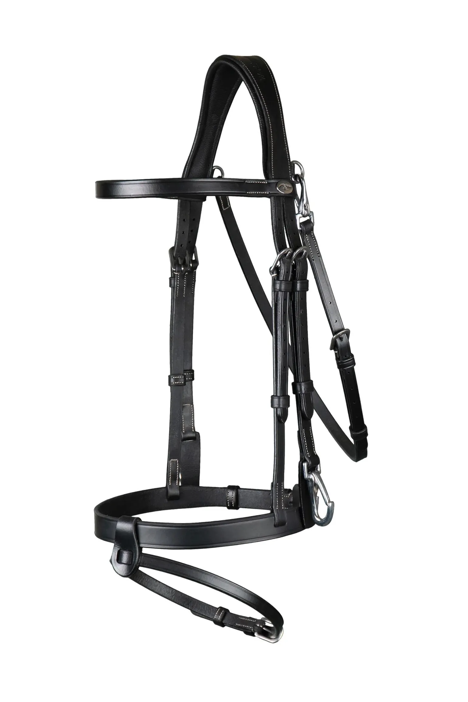 Für Reiter*innen, die Effizienz und Vielseitigkeit verlangen: Diese flache Ledertrense aus robustem Büffelleder bietet ein strapazierfähiges, geschmeidiges Tragegefühl und ist ideal für die tägliche Arbeit. Das flache Leder liegt glatt am Pferdekopf an und vermeidet unnötigen Druck. Dank der Karabinerhaken an Backenstücken und Kehlriemen kannst du das Gebiss schnell wechseln oder die Trense abnehmen – perfekt, wenn du mit mehreren Pferden arbeitest oder im Laufe des Tages die Disziplin wechselst.