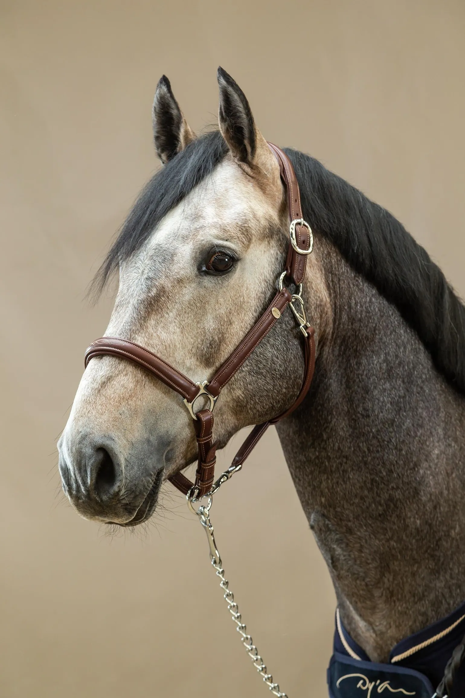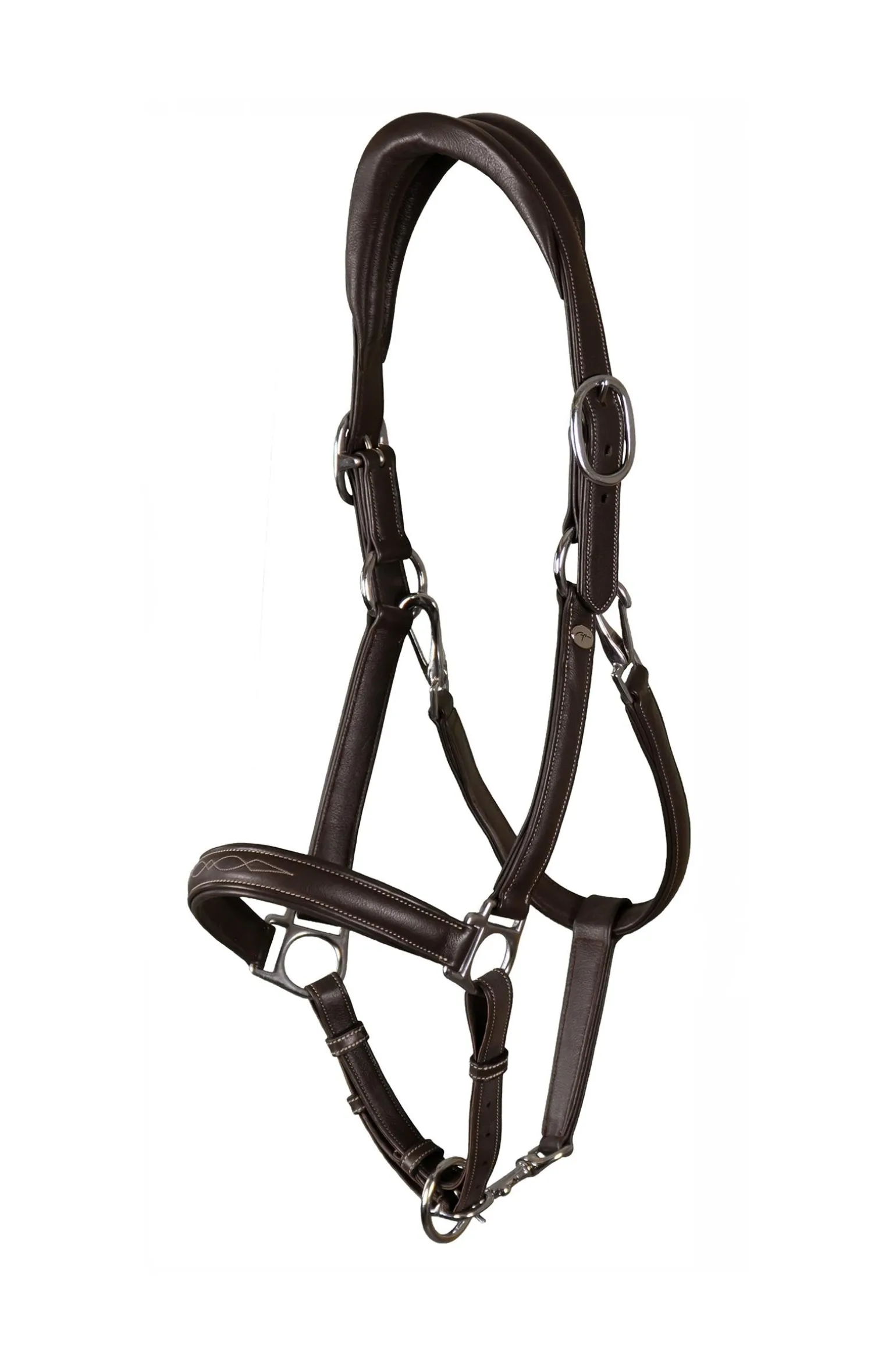 Dieses Halfter besteht aus besonders weichem Leder und ist vollständig mit Nylon unterlegt. Durch mehrere Verstellmöglichkeiten lässt es sich ganz einfach in ein normales Halfter für die Pferdepflege umwandeln.