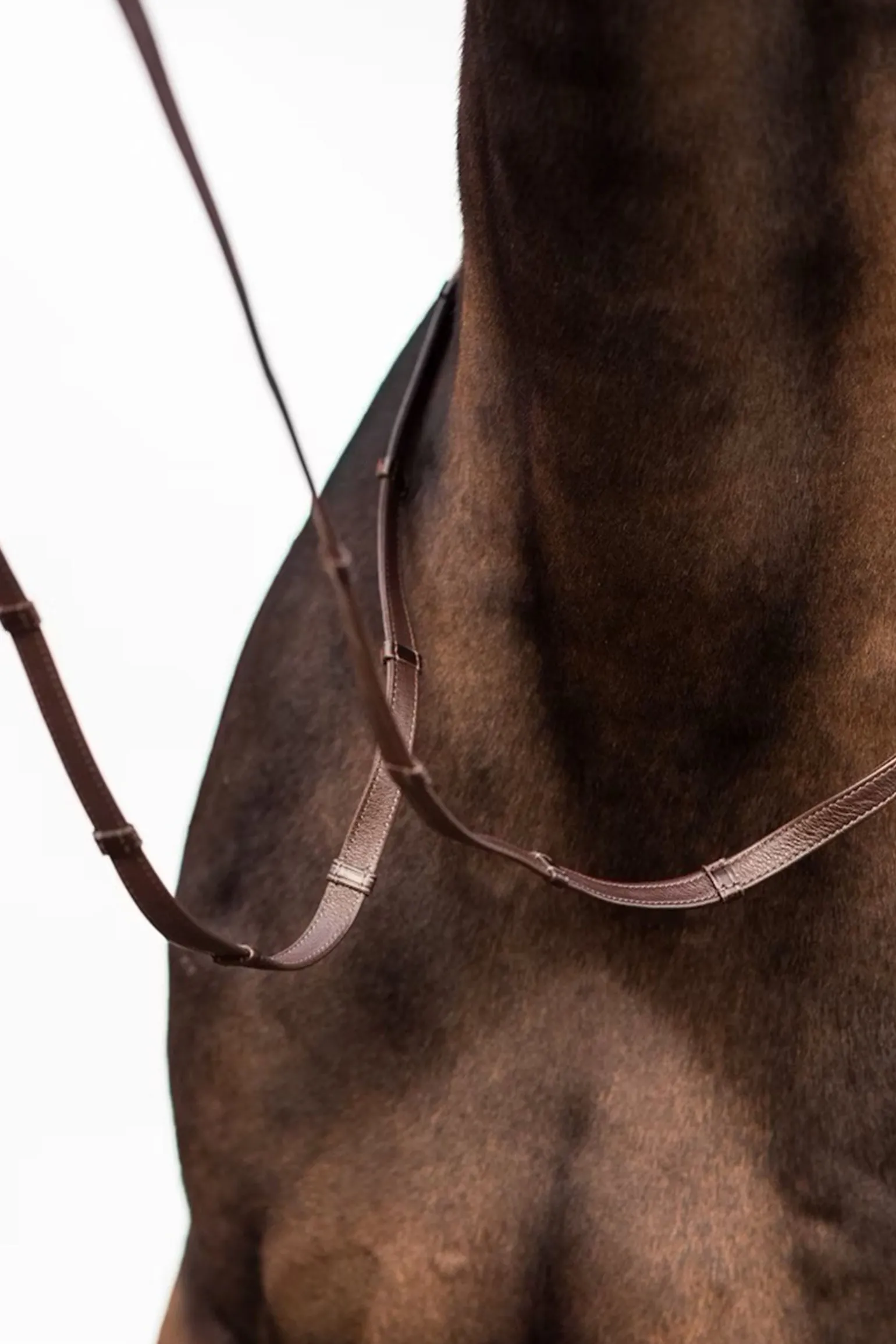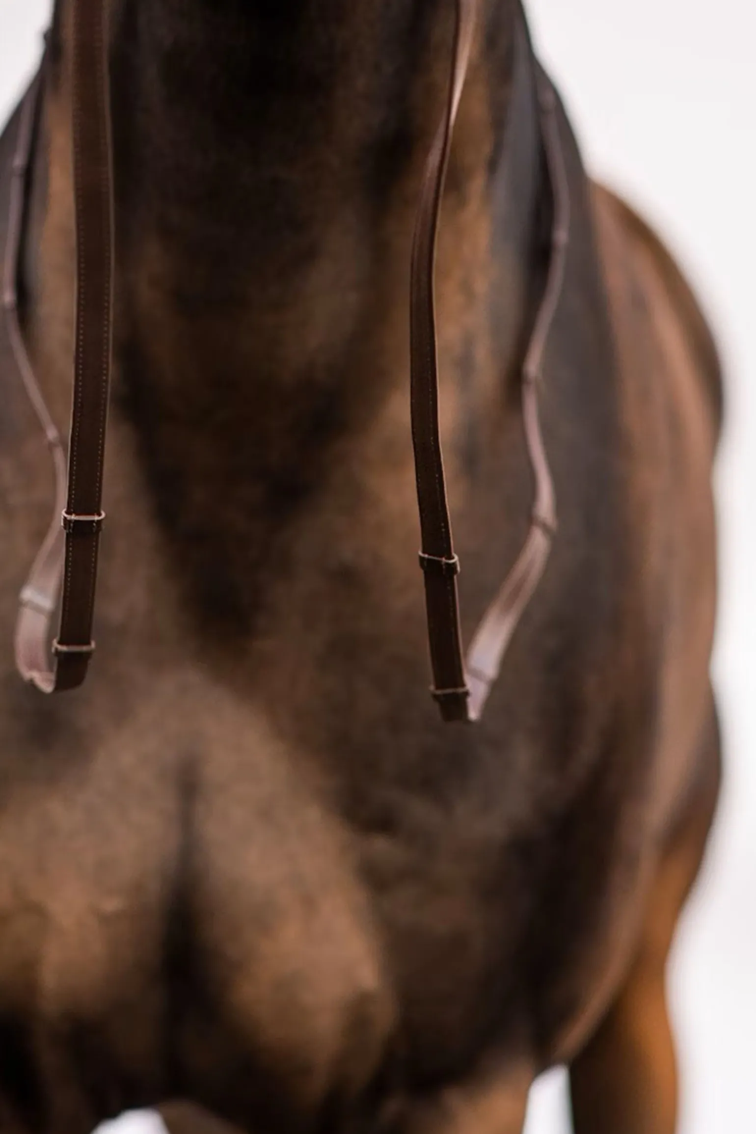 Sehr weiche und bequeme Zügel aus hochwertigem englischen pflanzlich gegerbten Leder. Die Zügel verfügen über PS’ patentiertes elastisches Cradle™ (aus Polyester), das dem Pferd einen weicheren Kontakt zwischen Maul und Hand bietet. Die Zügel haben Griffmarkierungen, die einen sicheren und bequemen Halt gewährleisten. Wenn das Pferd die Zügel ohne Cradles™ bevorzugt, können diese durch einfaches Abnehmen leicht entfernt werden. Silberfarbene Schnallen.