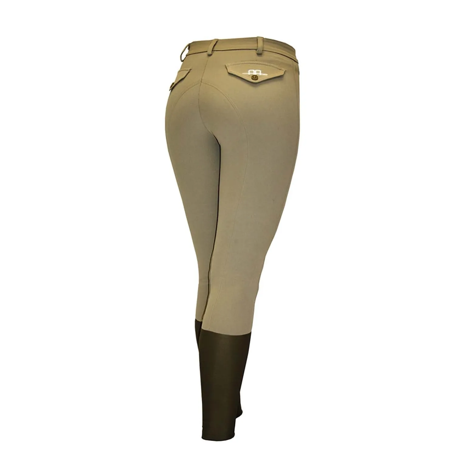 Damen-Turnierreithose aus leistungsstarkem Schoeller-Gewebe für festen und bequemen Halt. Verstärkungseinsätze an den Knien und formkontrollierte Gesäßnaht.
