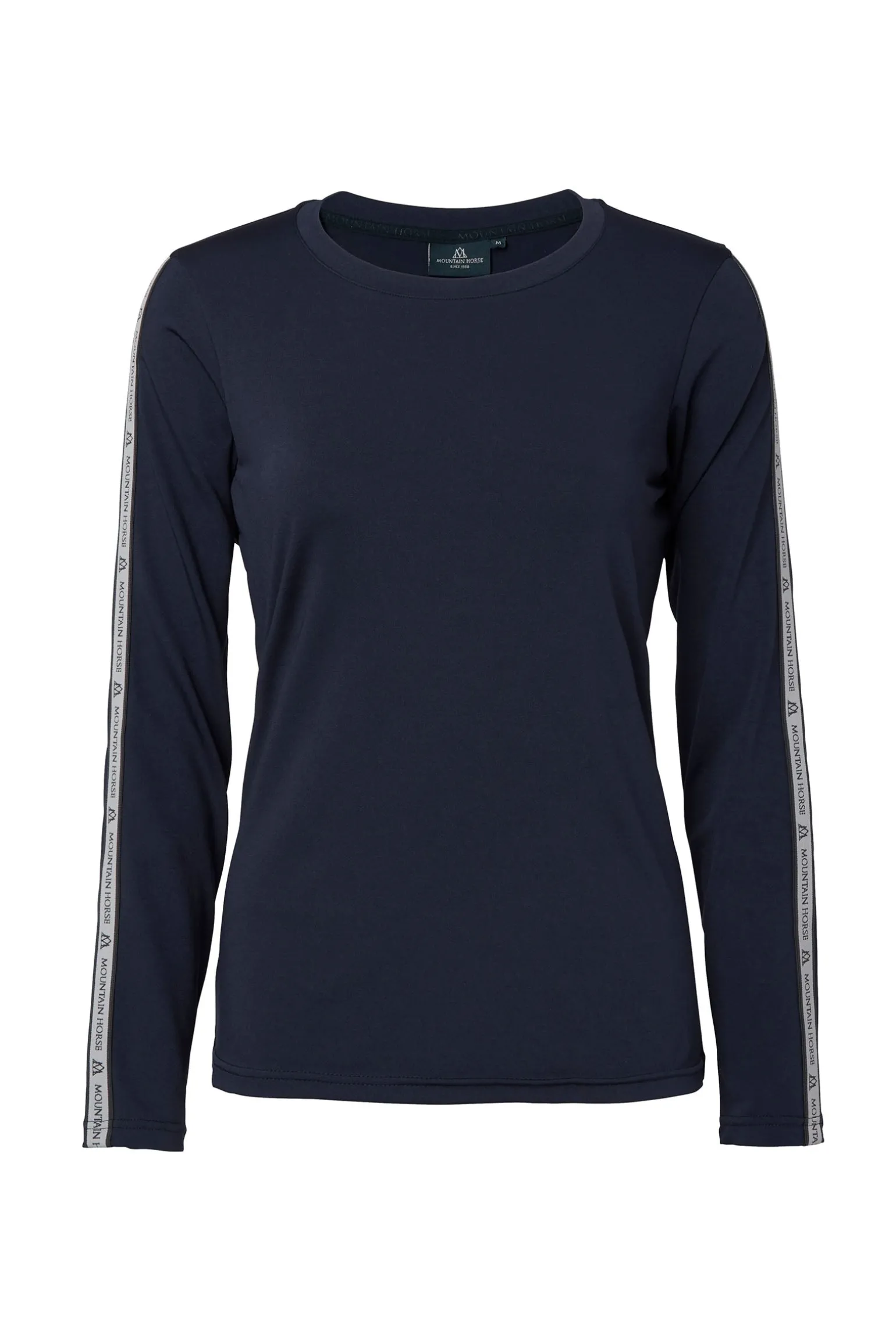 Funktionelles technisches Oberteil aus kühlendem Material mit Logoband entlang der Ärmel.