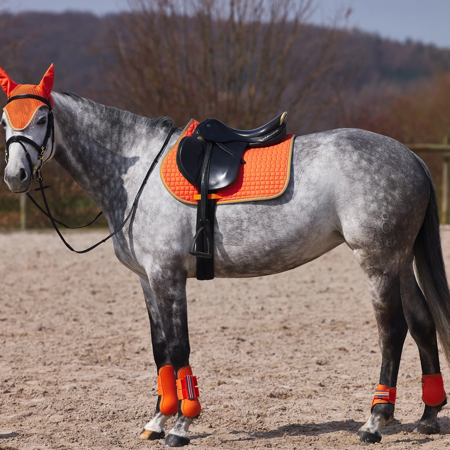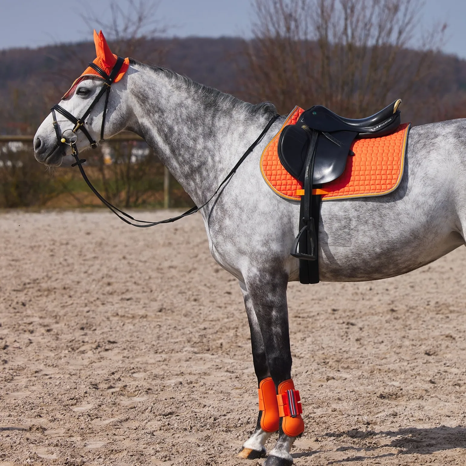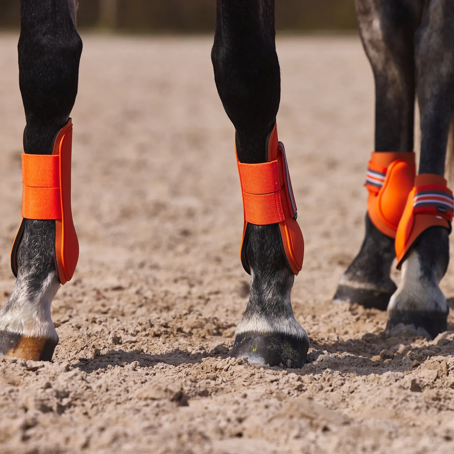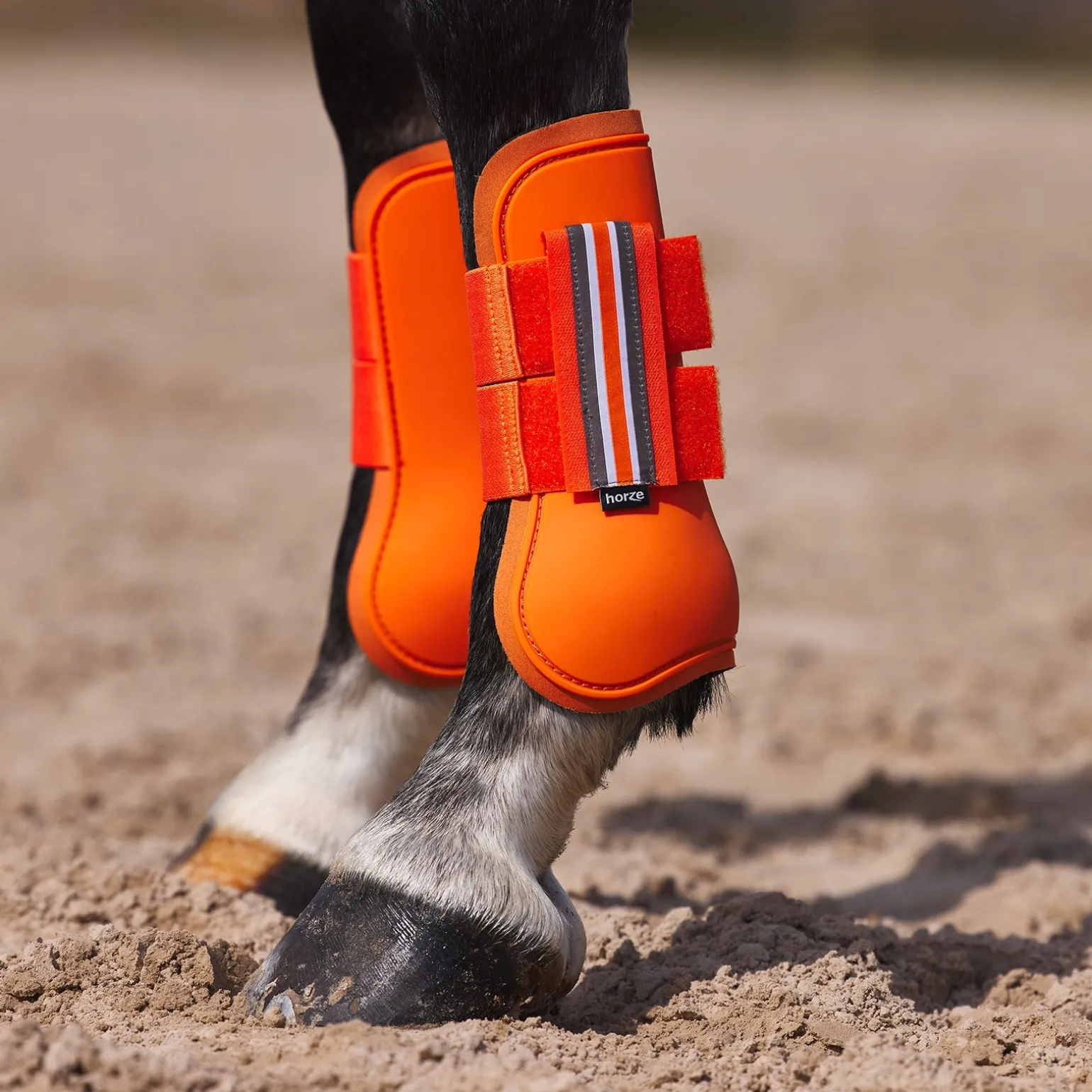 Die Horze Adepto Gamaschen in strahlenden Farben sind einfach zu benutzen. Stabile Klettverschlüsse halten sie sicher an ihrem Platz. Eine robuste Außenschicht schützt die Pferdebeine und das weiche Neoprenfutter dämpft Stöße effektiv. Kombiniere sie mit den passenden Adepto Streichkappen (#19213) und der Schabracke (#17343 oder #17353) für einen kompletten Look.