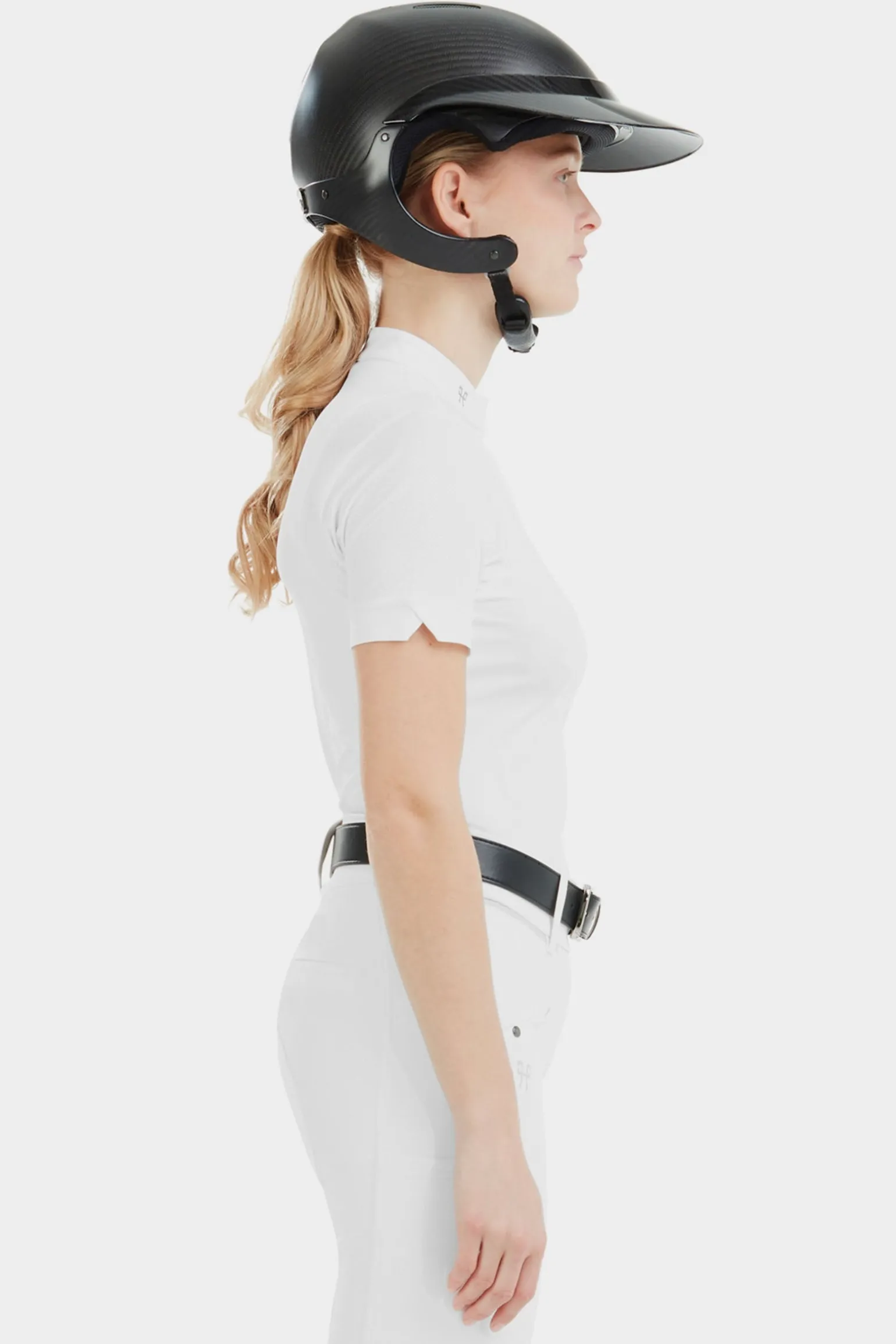 Das Zwei-Materialien-Design des Aerolight Shirts bietet Atmungsaktivität und Bewegungsfreiheit. Ausgestattet mit Horse Pilots Aerotech-Technologie ist ein Mesh-Material strategisch im Rücken, an den Ärmeln und an den Armausschnitten platziert, um Wärme bei intensiver Anstrengung effektiv abzuleiten. Das zweite Material, das auf der Brust und dem oberen Rücken positioniert ist, ist nicht nur hoch atmungsaktiv, sondern schützt dank der UV-Block-Technologie auch vor UV-Strahlen. Mit Bi-Stretch und ergonomischer Schulterpasse wurde das Aerolight-Hemd entworfen, um beim Reiten optimale Bewegungsfreiheit zu bieten. Die Form des Handgelenks wurde entwickelt, um Bewegungen beim Reiten zu erleichtern. Der Kragen entspricht Turnieranforderungen und lässt sich mit einem Magnetknopf für einen minimalistischen Look öffnen. Und weil ökologische Verantwortung eine zentrale Rolle in unseren Werten spielt, ist das Material nach OEKO-TEX® Standard 100 zertifiziert.