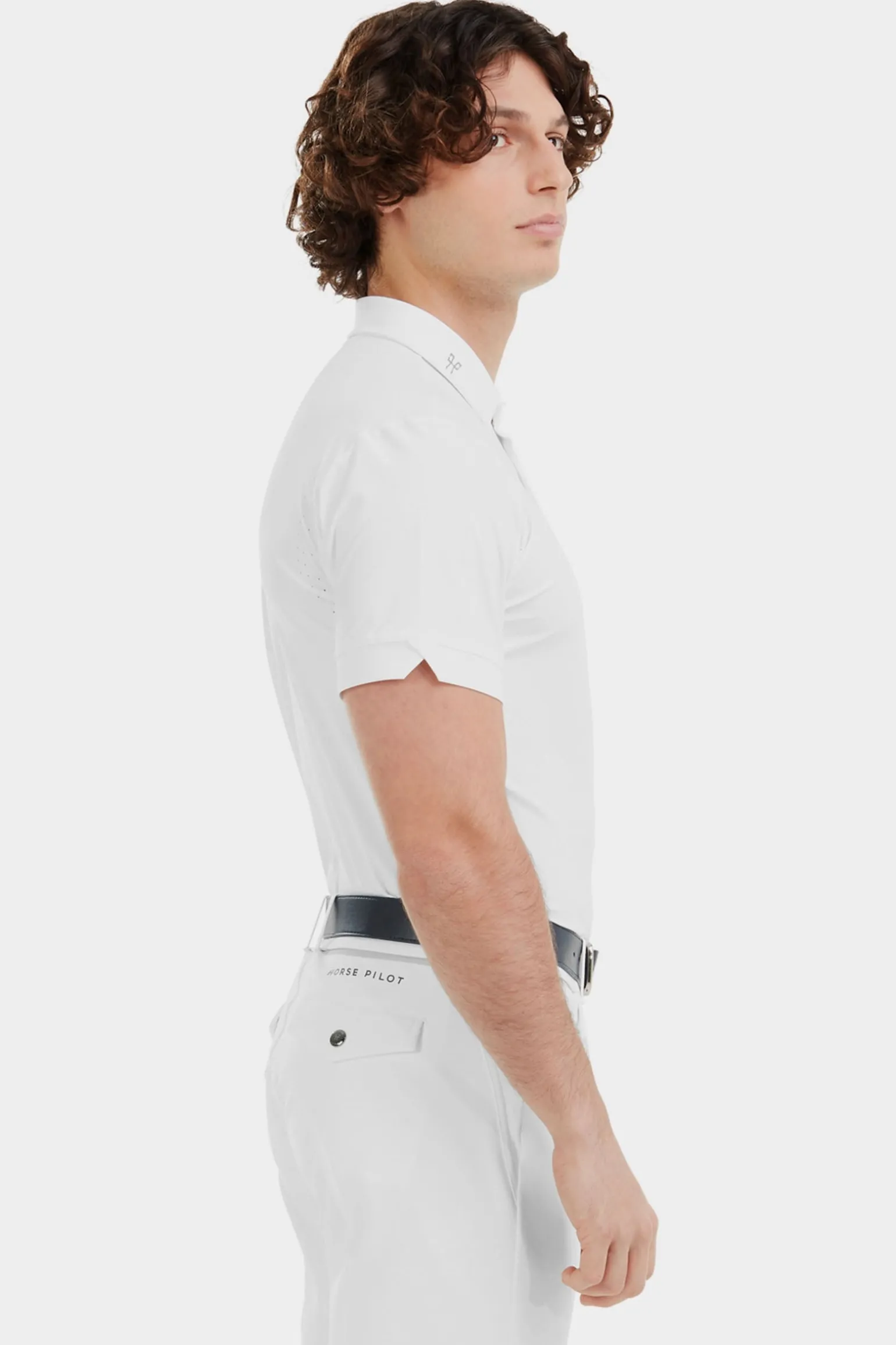 Das Aerolight-Shirt-Design bietet Atmungsaktivität und UV-Schutz für Wettbewerbe bei heißem Wetter. Ausgestattet mit Horse Pilots Aerotech-Technologie sind Bereiche mit Laserperforationen im Rücken und an den Armlöchern angebracht, um die atmungsaktiven Eigenschaften des Hemdes zu verstärken, damit Wärme effektiv abgeleitet wird. Das Material ist nicht nur hoch atmungsaktiv, sondern schützt dank der UV-Block-Technologie auch vor UV-Strahlen. Mit Bi-Stretch und ergonomischer Schulterpasse wurde das Aerolight-Hemd entworfen, um beim Reiten optimale Bewegungsfreiheit zu bieten. Der Kragen und die Schlaufe für die Krawatte entsprechen Turniervorschriften. Und weil ökologische Verantwortung eine zentrale Rolle in Horse Pilots Werten spielt, ist das Material nach OEKO-TEX® Standard 100 zertifiziert.
