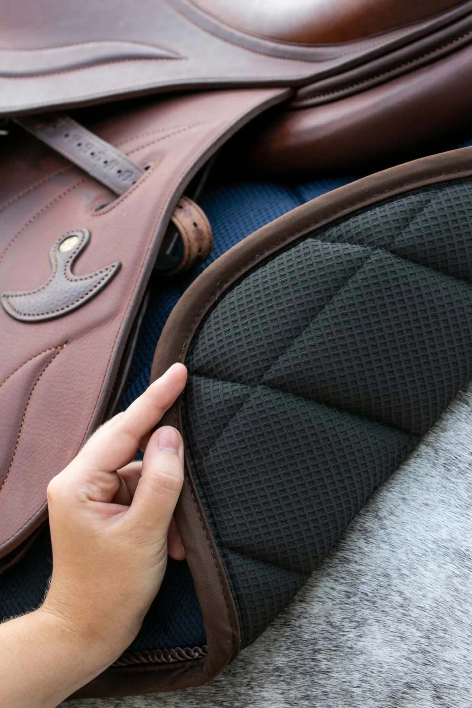 Back on Track’s luftigste Schabracke aller Zeiten! Das 3D-Mesh-Gewebe ist hoch atmungsaktiv und lässt die Luft zirkulieren, während es die Feuchtigkeit vom Pferderücken wegtransportiert. Die Schabracke hat das bekannte Design der Back on Track No.2 Schabracke mit einer anatomischen Passform und einem hohen Schnitt, der zusätzlichen Platz über dem Widerrist und der Wirbelsäule bietet. Die vorderen Gurtbänder werden anstelle der Gurtsrupfen an den D-Ringen des Sattels befestigt, wodurch das Risiko von Druckstellen am Trapezmuskel verringert wird. Die Schabracke hat eine Füllung mit weicher Polsterung und eine Schicht aus stoß- und druckverteilendem, perforiertem Schaumstoff. Die Innenseite hat ein Welltex® durchzogenes Futter aus Power Waffle™ Textil. Die Technologie regt die Blutzirkulation an, indem sie die Körperwärme als Infrarotenergie reflektiert. Das kann die Beweglichkeit fördern und Verletzungen vorbeugen, indem es Muskelverspannungen löst und die Geschmeidigkeit des Rückens verbessert. Die äußere Schicht besteht aus ventilierendem 3D-Mesh, das für Belüftung und Feuchtigkeitsabtransport sorgt.